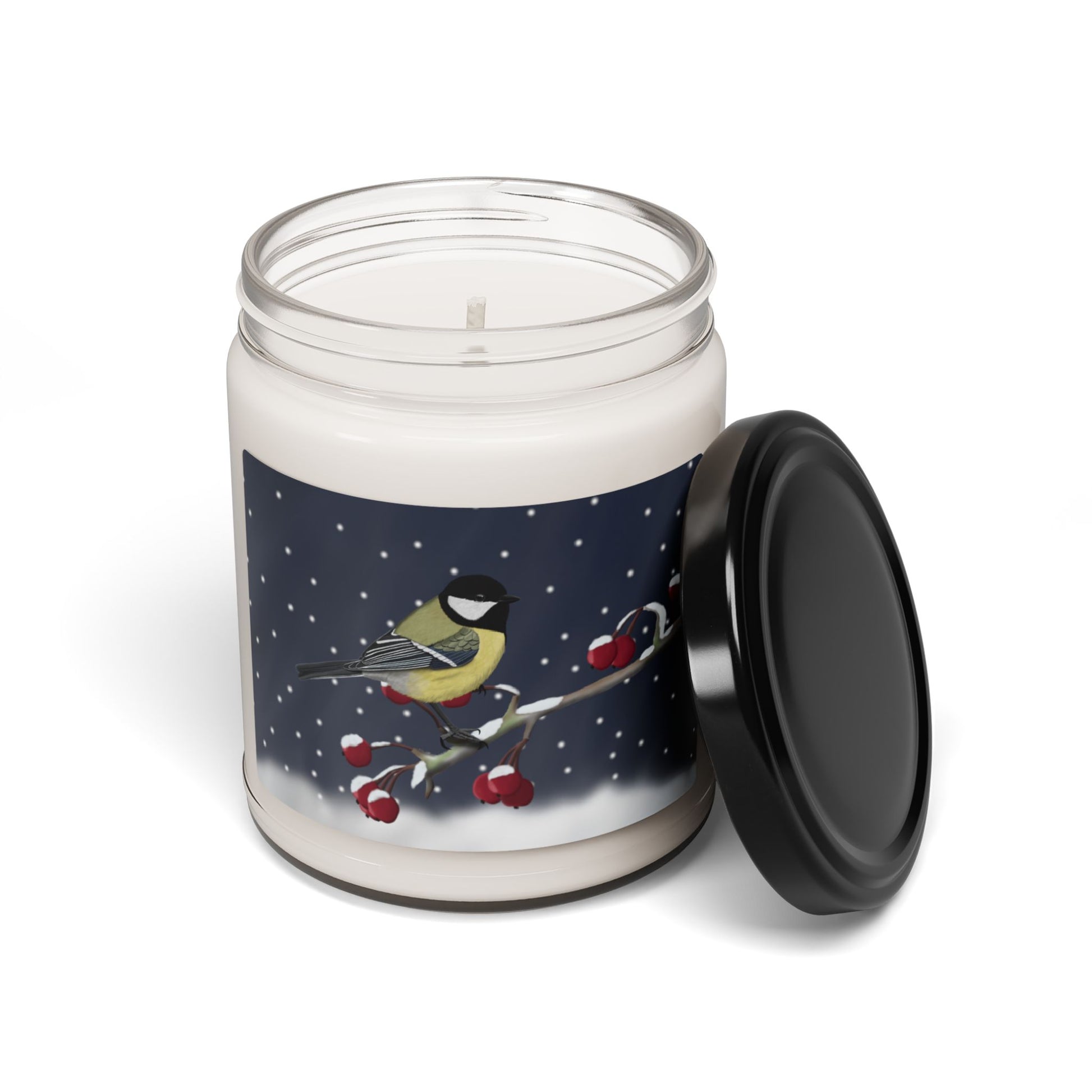 Light up your space with this unique Chickadee on a Winter Branch Christmas Bird Art Scented Soy Candle. Filled with a delightful scent, this candle will not only add a touch of art to your decor, but also a pleasant aroma. Perfect for a cozy night in or as a gift for any bird lover. Fly high with this one-of-a-kind candle!