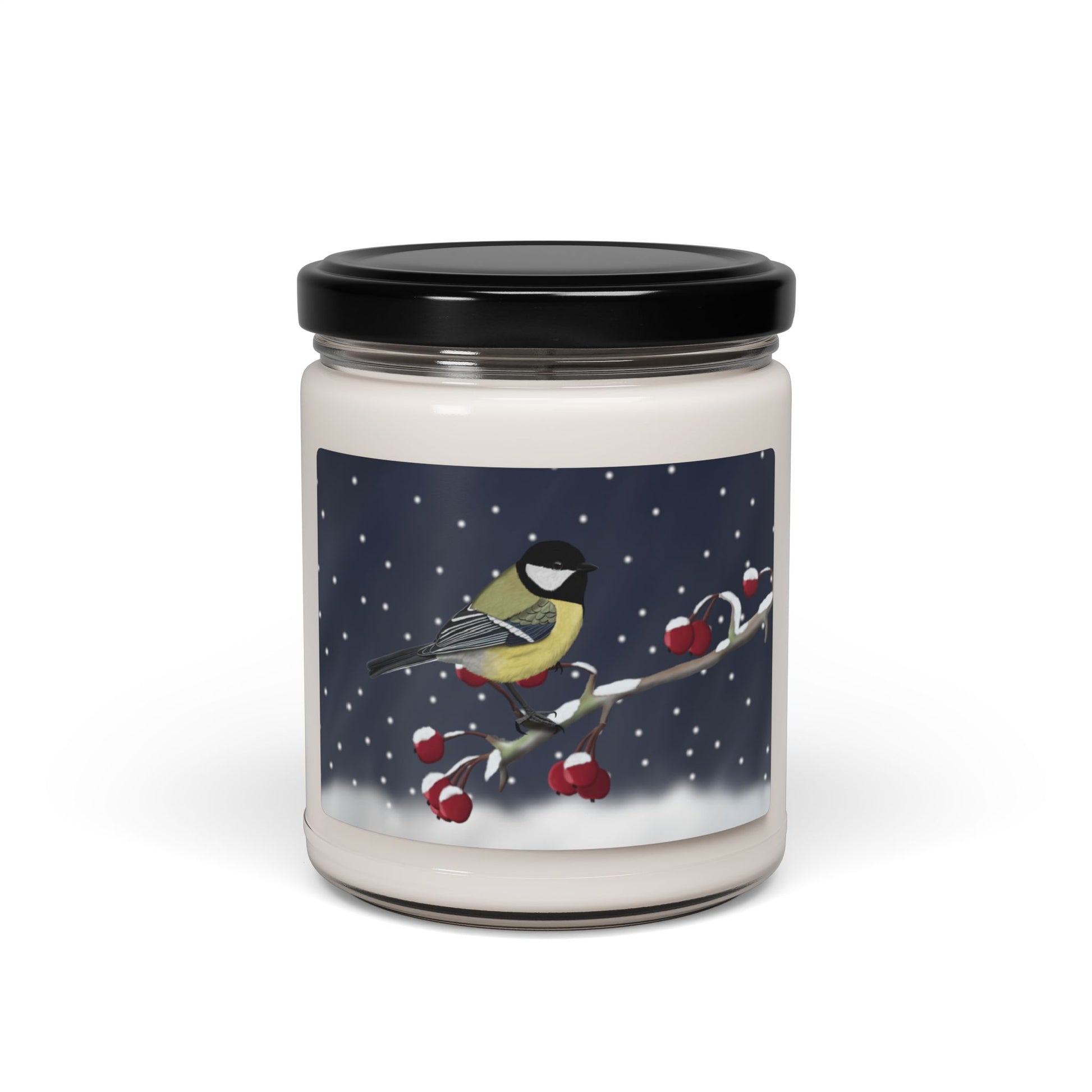 Chickadee on a Winter Branch Christmas Bird Art Scented Soy Candle, 9oz