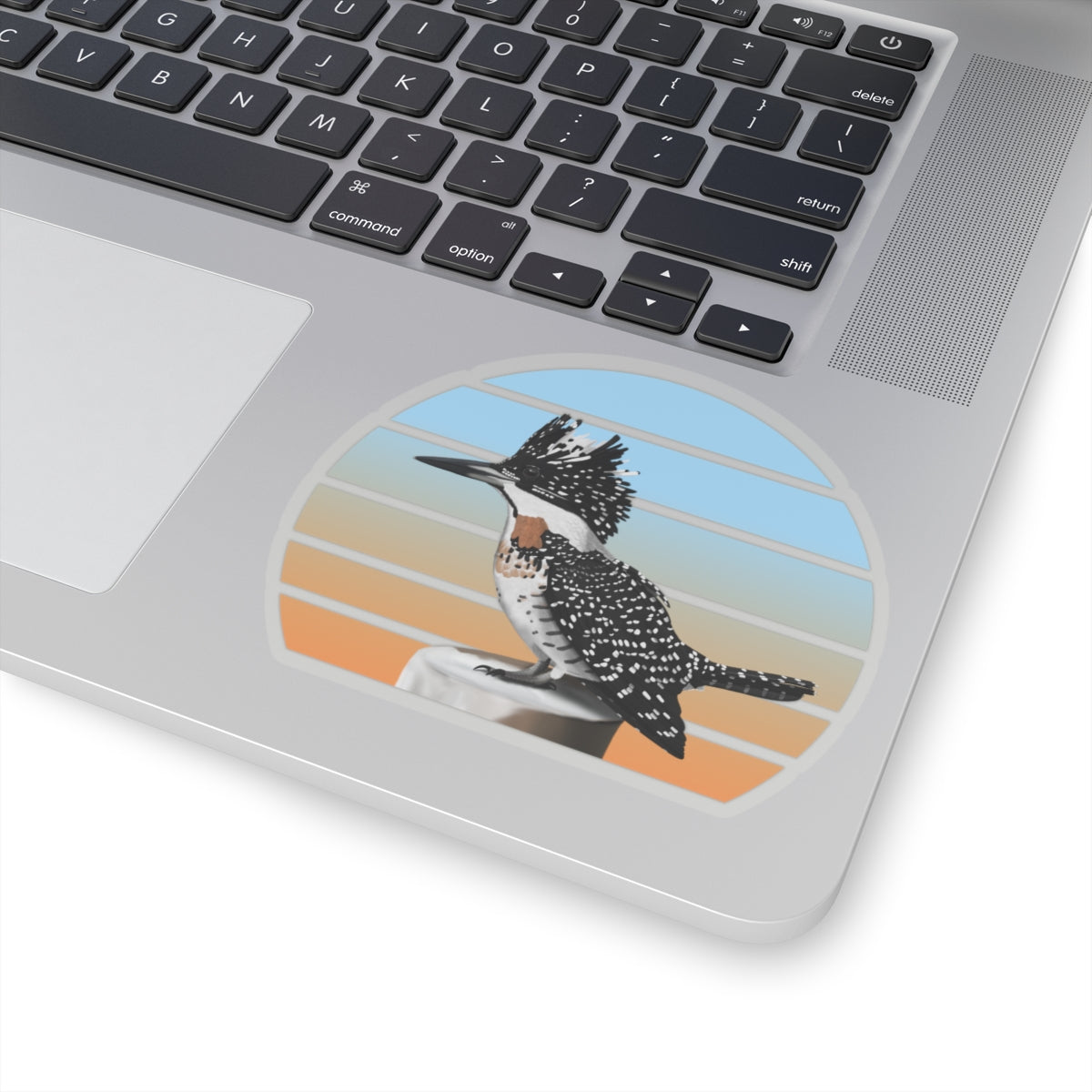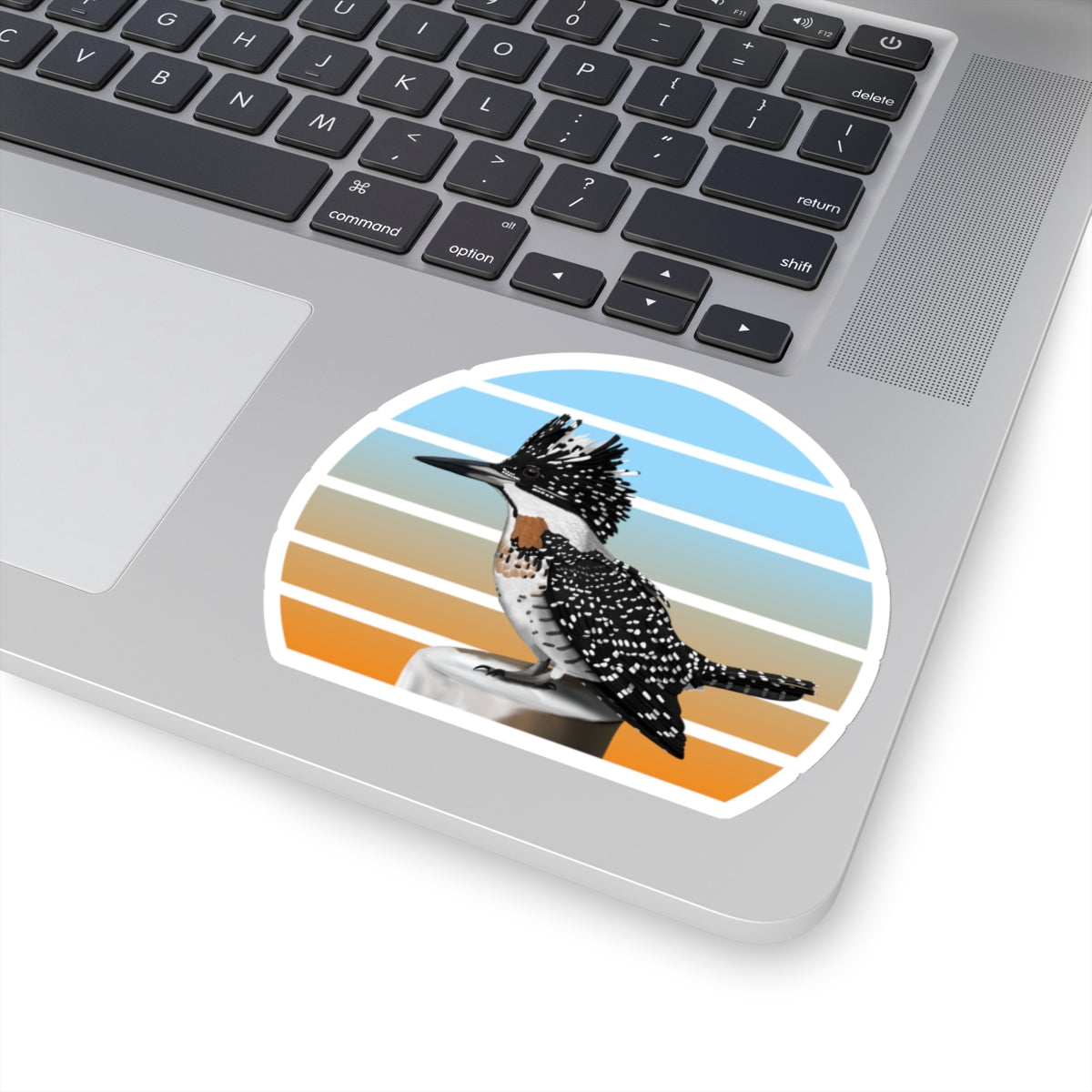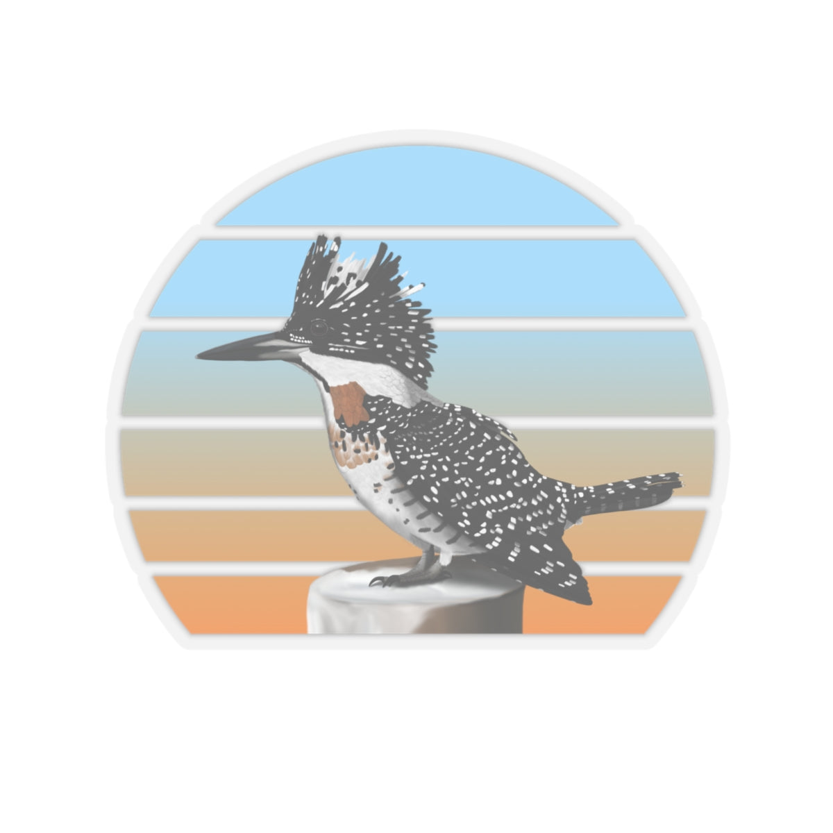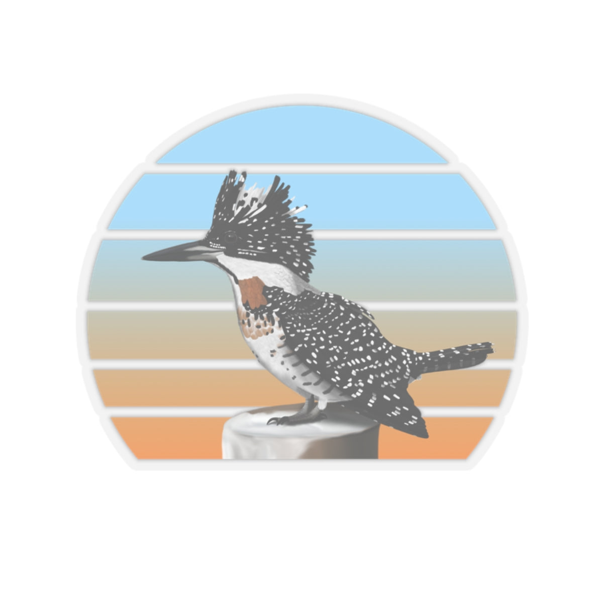 This kiss-cut sticker features a Crested Kingfisher bird design, perfect for any birder, ornithologist or biologist. Add some feathered bird fun to your life with this sticker! They're perfect for adding a little personality to your laptop, water bottle, or notebook. Get yours today and spread some bird love!