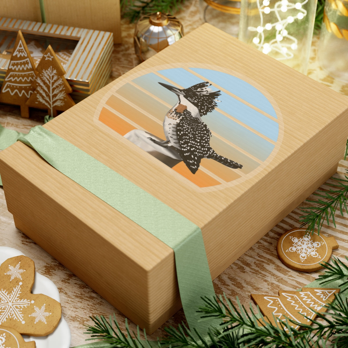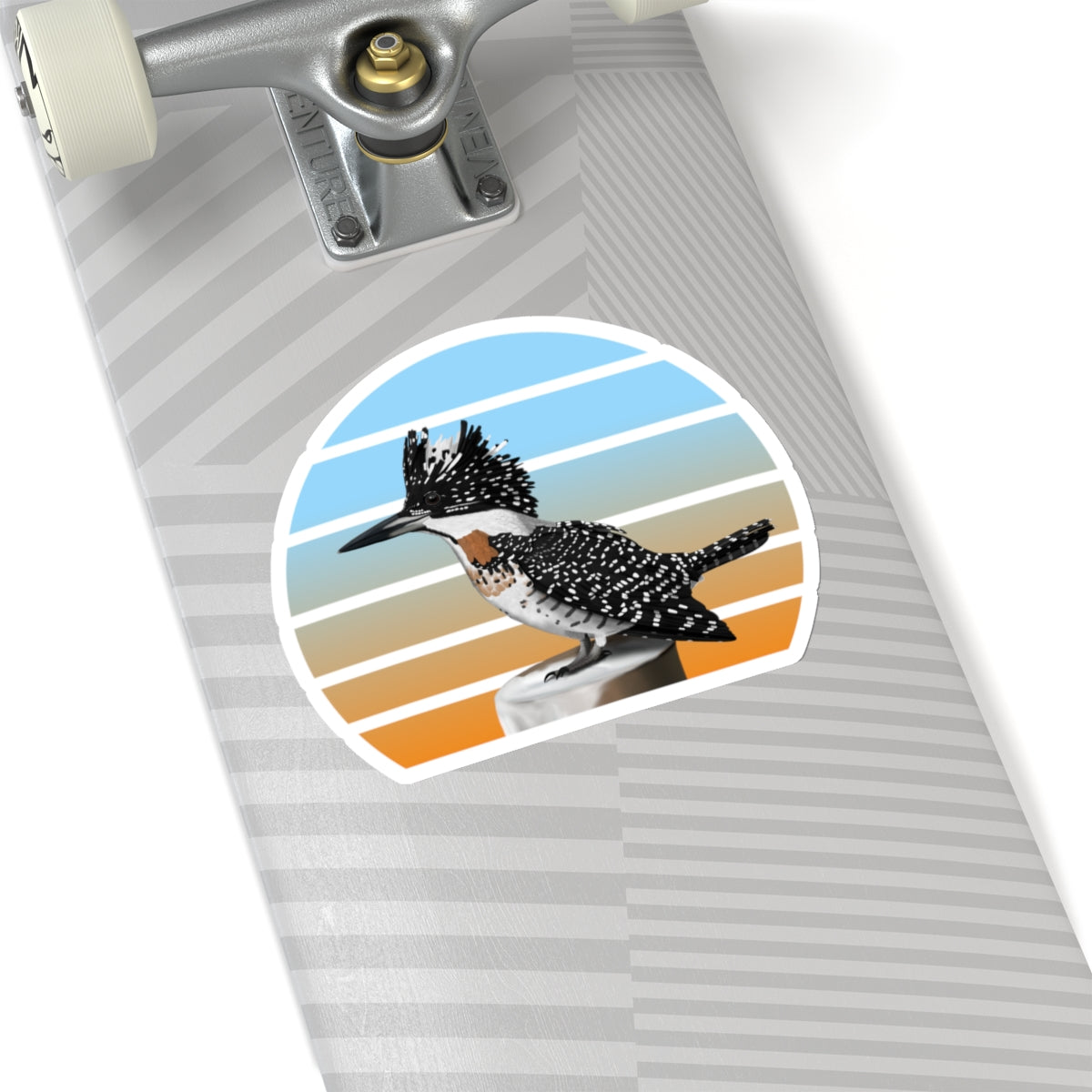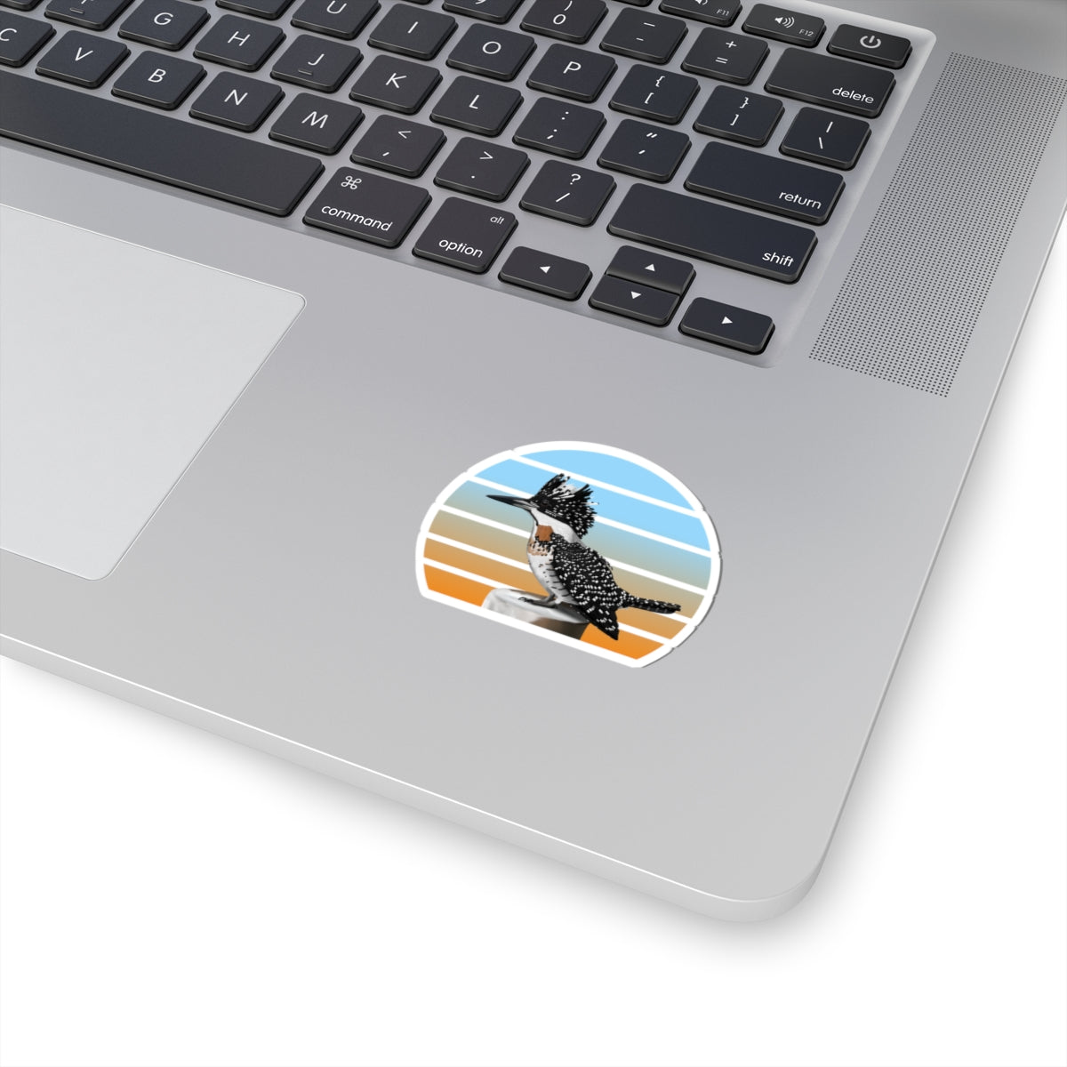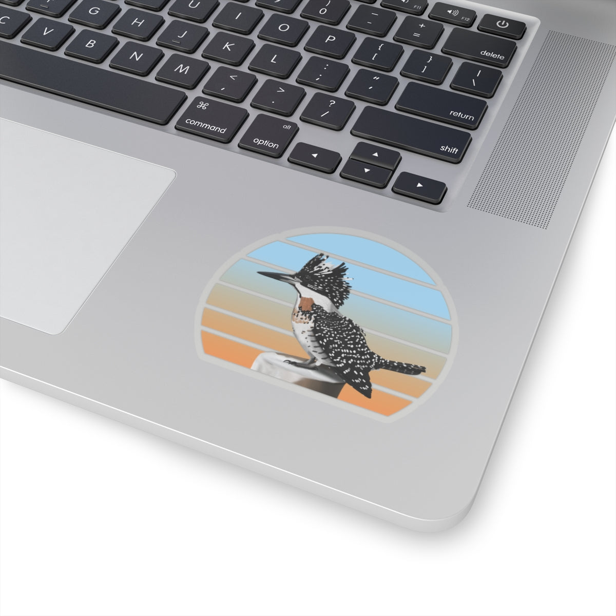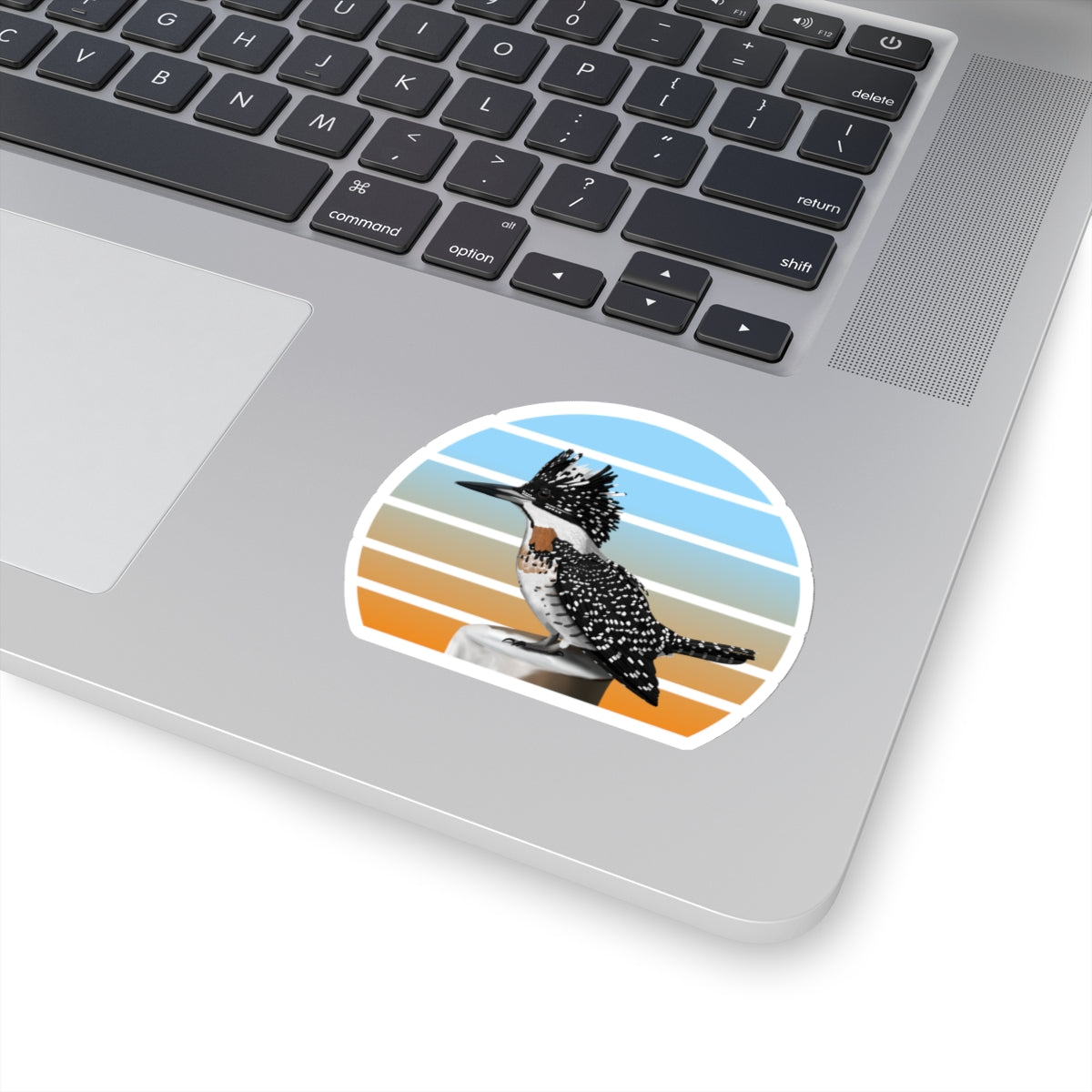 This kiss-cut sticker features a Crested Kingfisher bird design, perfect for any birder, ornithologist or biologist. Add some feathered bird fun to your life with this sticker! They're perfect for adding a little personality to your laptop, water bottle, or notebook. Get yours today and spread some bird love!