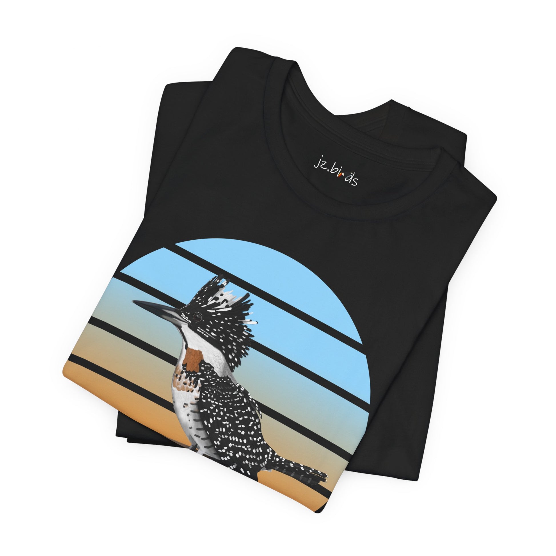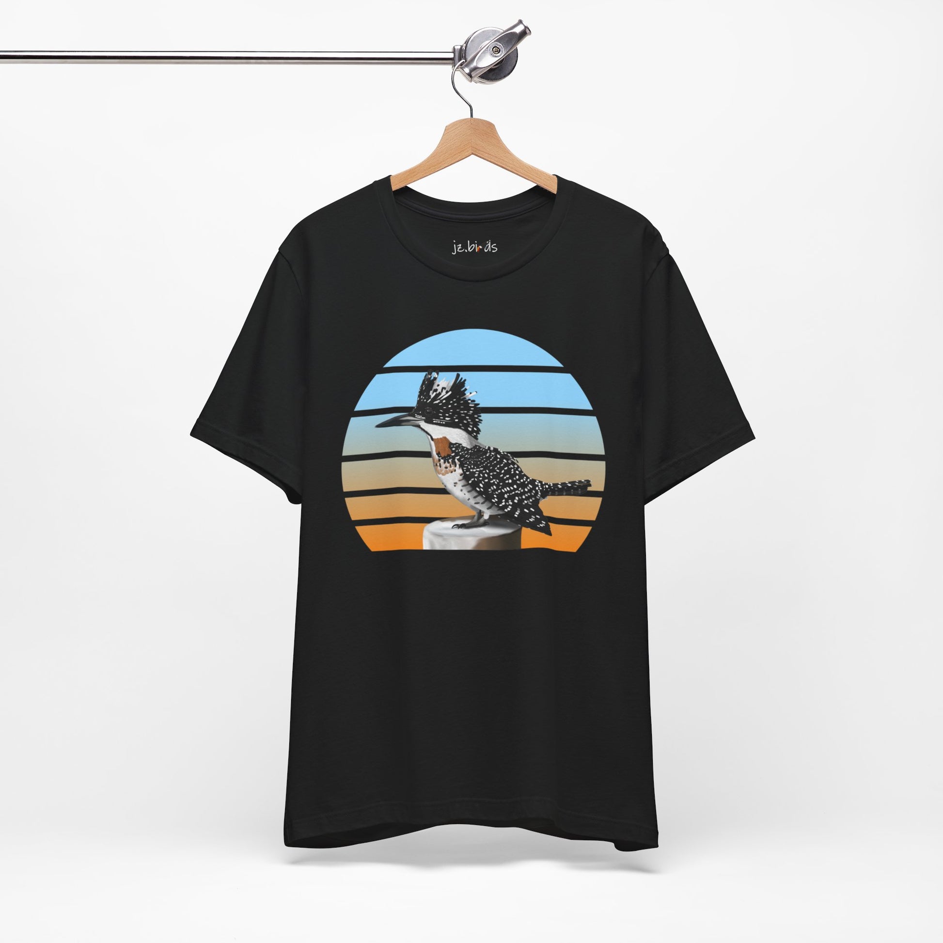 This Crested Kingfisher bird t-shirt is a must-have for bird lovers. Featuring beautiful bird artwork, it's the perfect addition to any nature enthusiast's wardrobe. Made of high-quality material, this shirt is both comfortable and stylish. Show your love for birds and stand out in any crowd with this unique and eye-catching t-shirt.