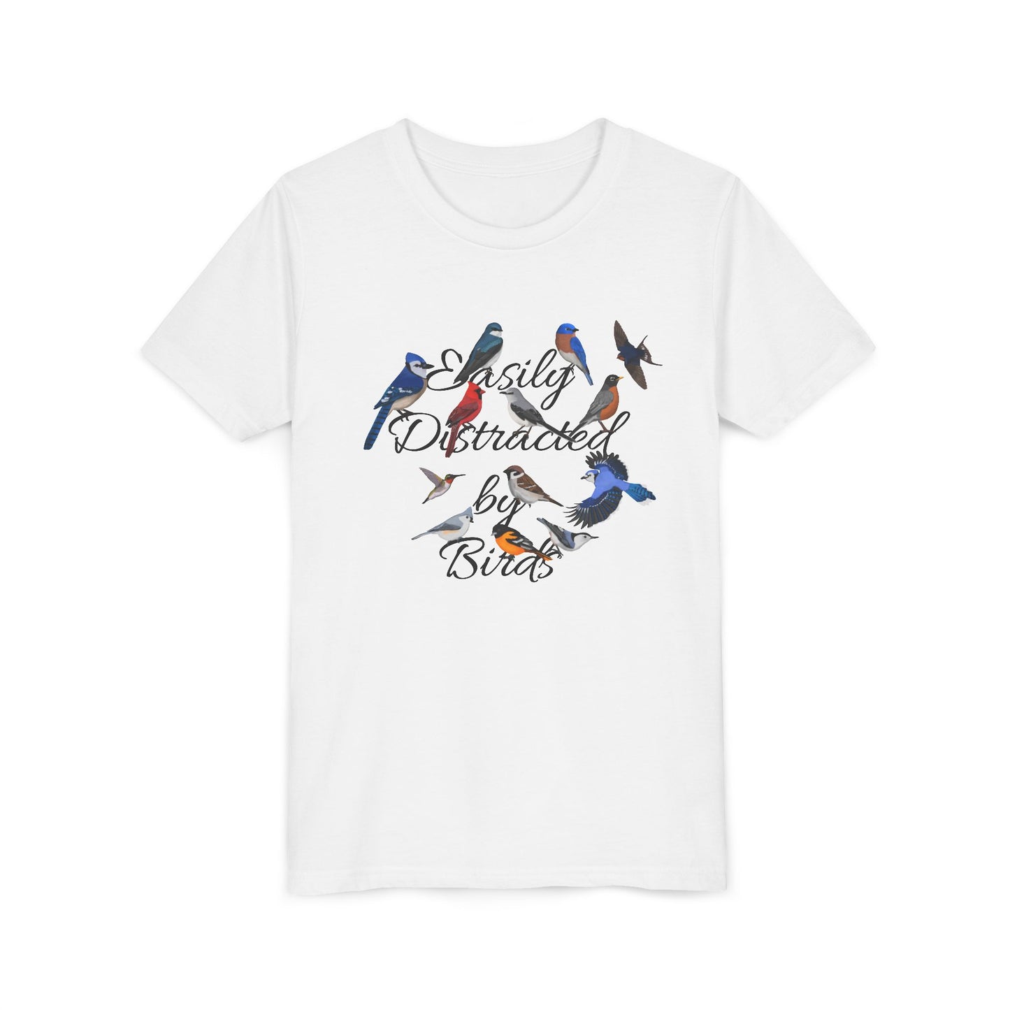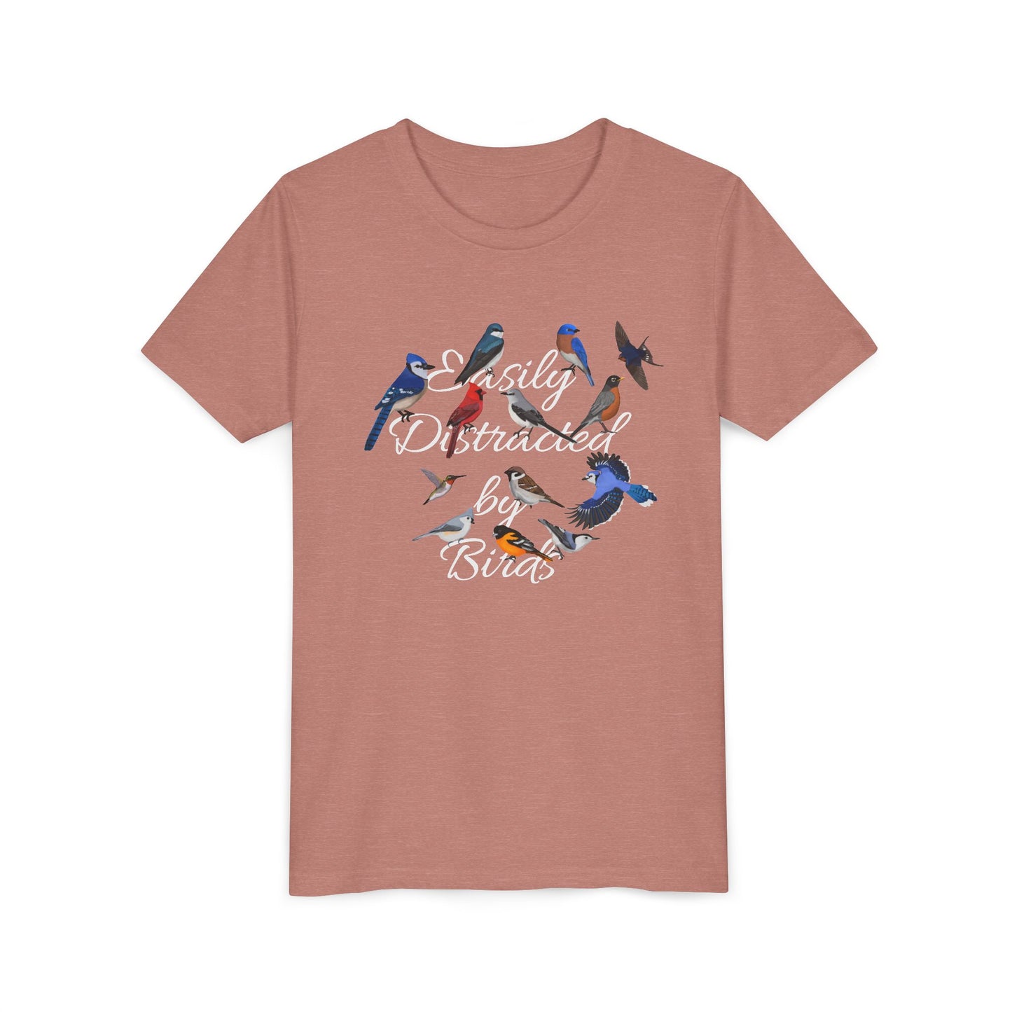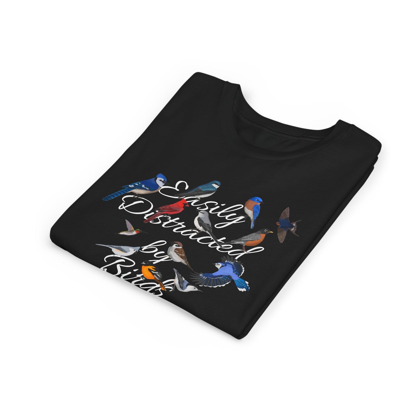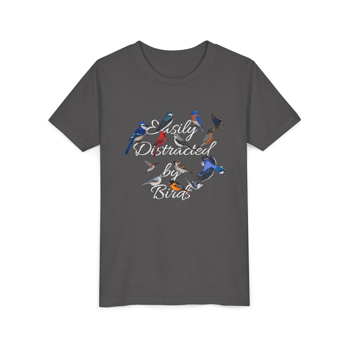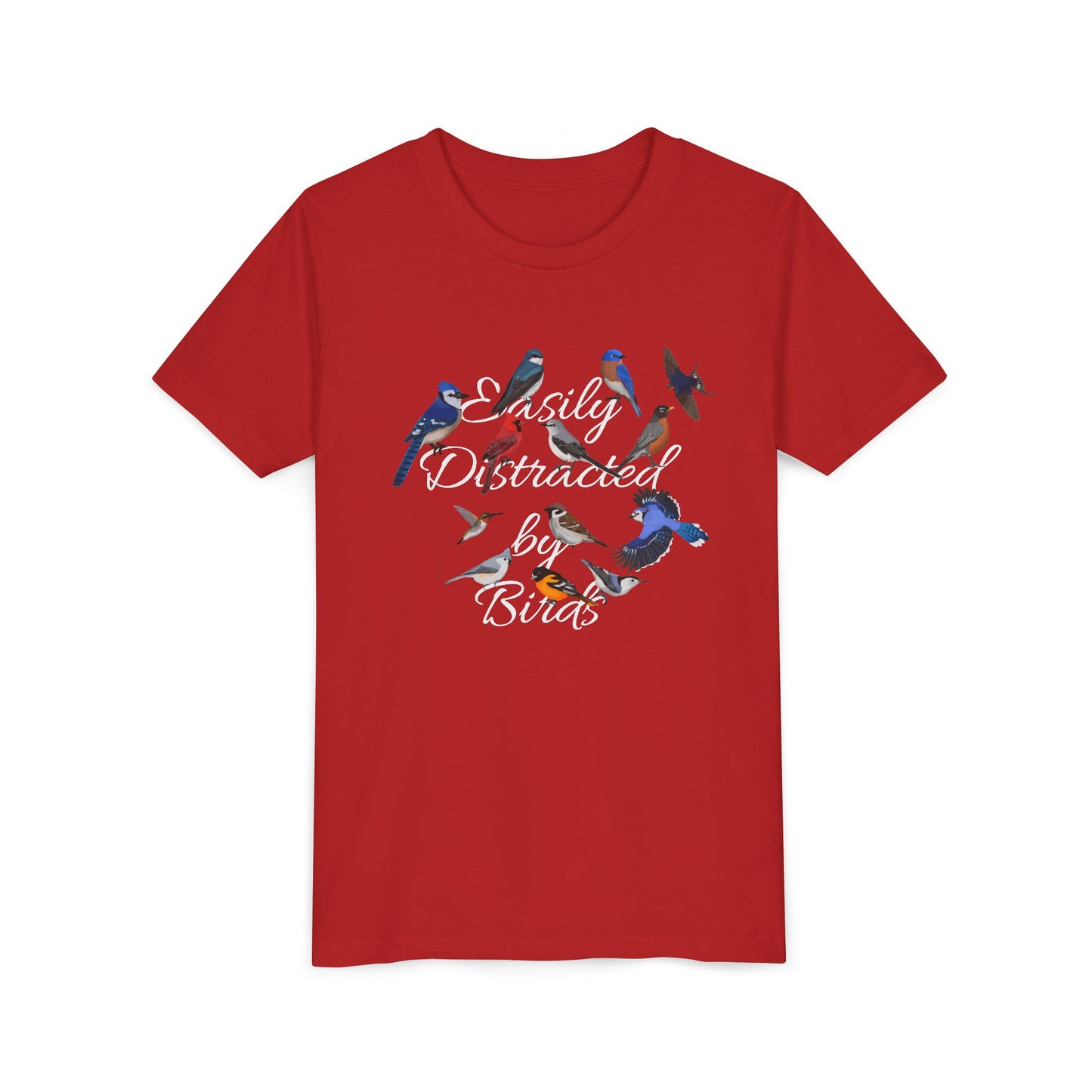 Easily Distracted by Birds Blue Jay Cardinal Oriole Robin Birding & Birdwatching Bird Youth T-Shirt