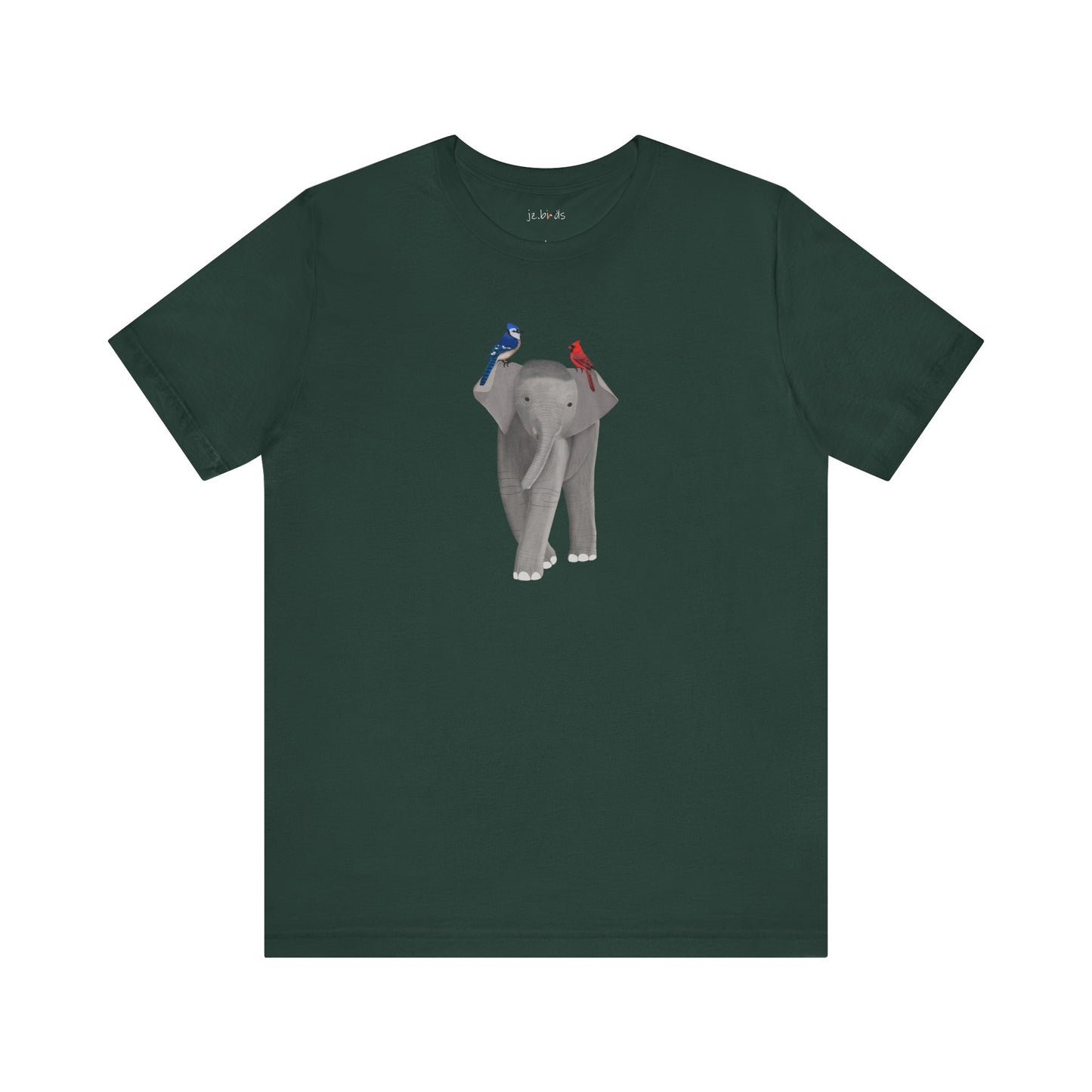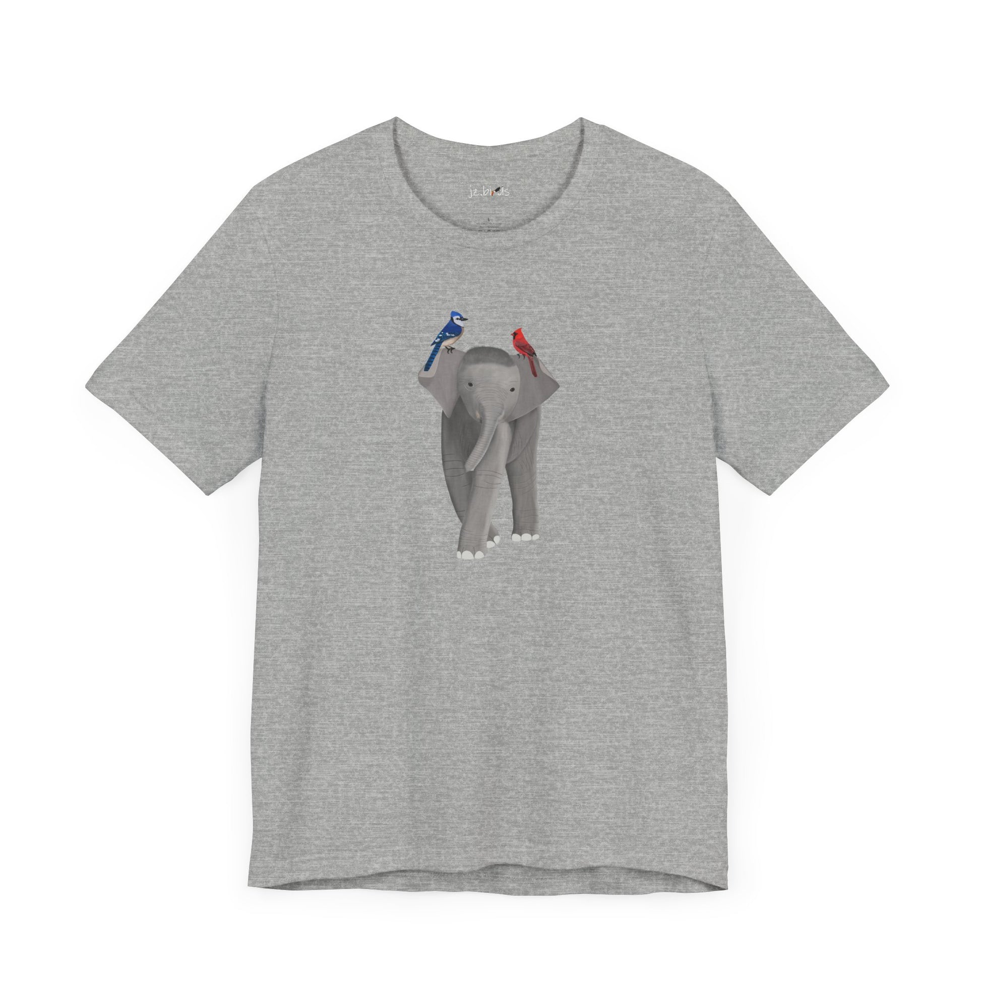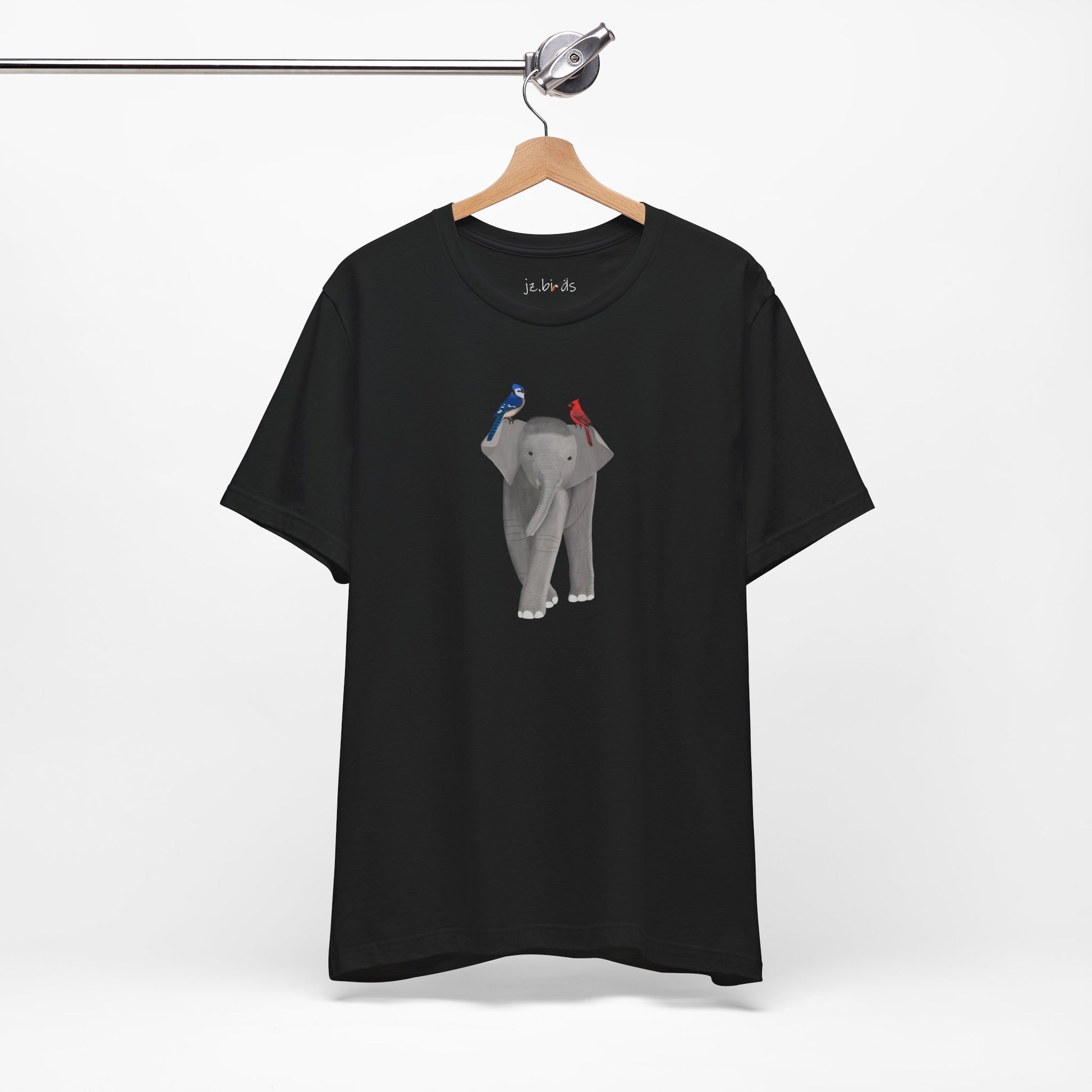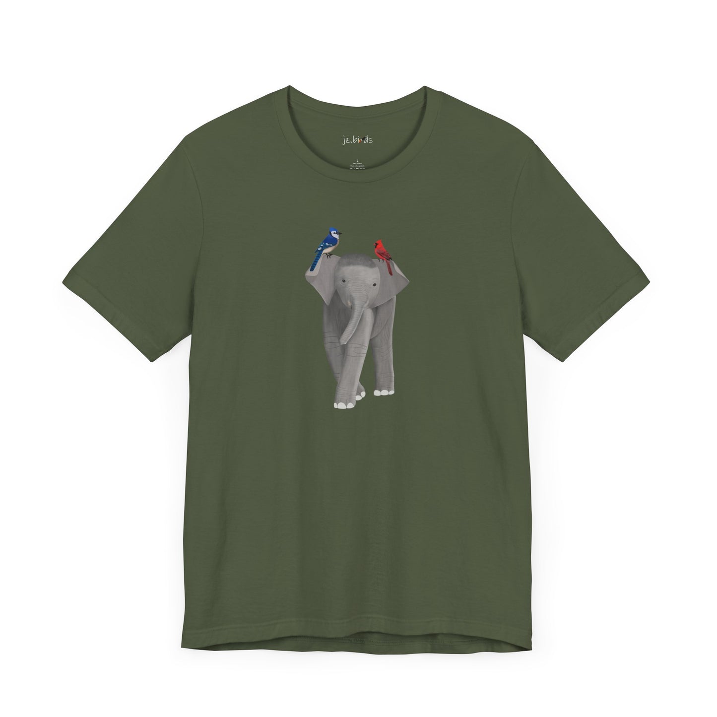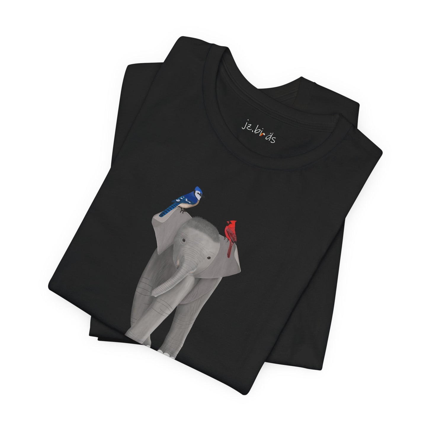 Elephant with Birds Cardinal Blue Jay Birding & Birdwatching T-Shirt