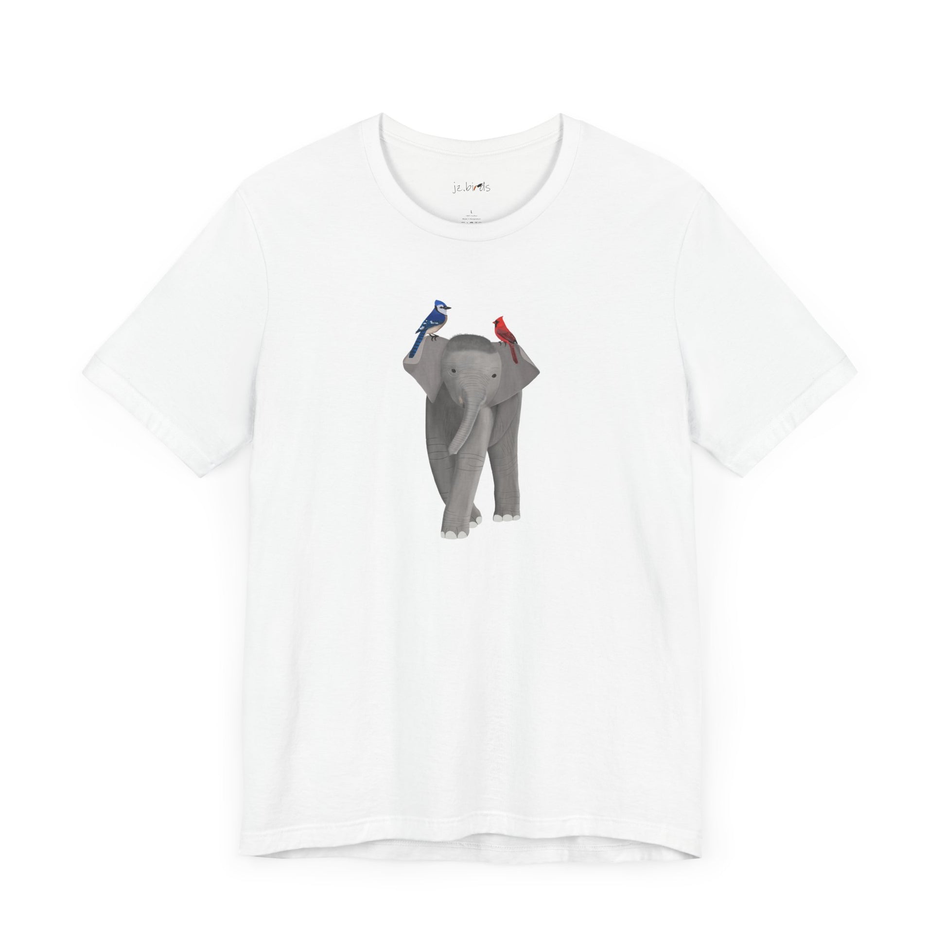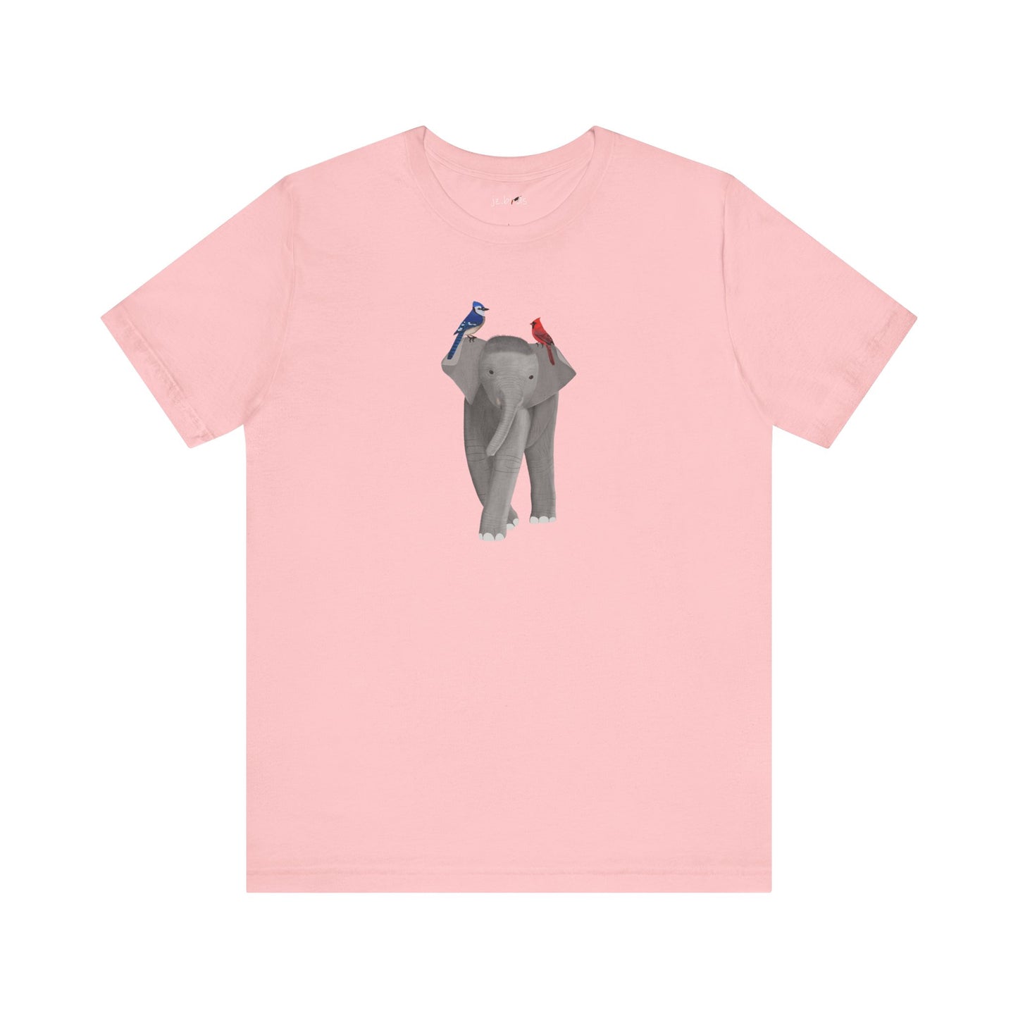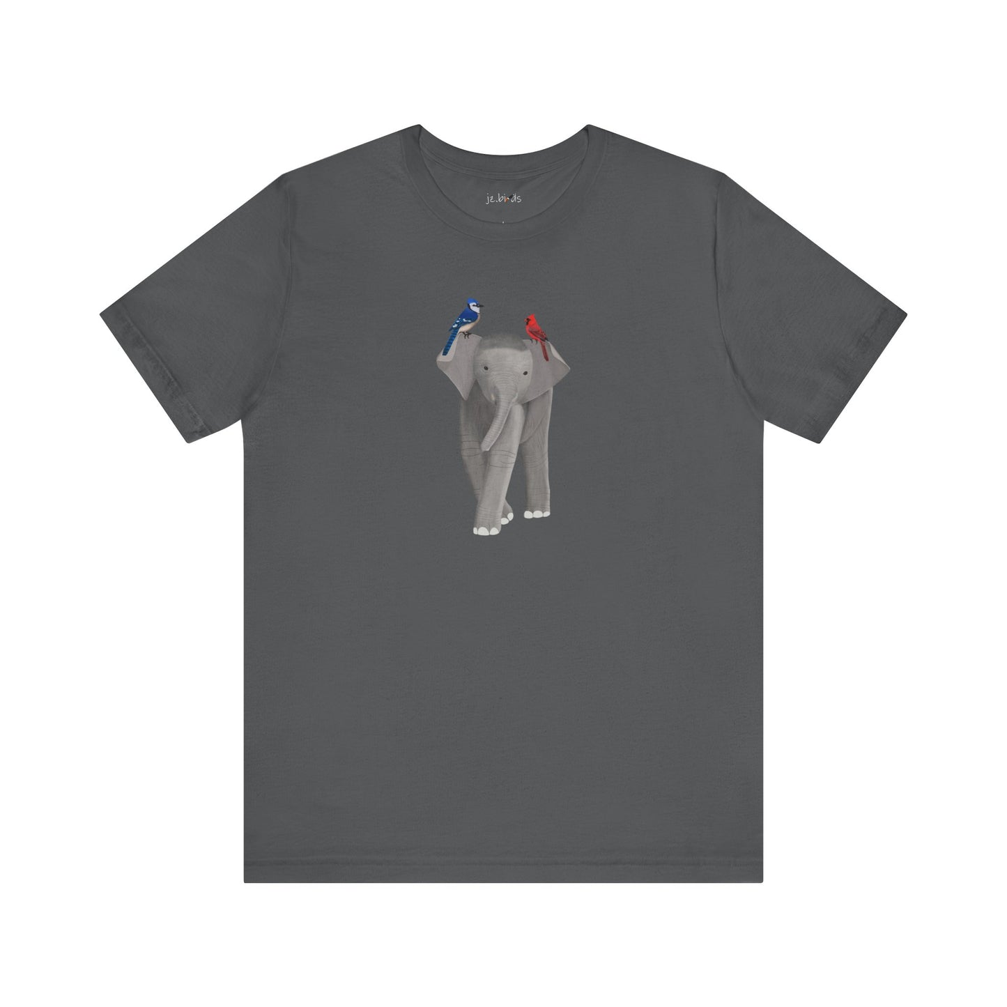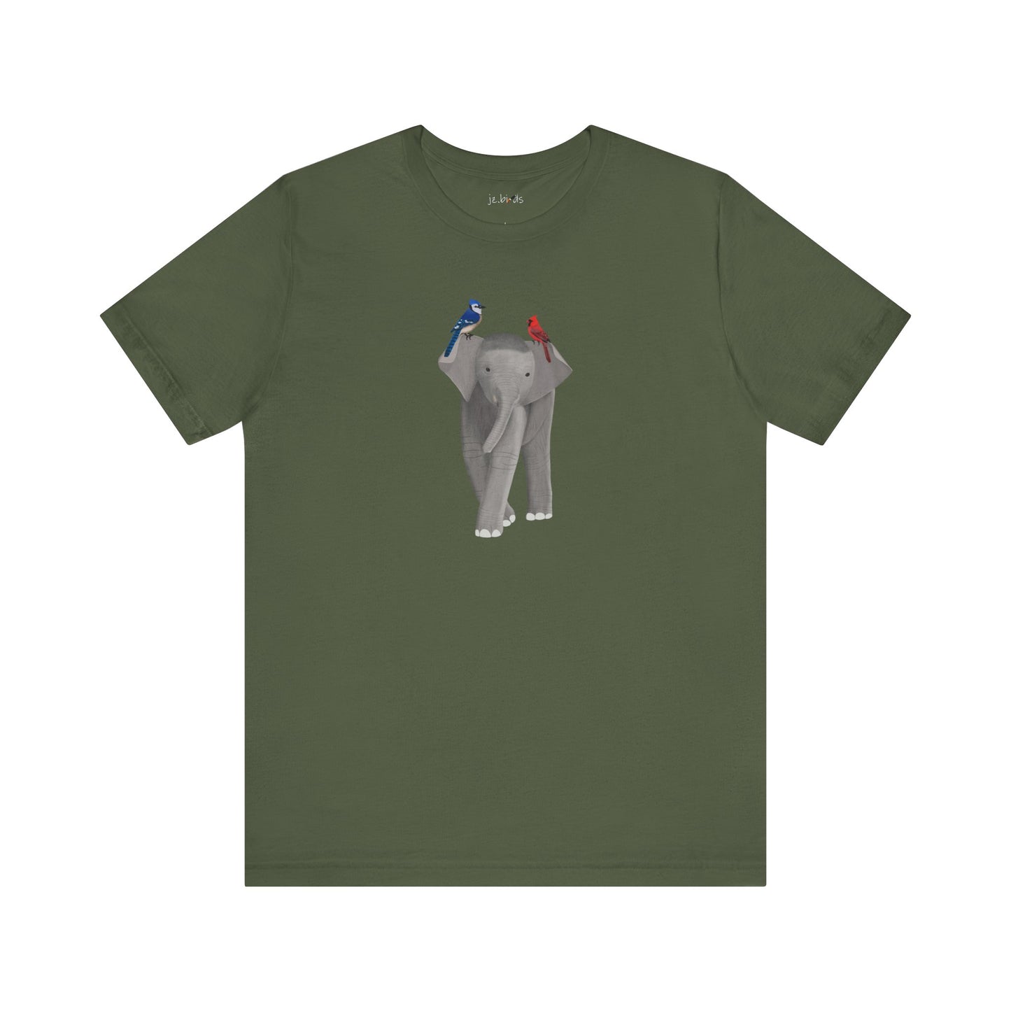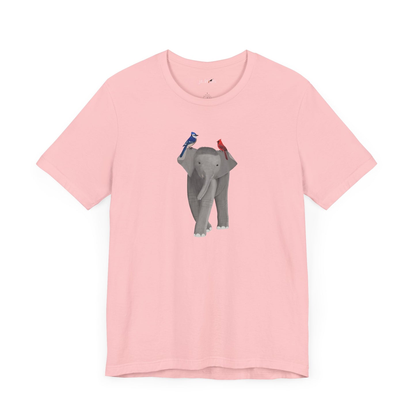 Elephant with Birds Cardinal Blue Jay Birding & Birdwatching T-Shirt