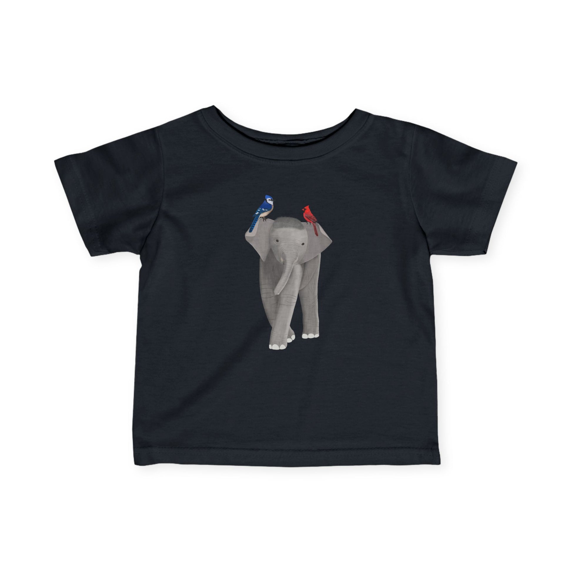 Elephant with Blue Jay Caridnal Bird Baby & Toddler T-Shirt
