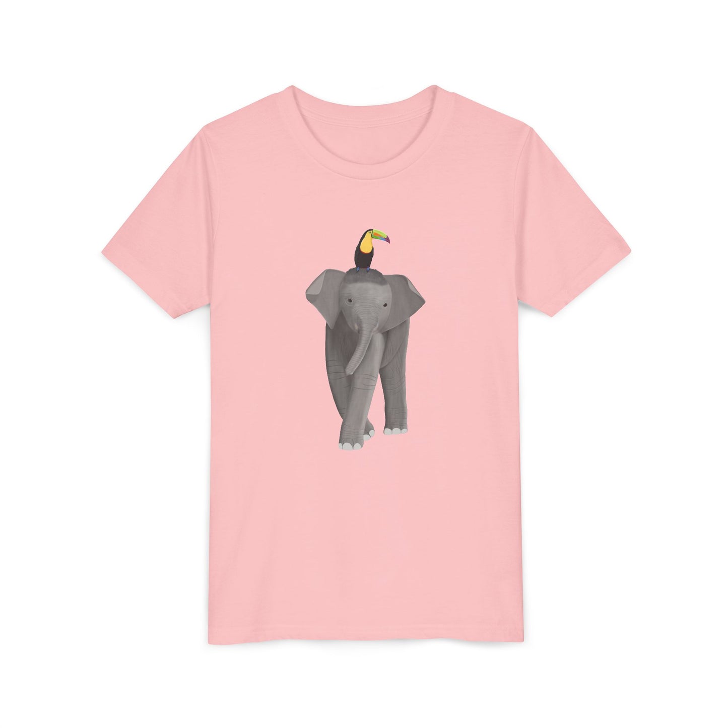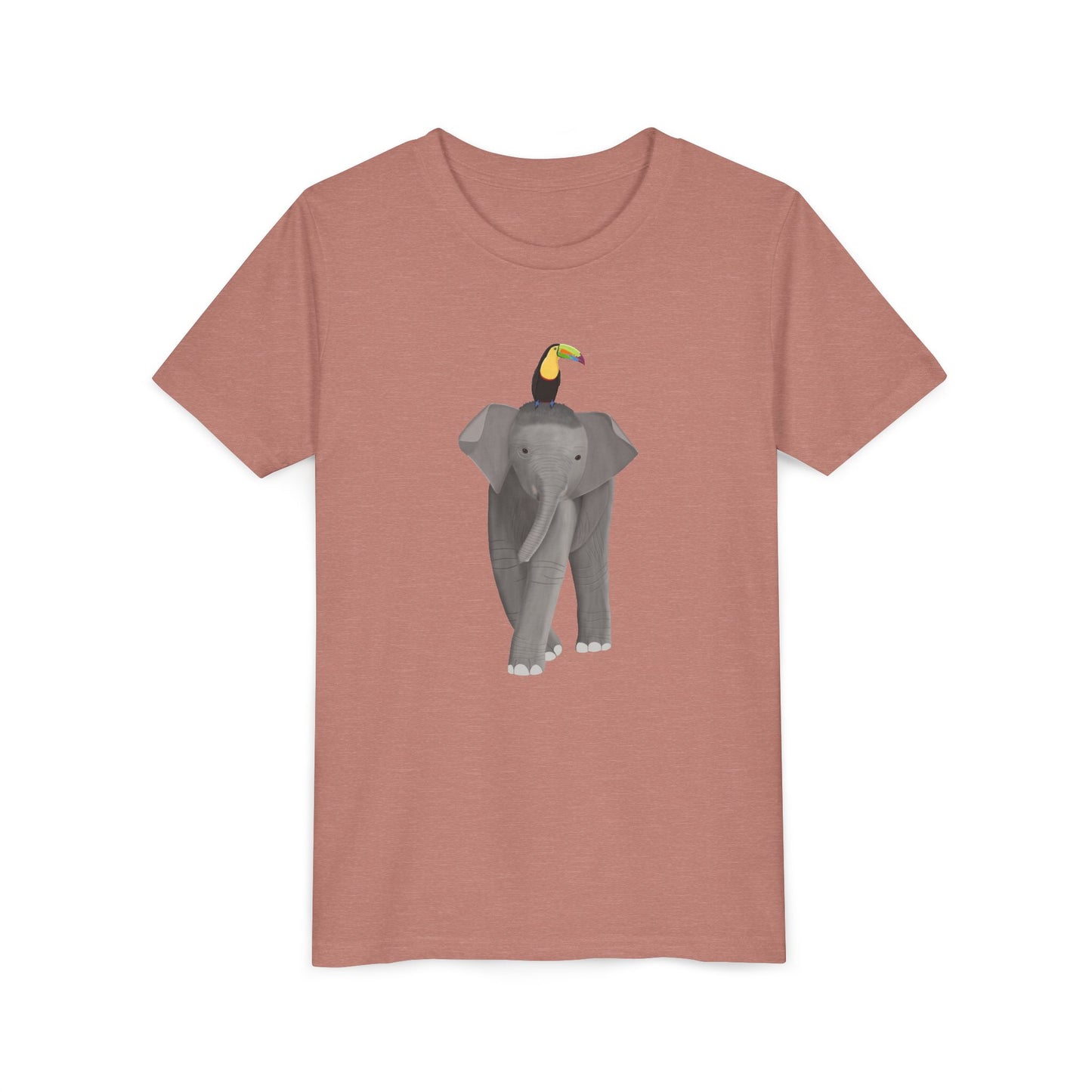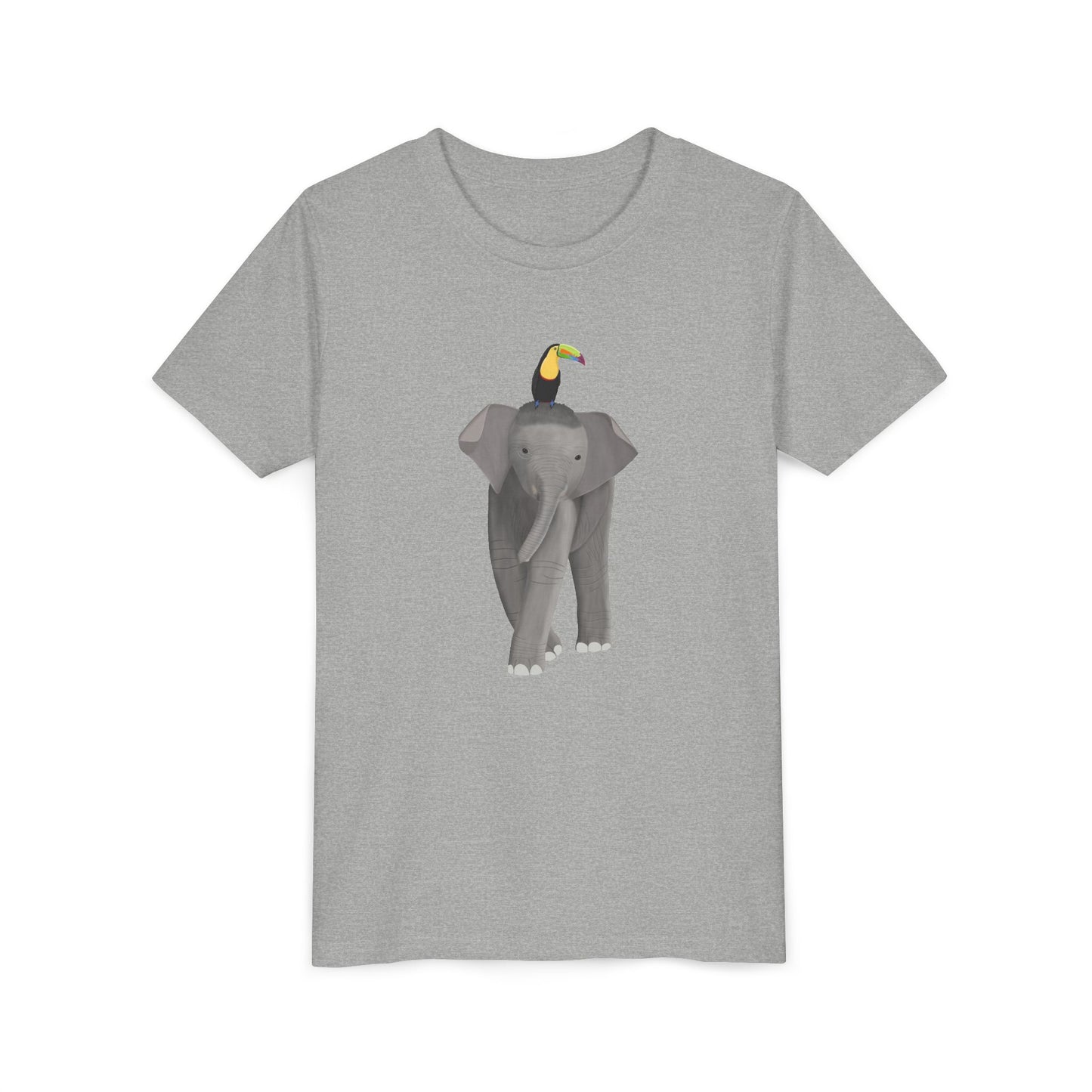 Elephant with Keel Billed Toucan Bird Youth T-Shirt