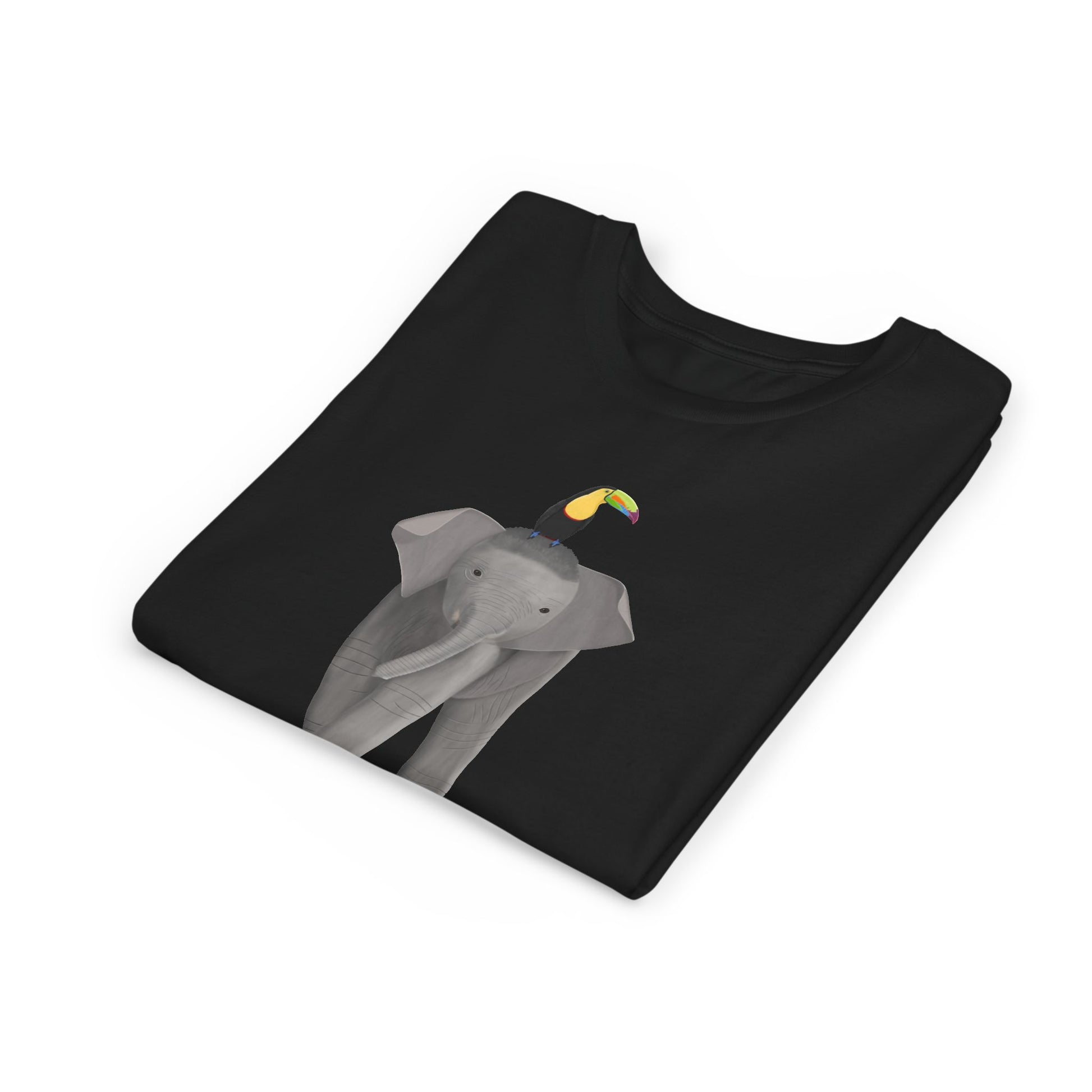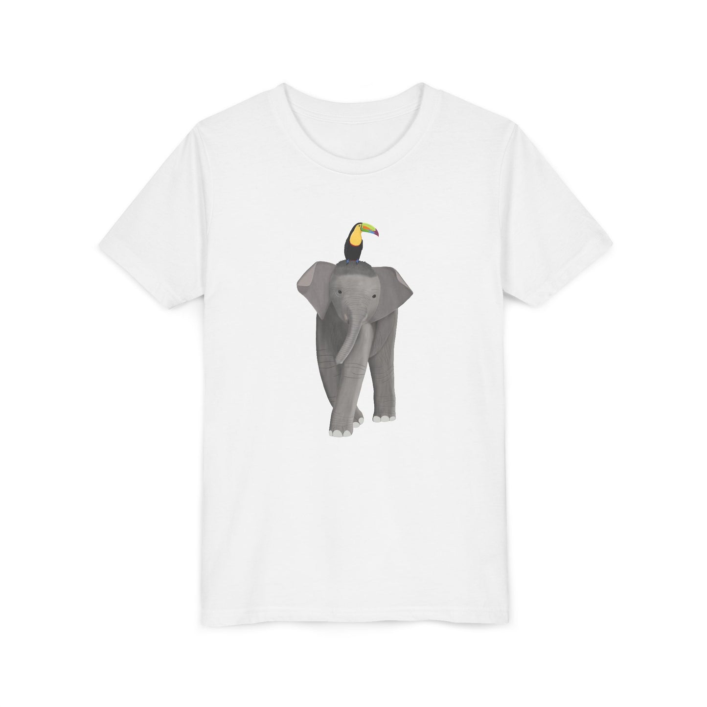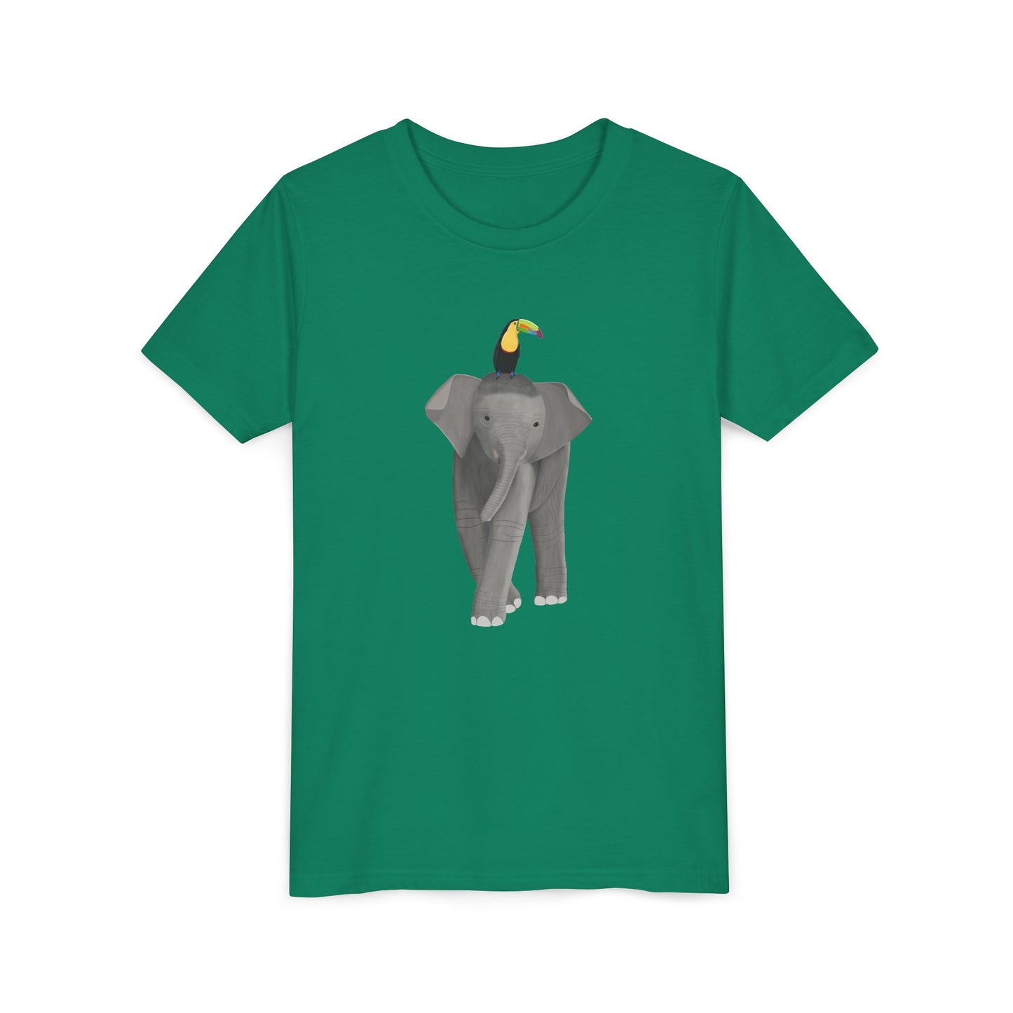 Elephant with Keel Billed Toucan Bird Youth T-Shirt