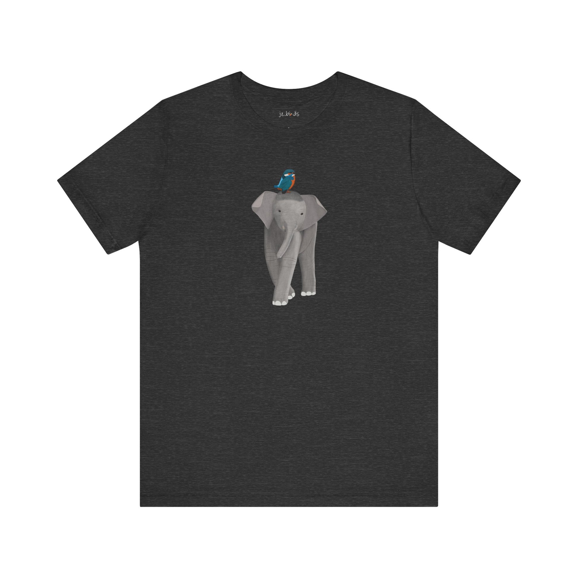 This elephant with a kingfisher bird t-shirt is a must-have for bird lovers. Featuring beautiful elephant and bird artwork, it's the perfect addition to any nature enthusiast's wardrobe for birding and birdwatching. Made of high-quality material, this shirt is both comfortable and stylish. Show your love for birds and stand out in any crowd with this unique and eye-catching t-shirt.