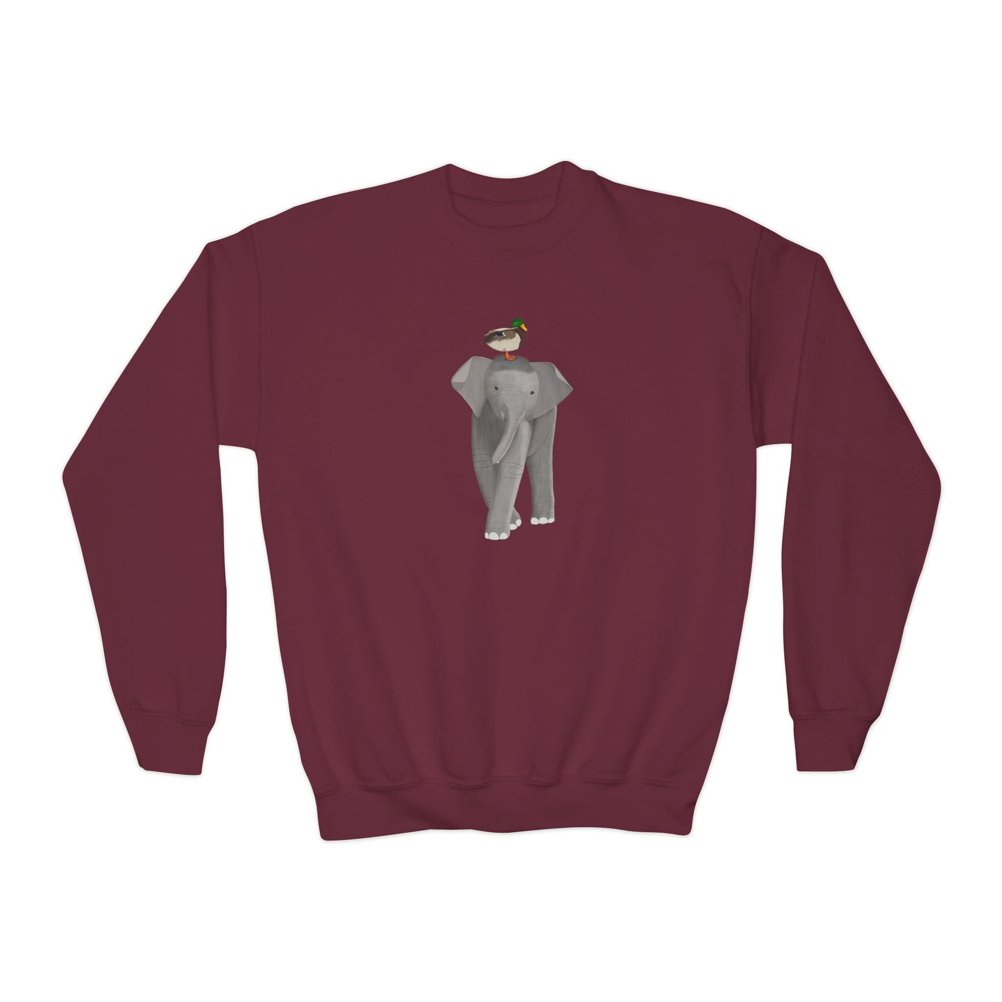 Elephant with Mallard Bird Youth Crewneck Sweatshirt