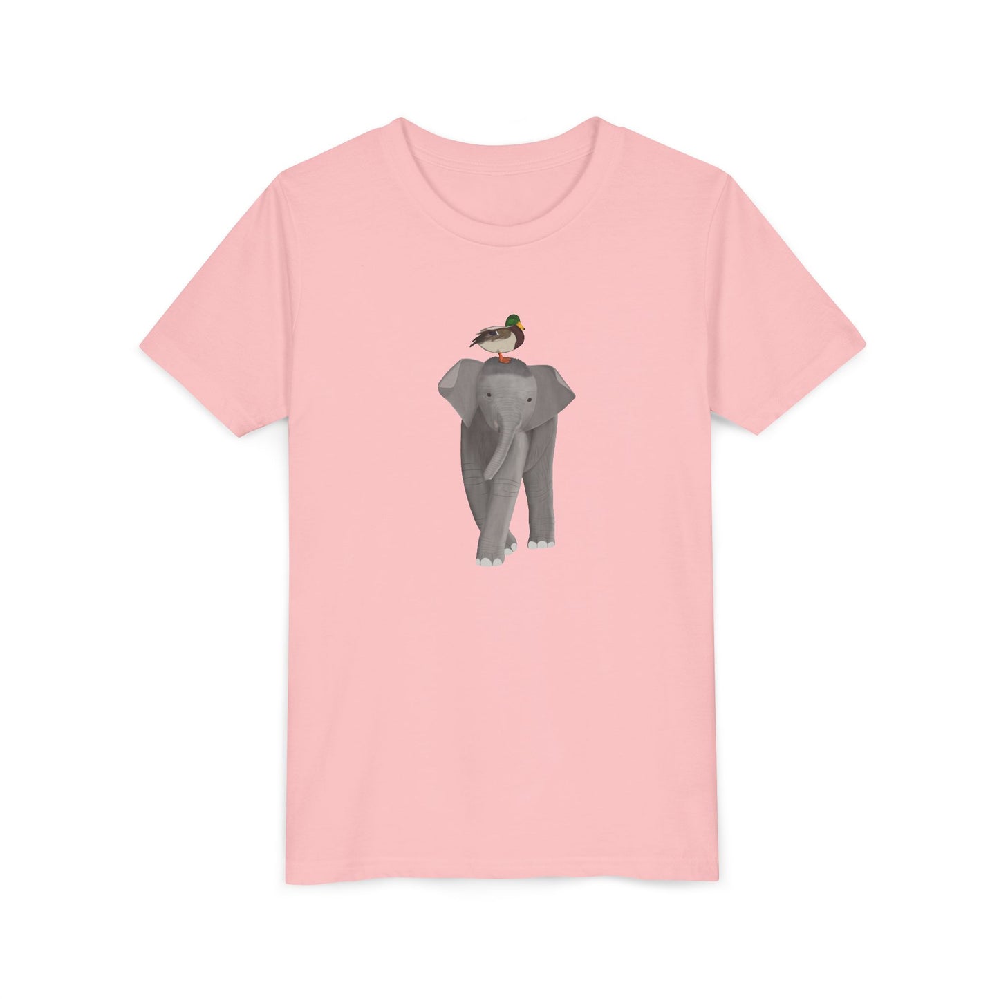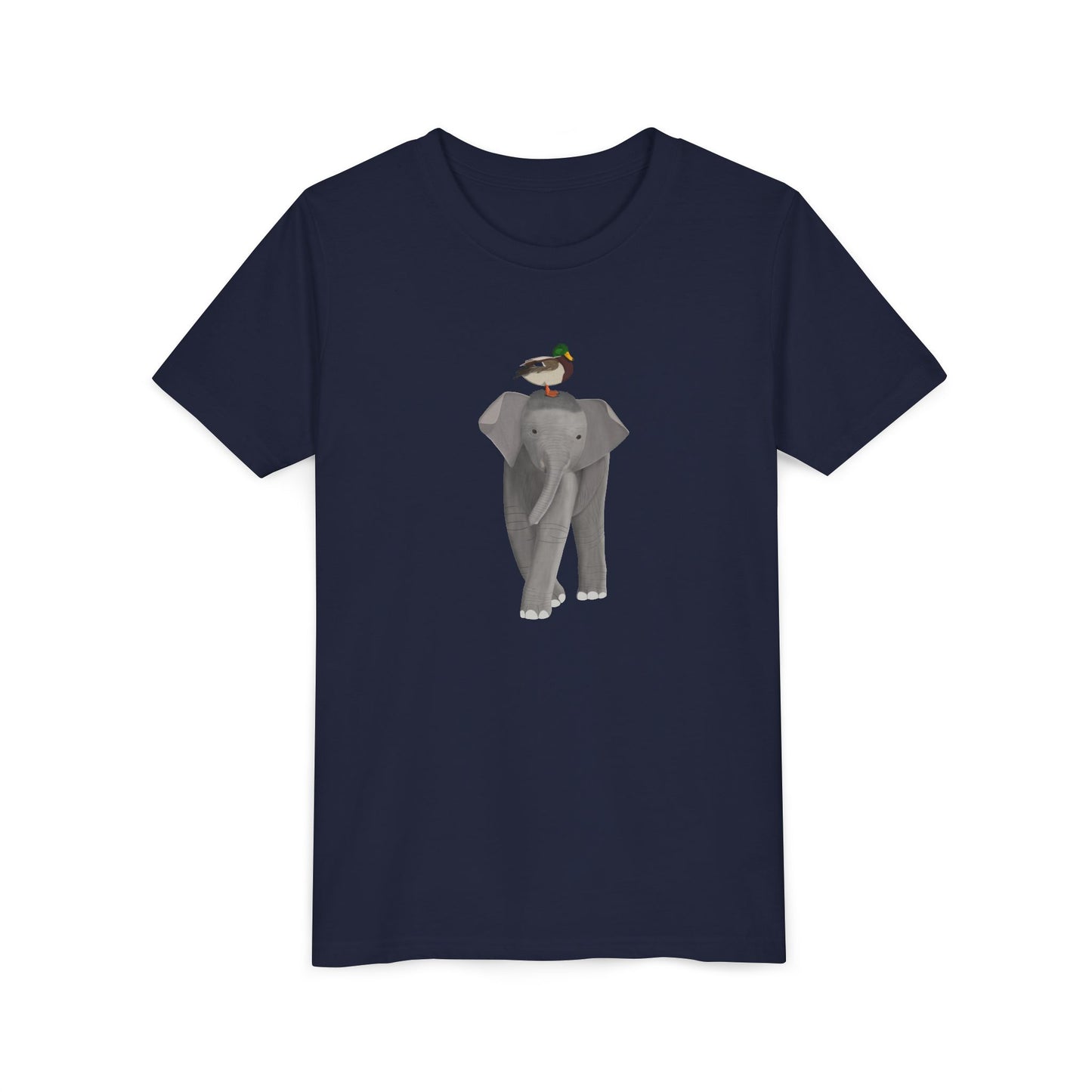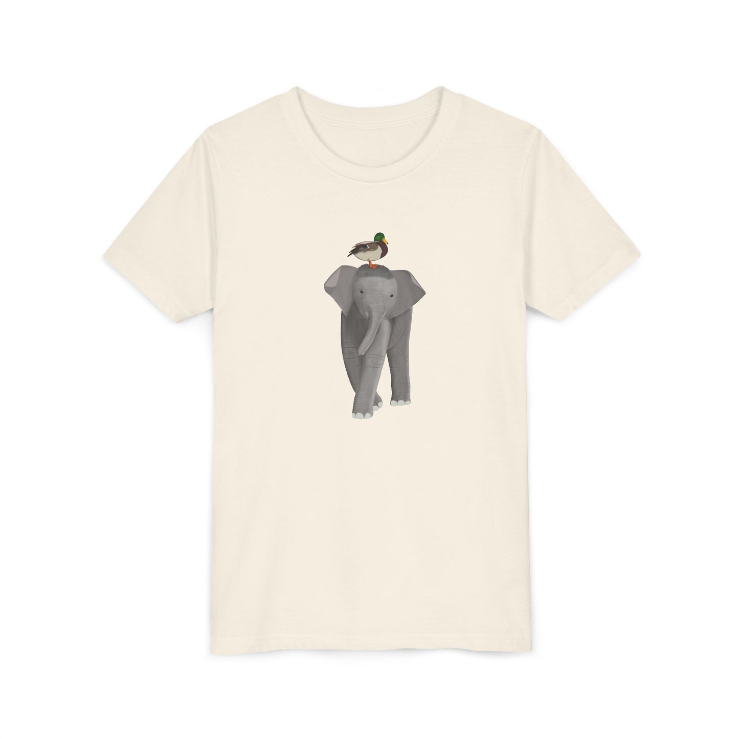 Introducing our delightful Elephant with Mallard Bird Youth Short Sleeve Tee, designed to bring joy and comfort to your child’s wardrobe. Crafted with soft, airlume-combed cotton, this tee envelops your little one in a gentle embrace, making it perfect for everyday adventures or cozy days at home. The charming graphic of an elephant with playful birds adds a whimsical touch, sparking imagination and fun. Ideal for kids who love nature and animals, this tee makes a great gift for birthdays, holidays!