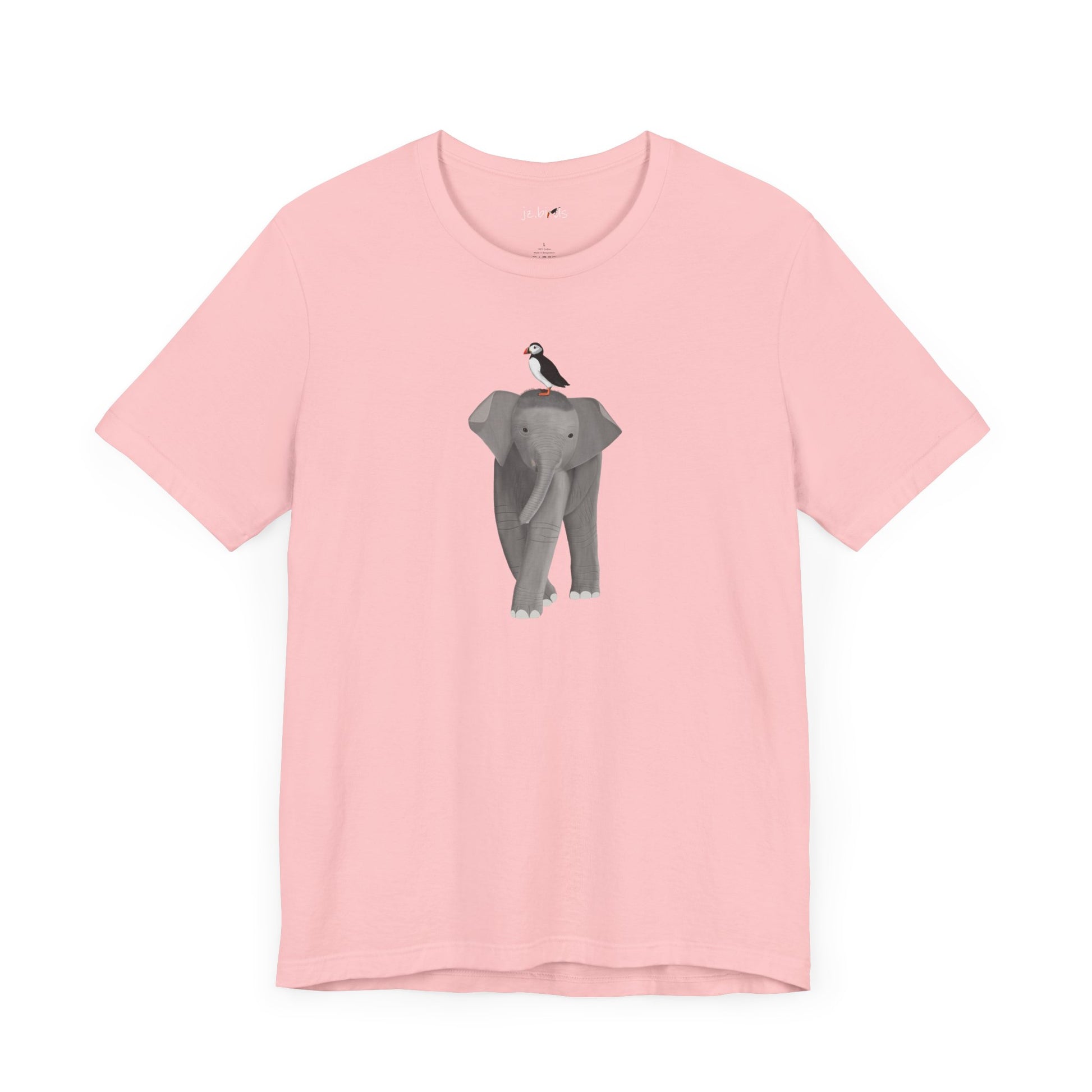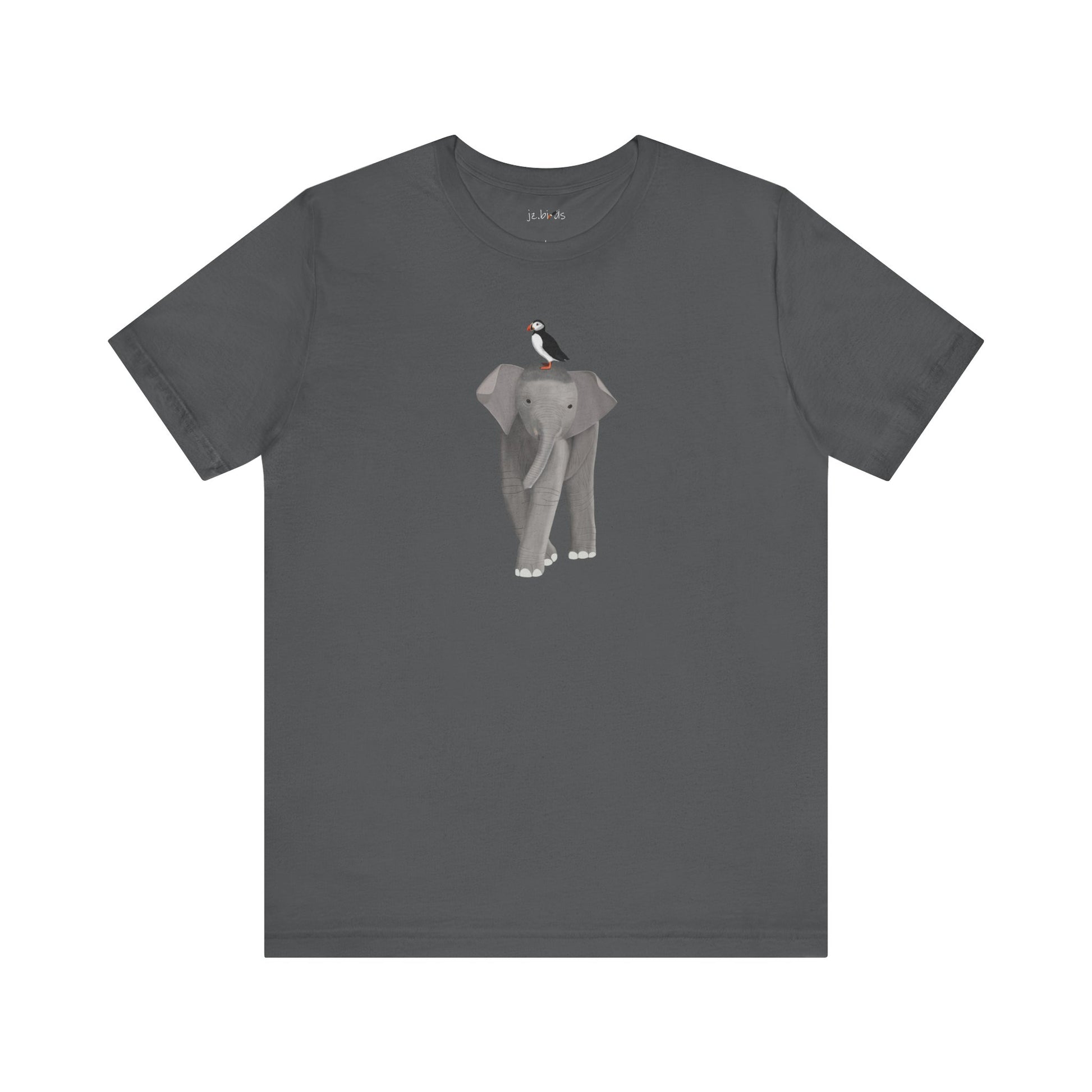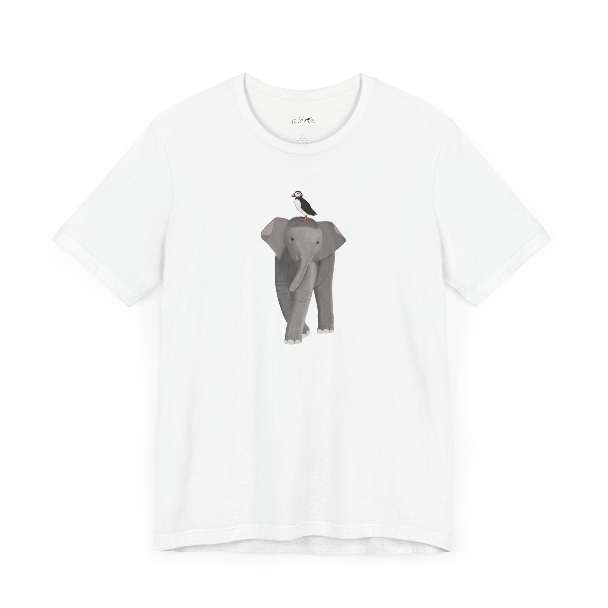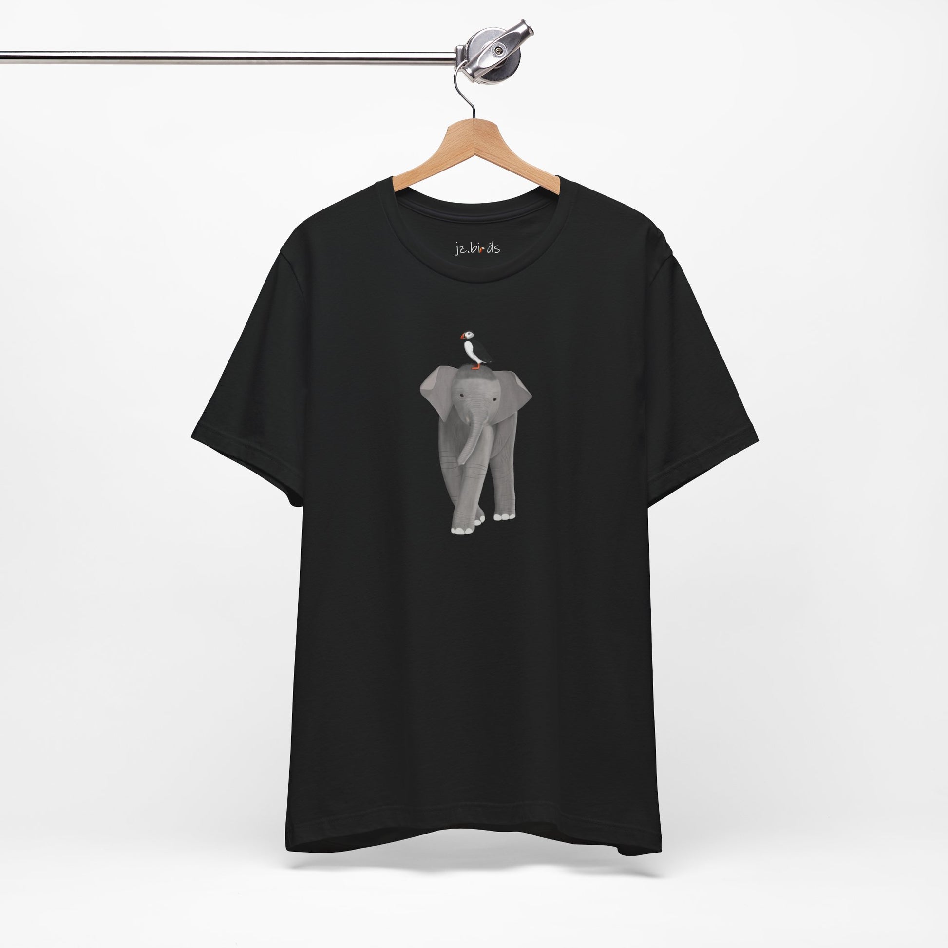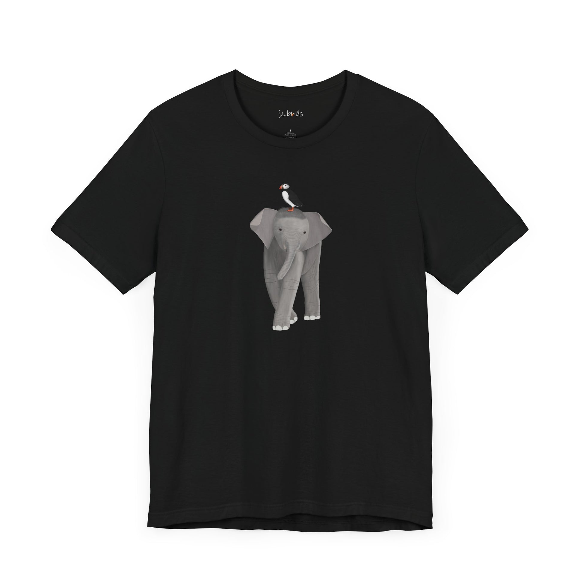 This elephant with a puffin bird t-shirt is a must-have for bird lovers. Featuring beautiful elephant and bird artwork, it's the perfect addition to any nature enthusiast's wardrobe for birding and birdwatching. Made of high-quality material, this shirt is both comfortable and stylish. Show your love for birds and stand out in any crowd with this unique and eye-catching t-shirt.