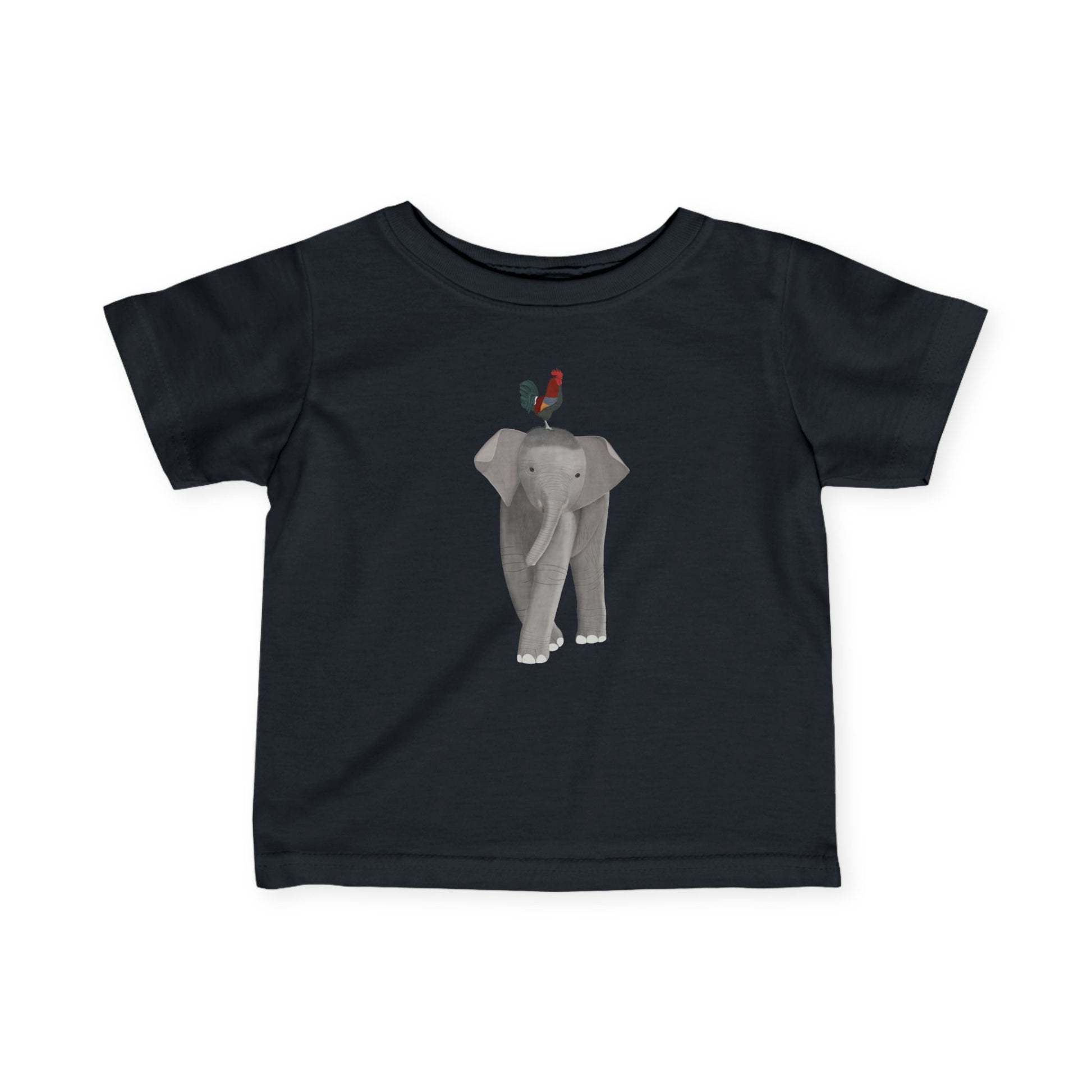 Get your little one dressed for some fun with this adorable elephant and bird t-shirt. Made for babies and toddlers, this shirt will make everyone smile with its cute and funny design. Perfect for any little bird lover! Add a playful touch to your little one's closet with this charming baby and toddler t-shirt featuring a whimsical elephant design with a bird perched on its head. This shirt is not only funny and cute, but also comfortable and perfect for everyday wear.
