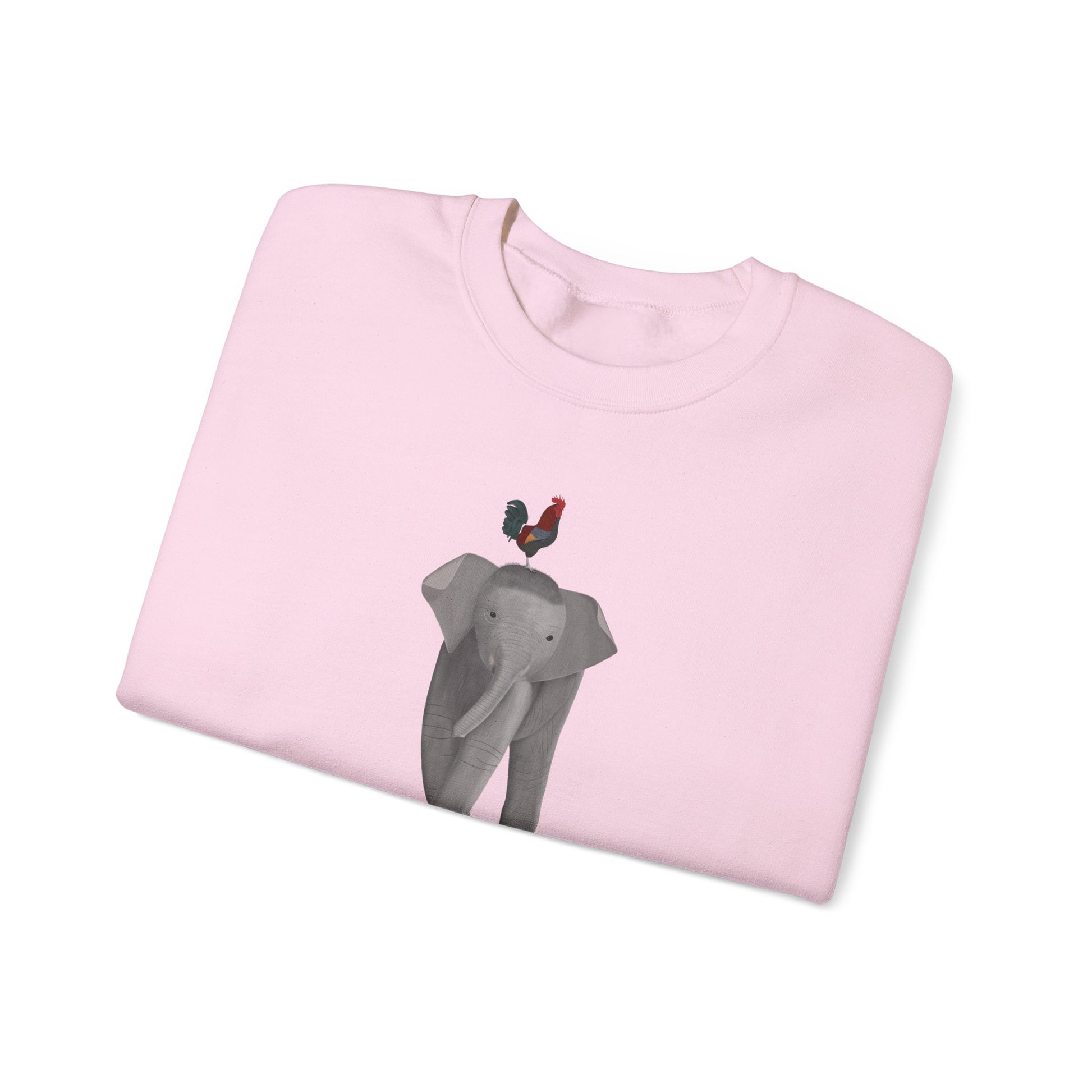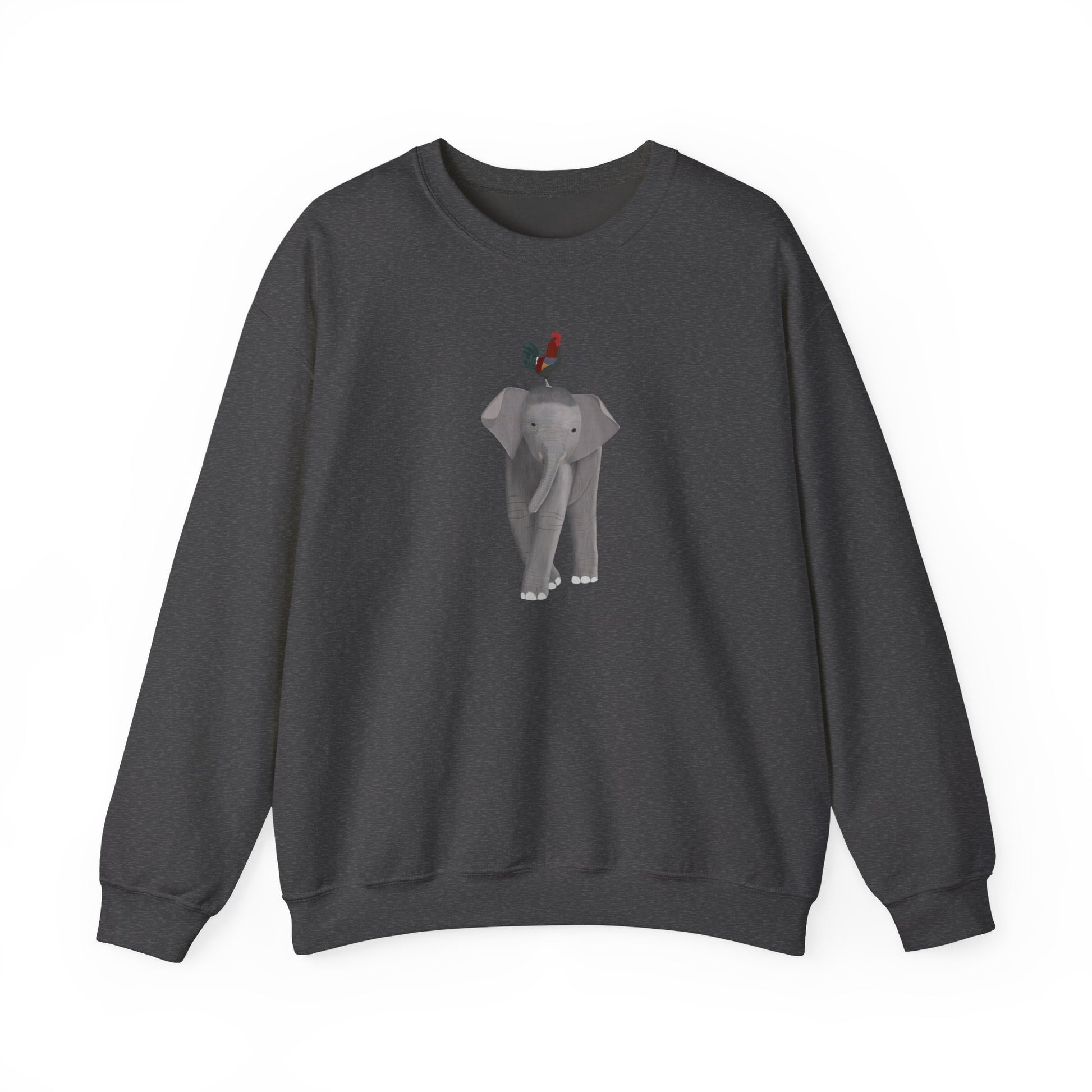 Elephant with Rooster Bird Birding & Birdwatching Sweatshirt