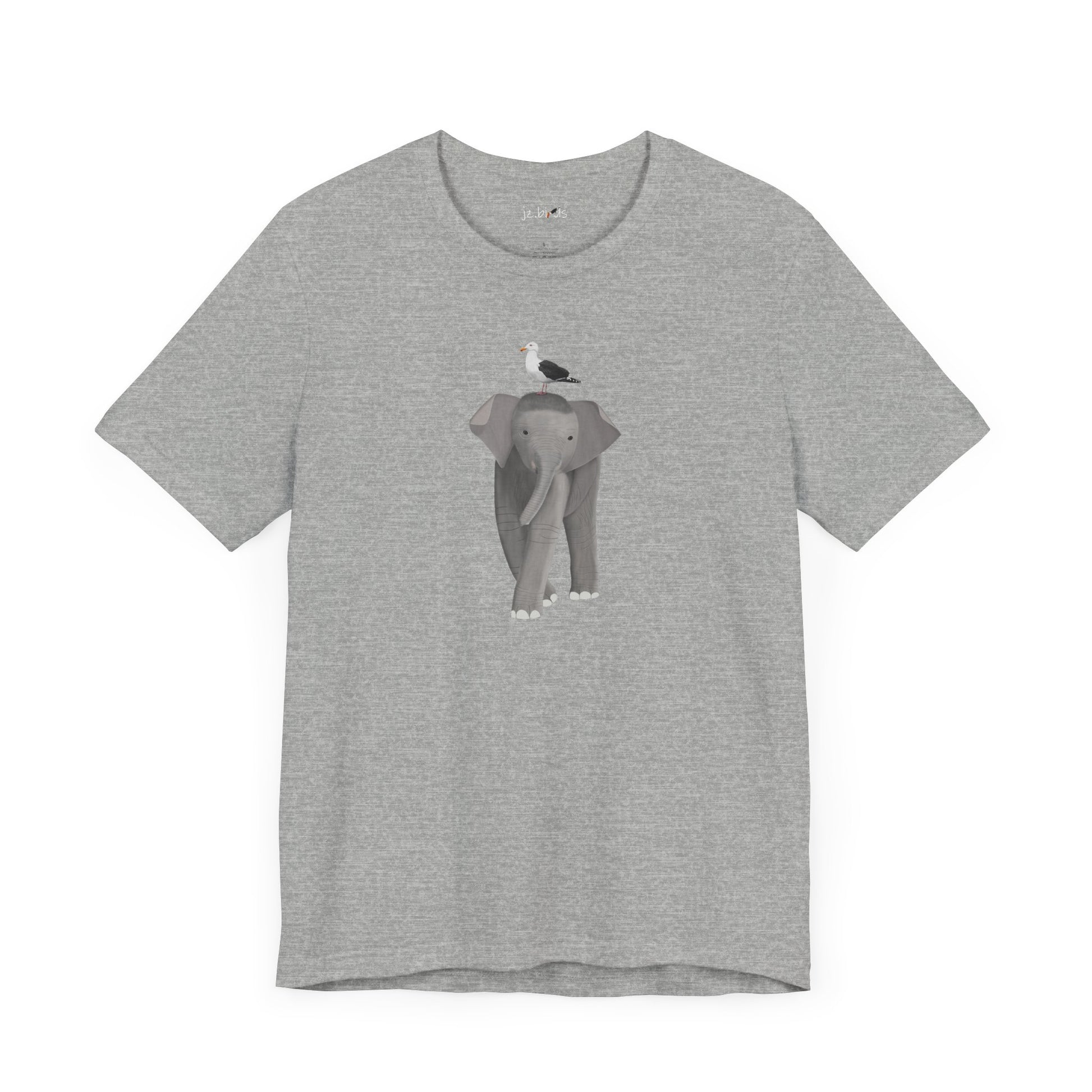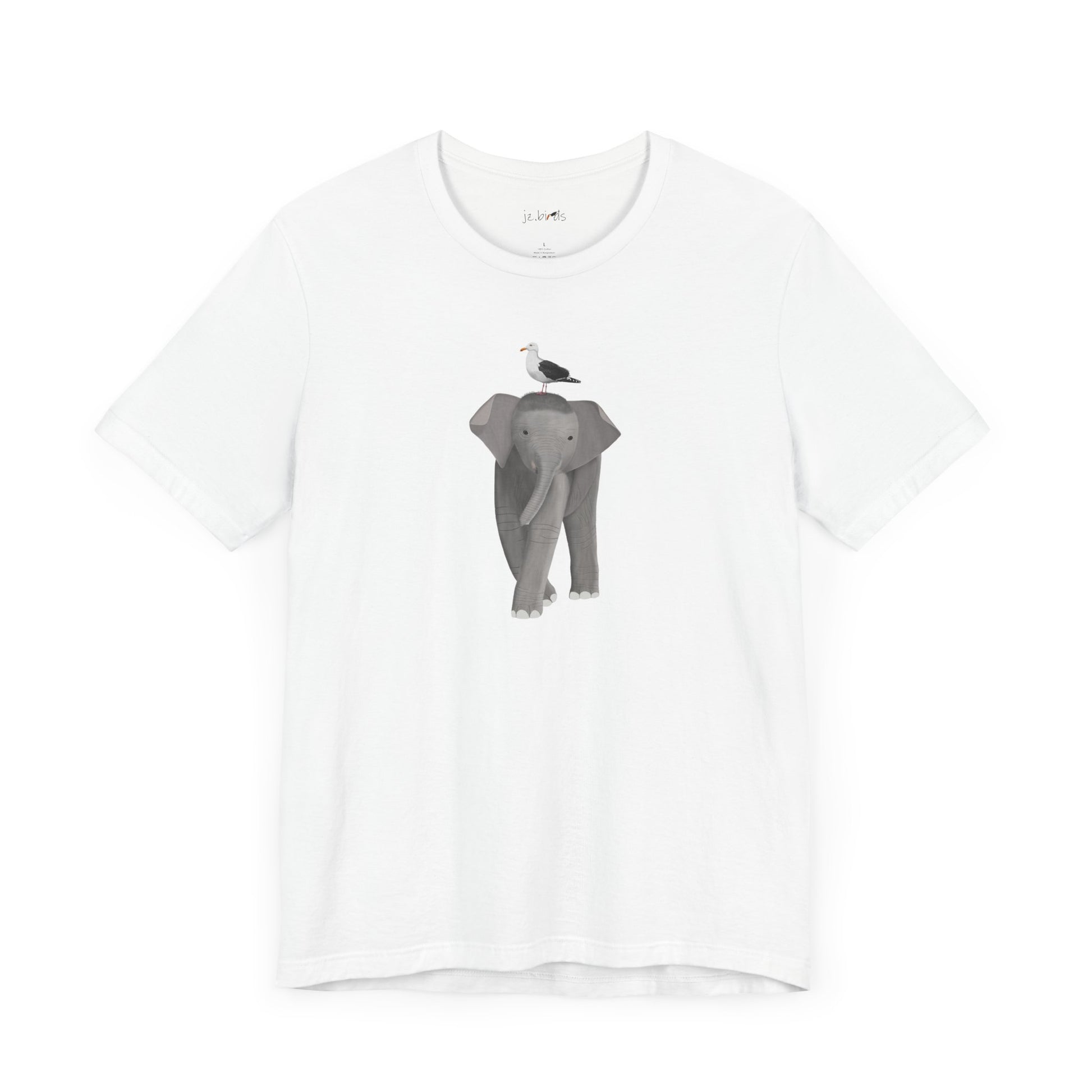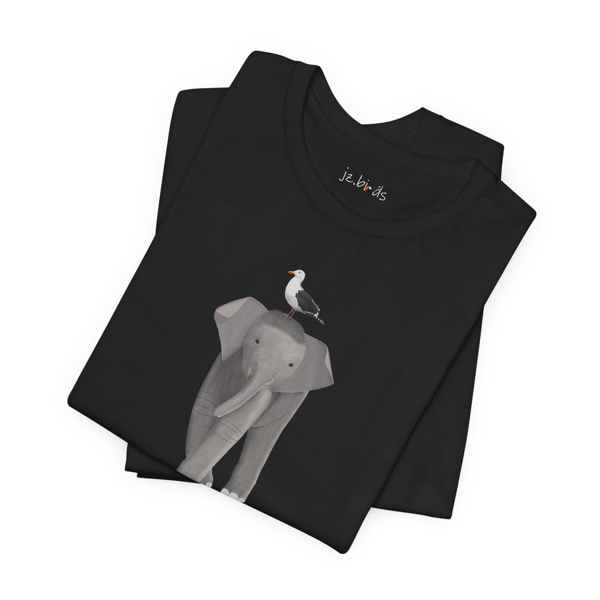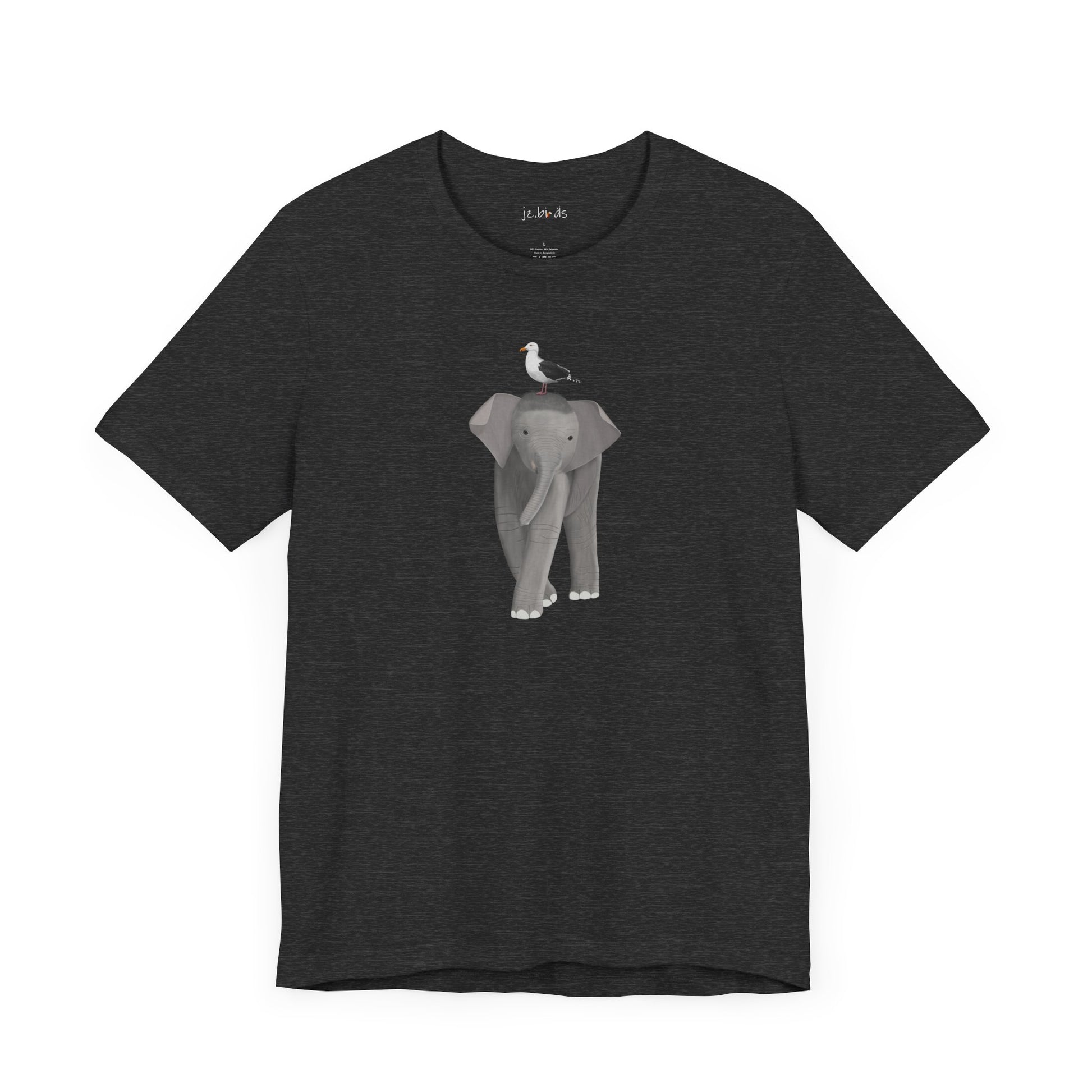 This elephant with a seagull bird t-shirt is a must-have for bird lovers. Featuring beautiful elephant and bird artwork, it's the perfect addition to any nature enthusiast's wardrobe for birding and birdwatching. Made of high-quality material, this shirt is both comfortable and stylish. Show your love for birds and stand out in any crowd with this unique and eye-catching t-shirt.