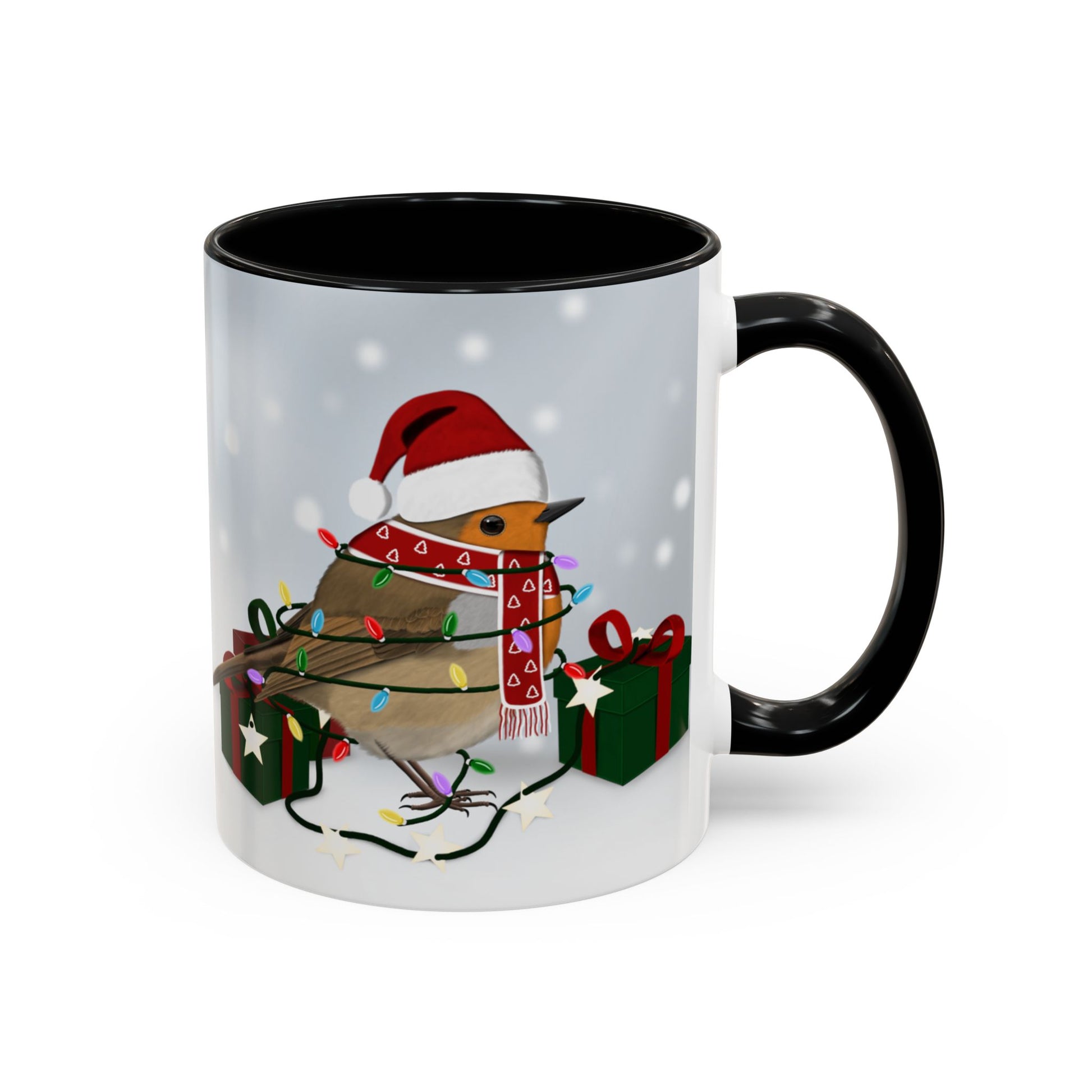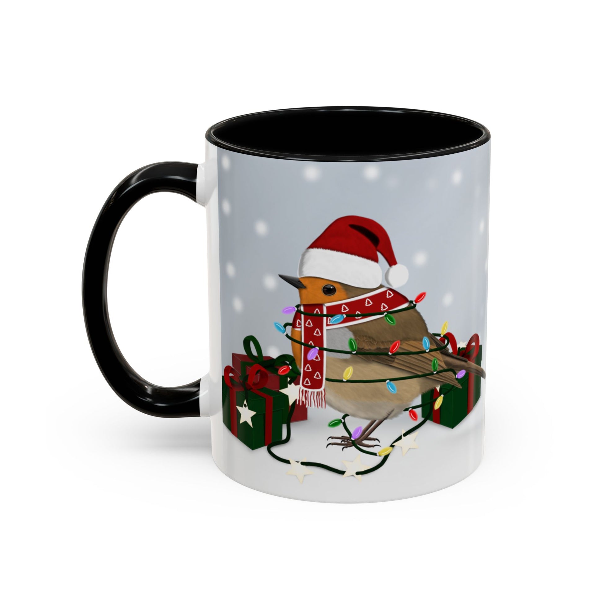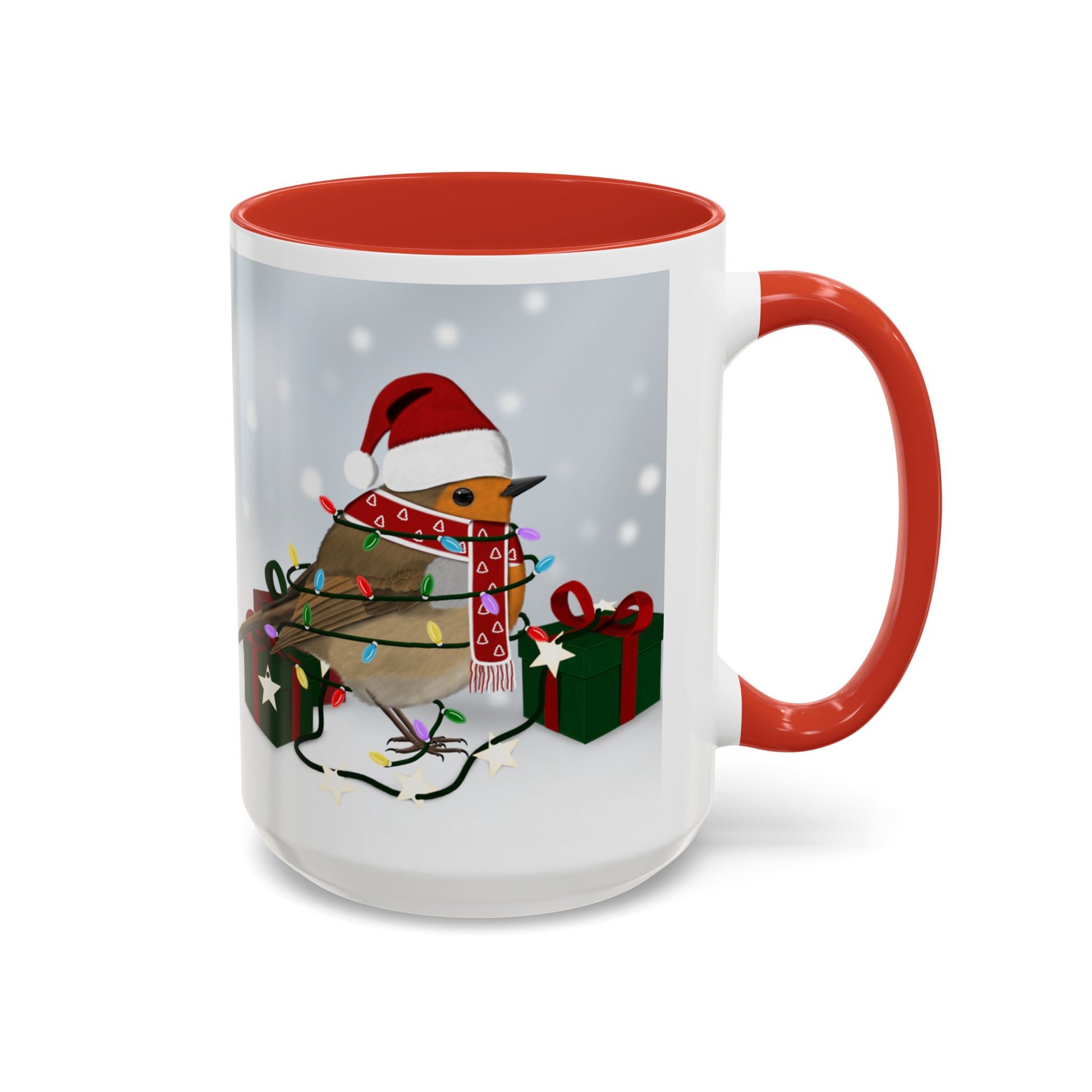 This festive coffee mug is perfect for the holiday season, featuring a charming European Robin with Christmas Hat and Scarf bird design. Made of durable ceramic, it's the ideal way for birdwatchers to enjoy your favorite hot beverages during the winter months. Add some joy to your mornings with this bird mug.