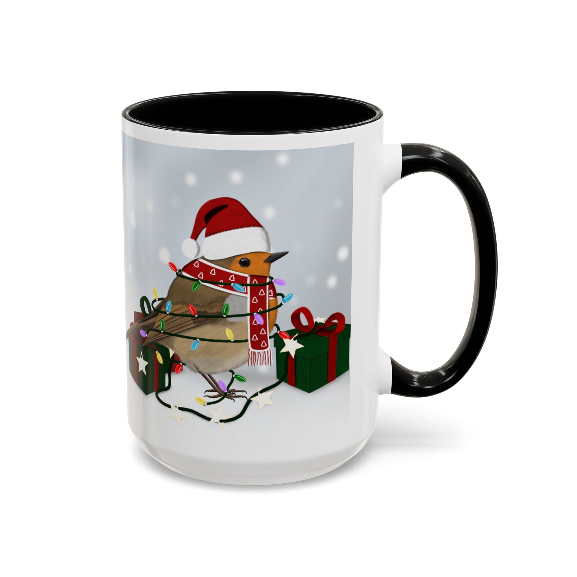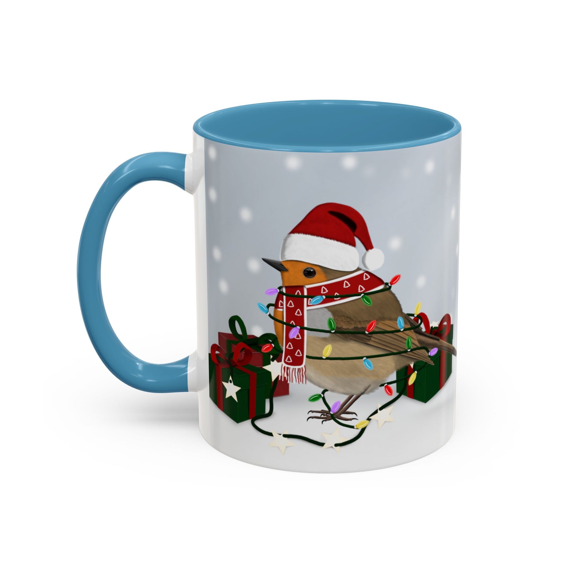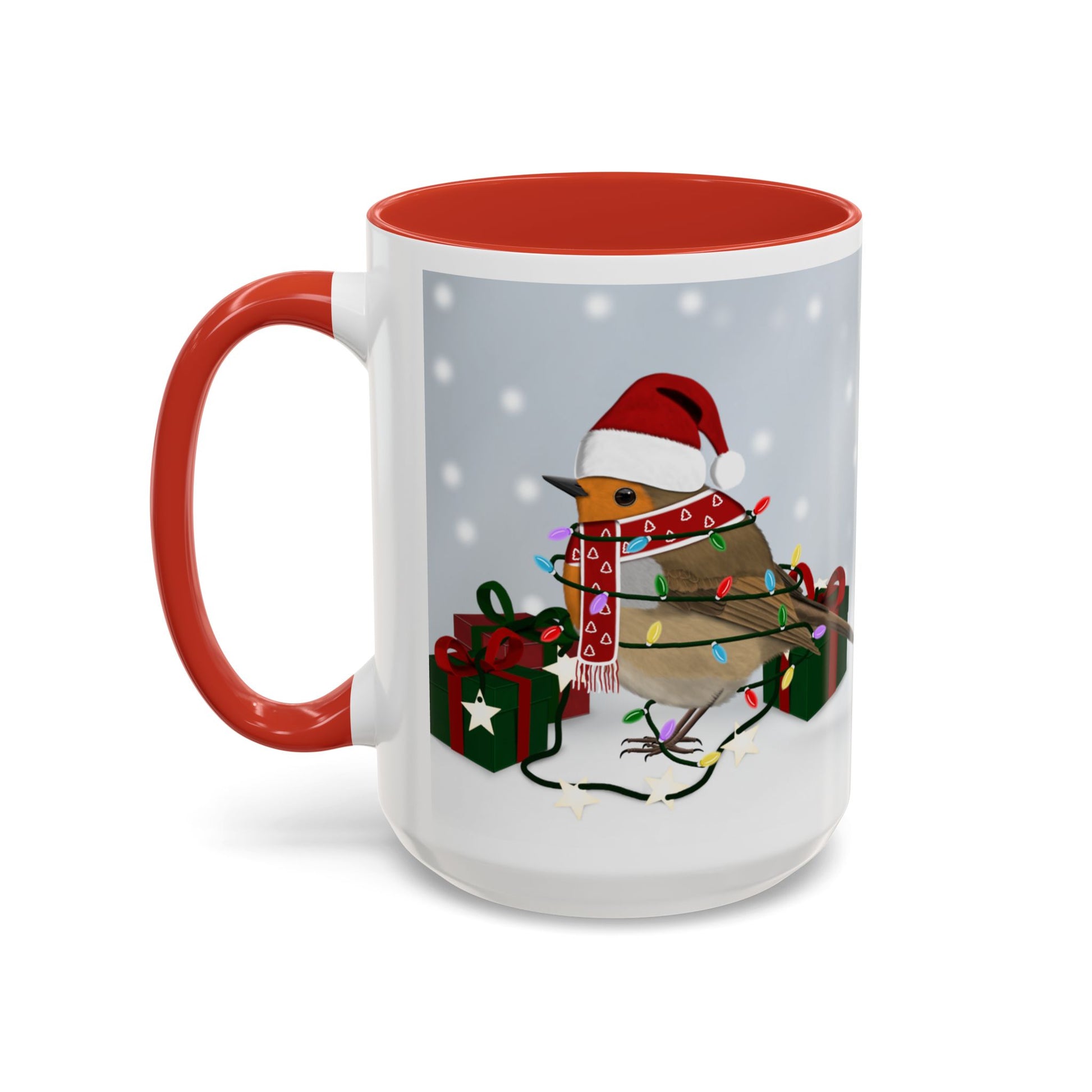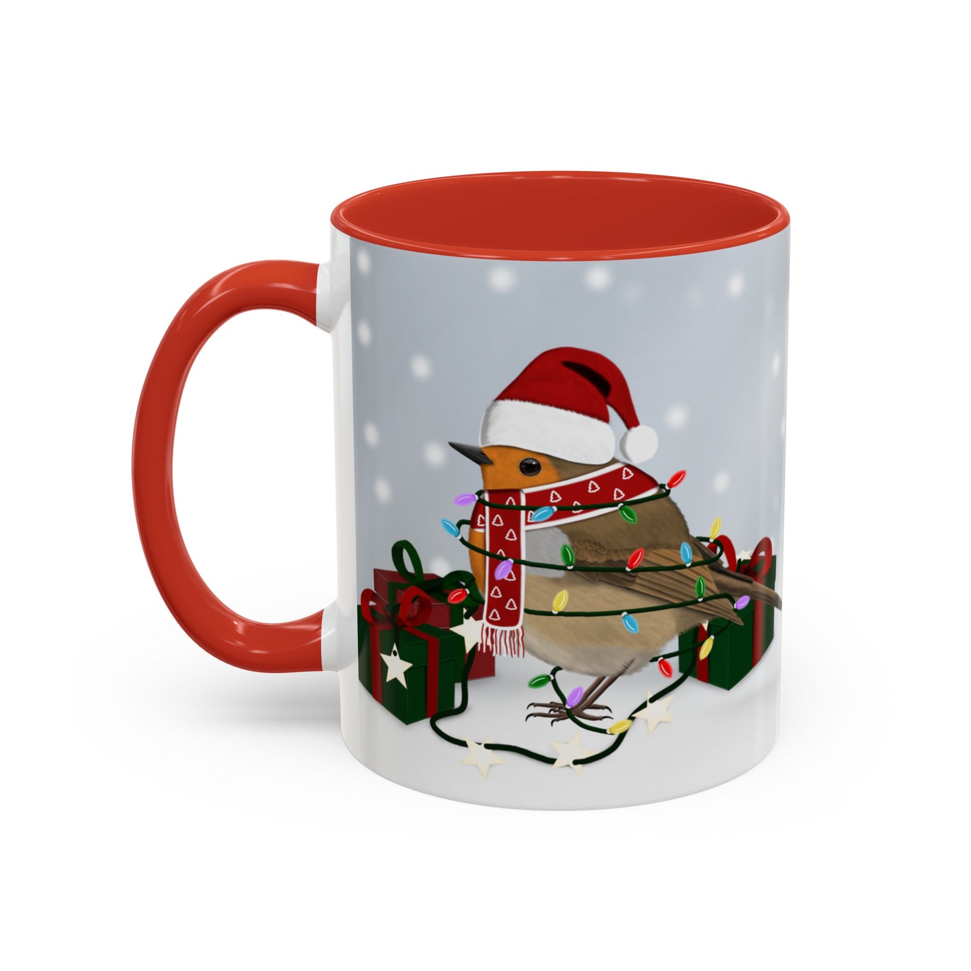 European Robin with Christmas Hat and Scarf Snow Bird Coffee Mug