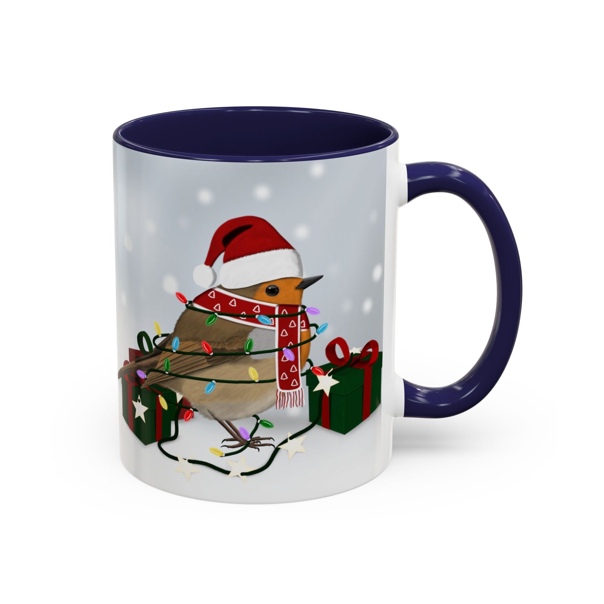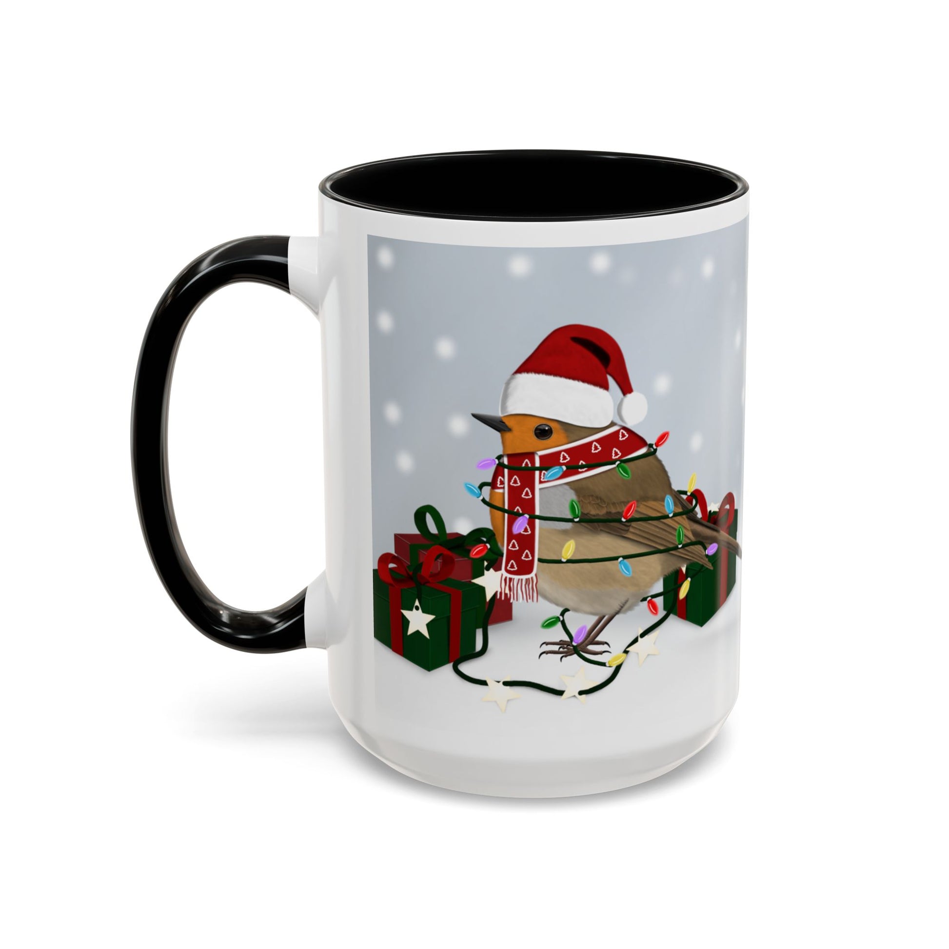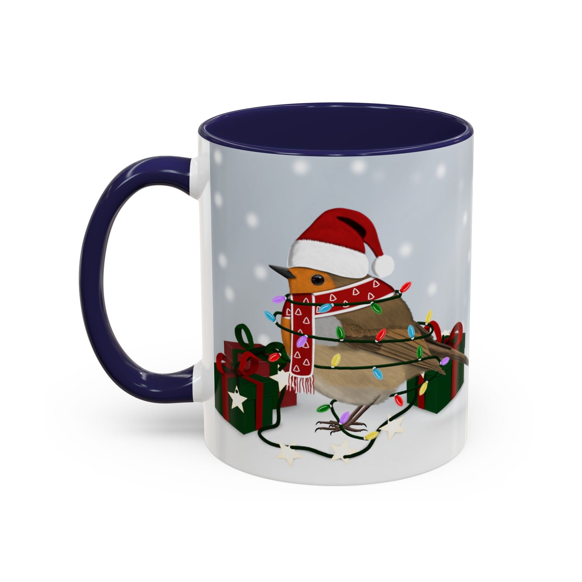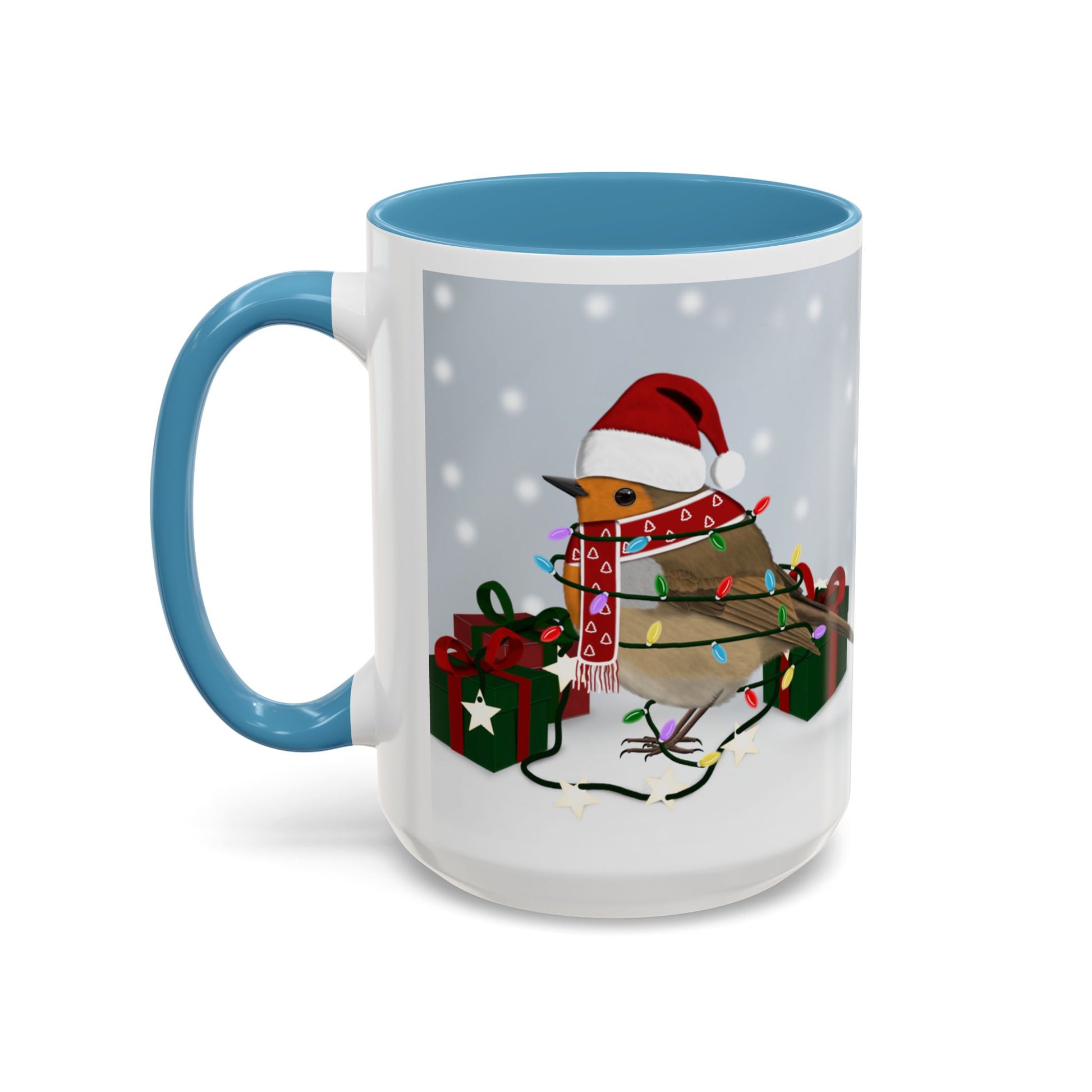 European Robin with Christmas Hat and Scarf Snow Bird Coffee Mug