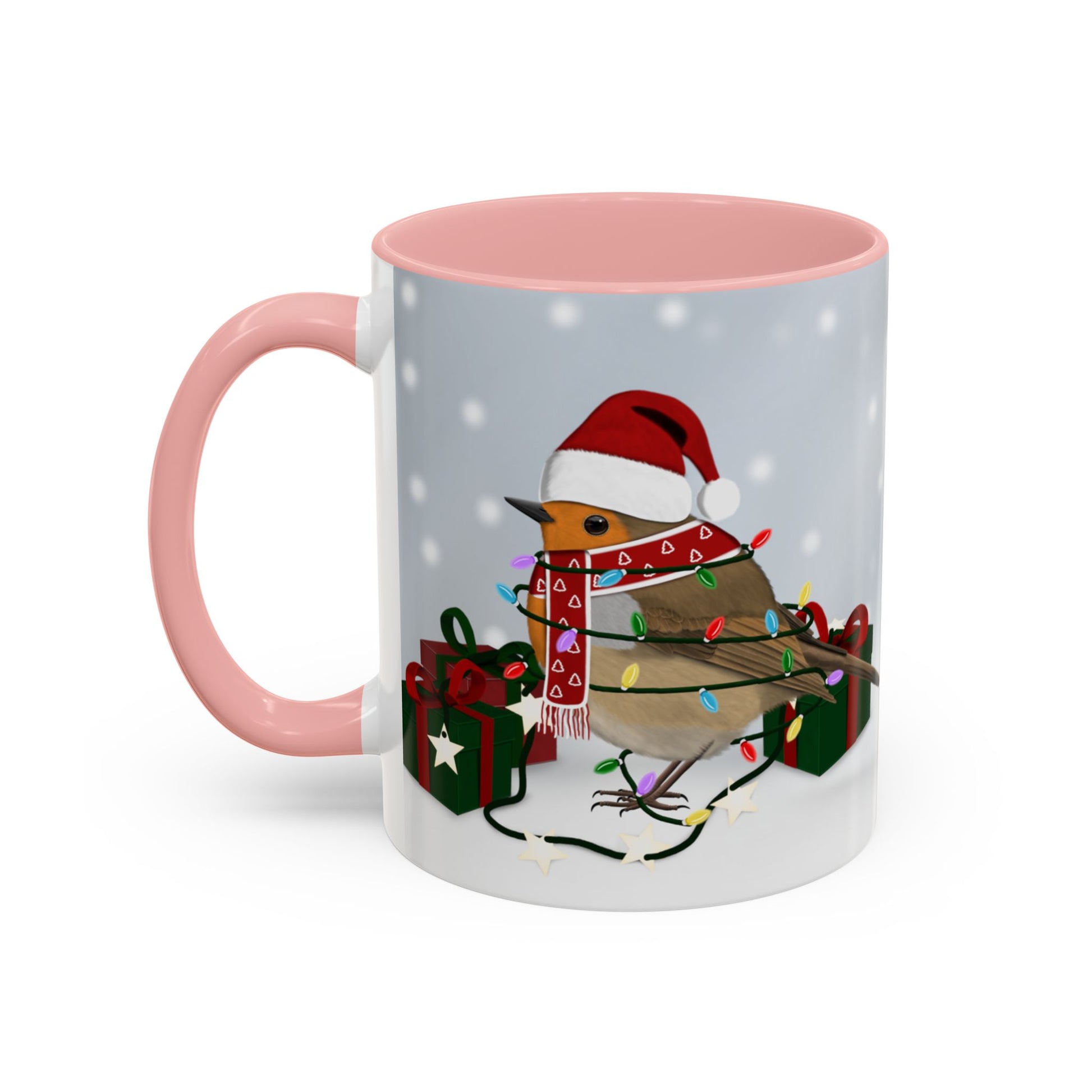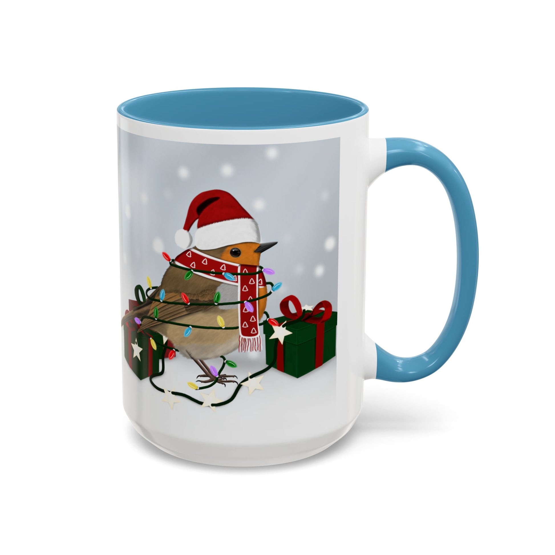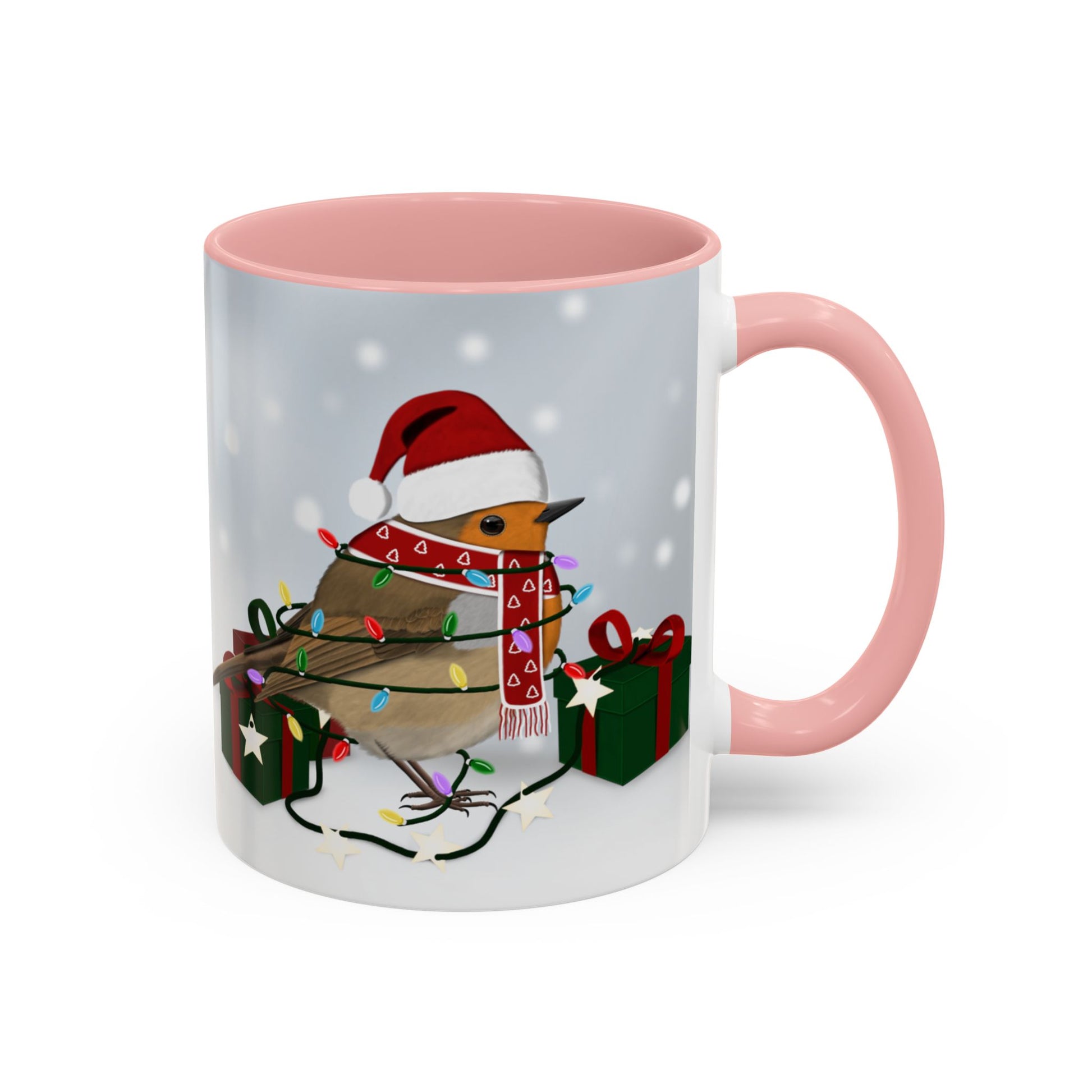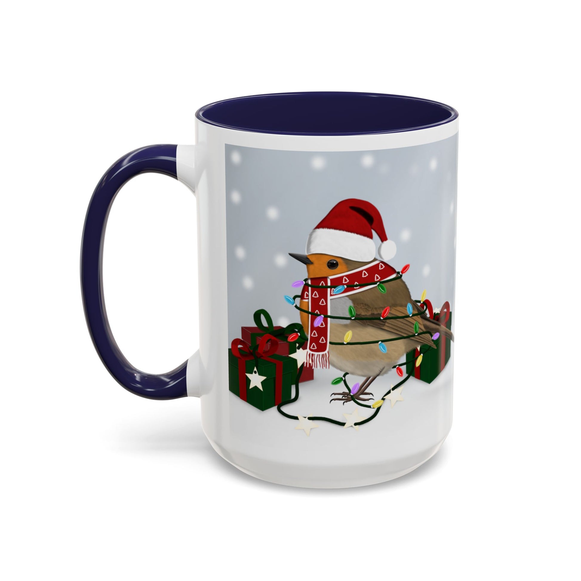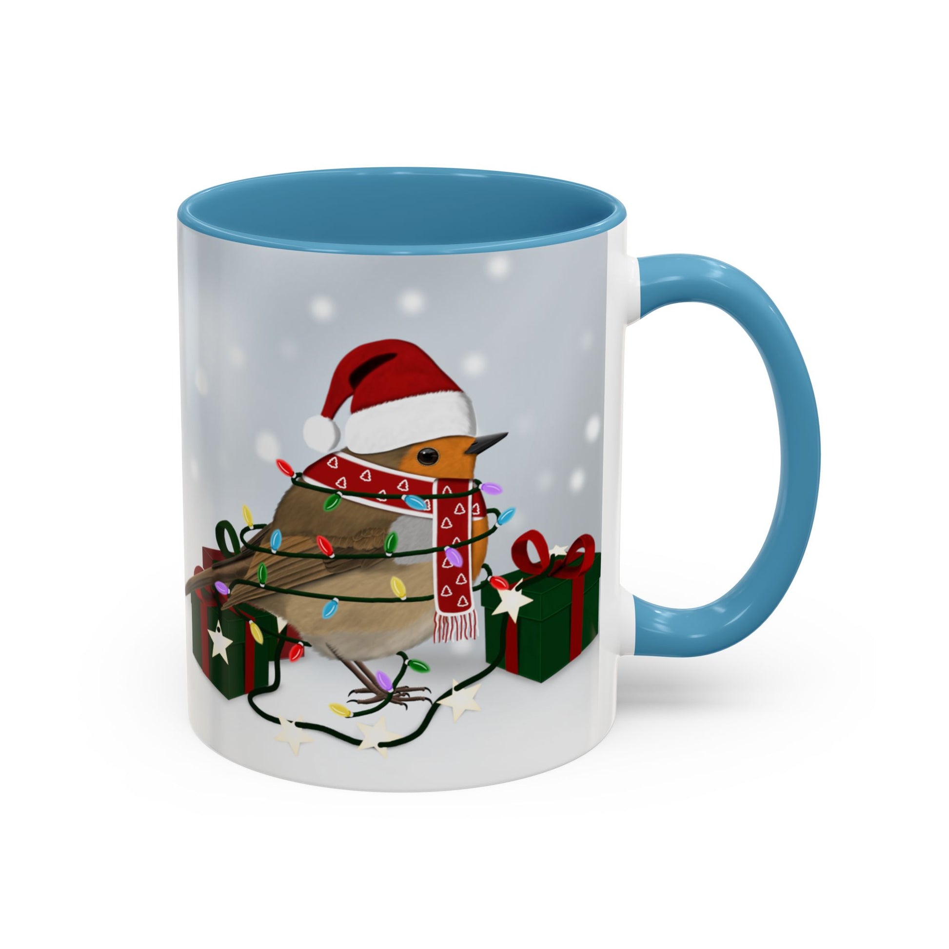 European Robin with Christmas Hat and Scarf Snow Bird Coffee Mug