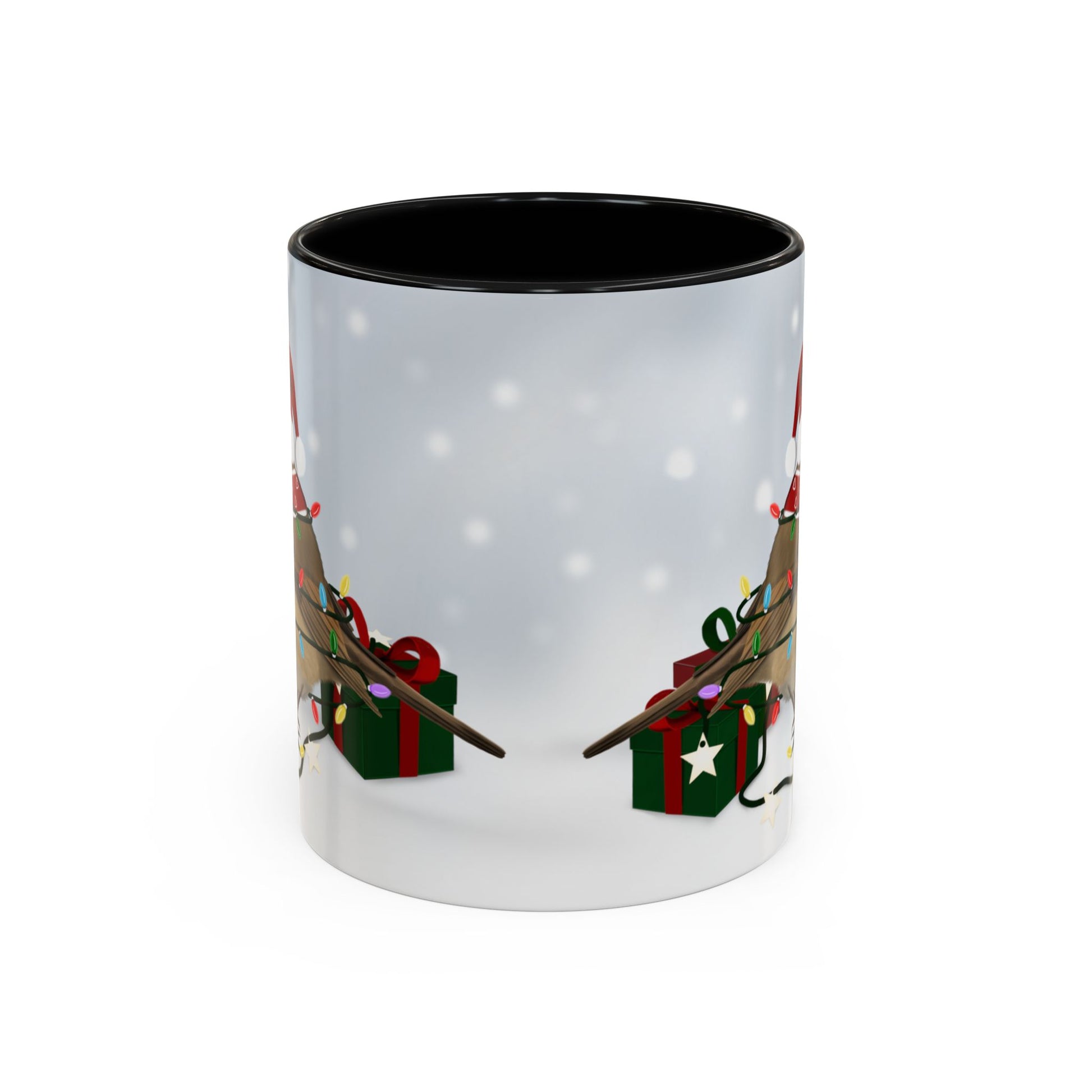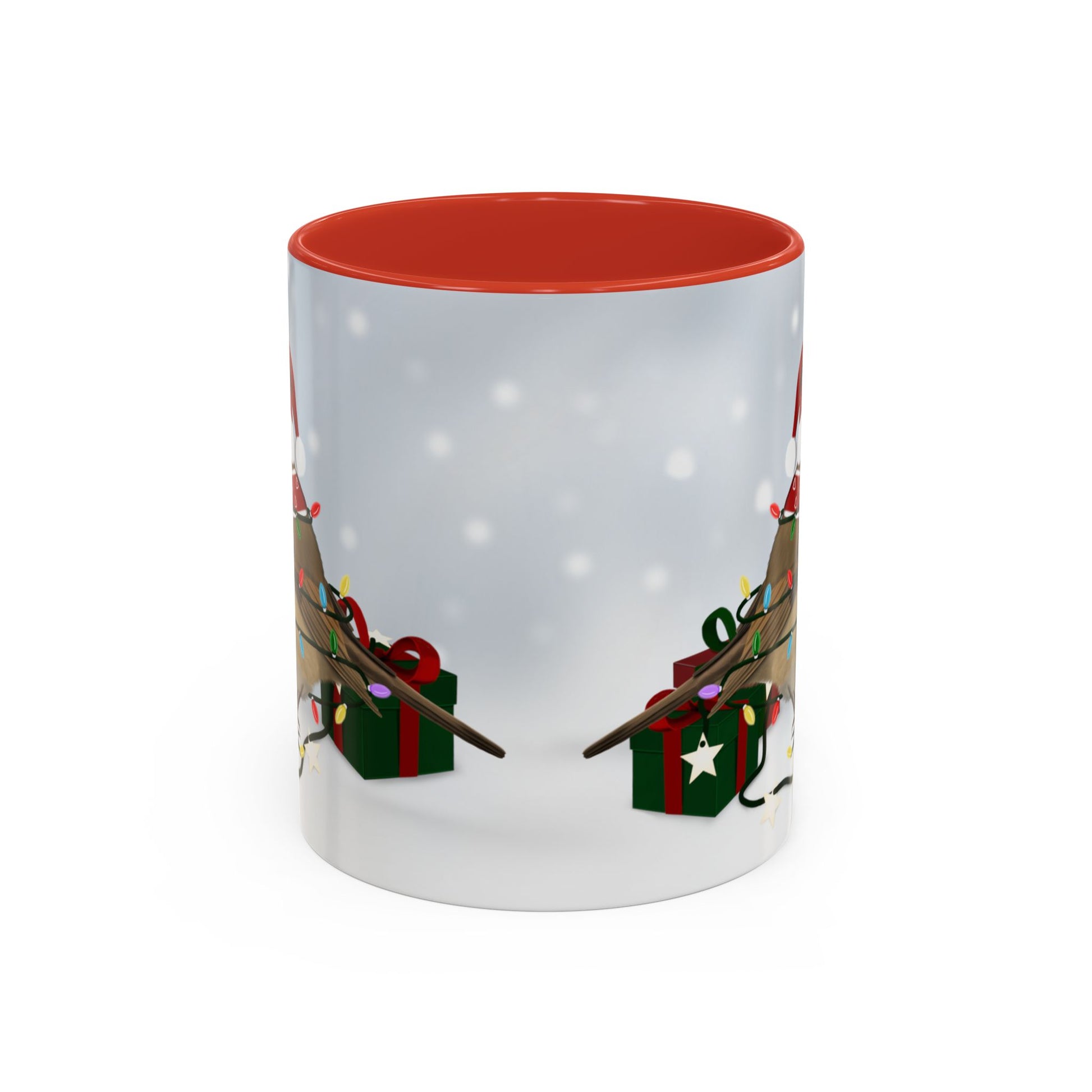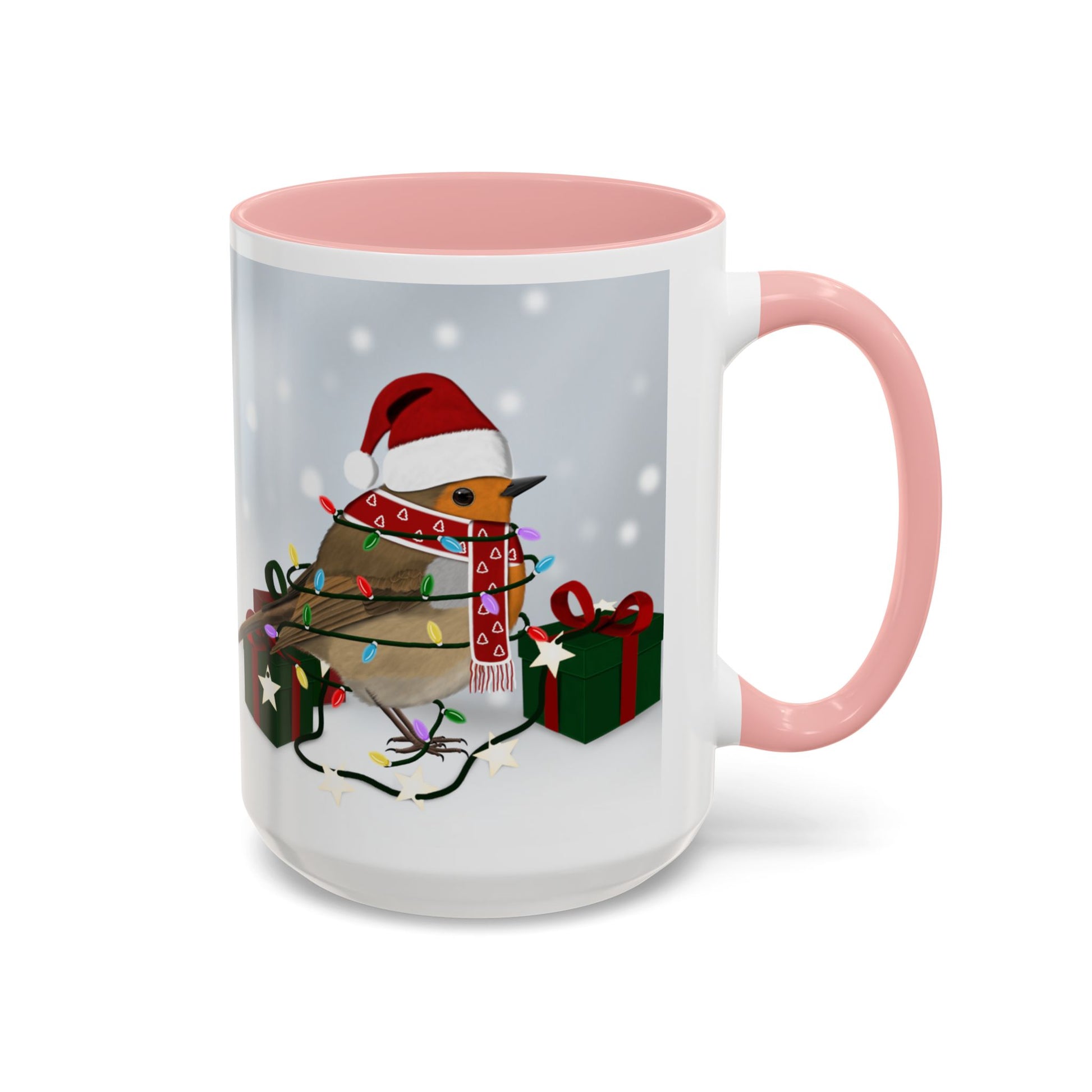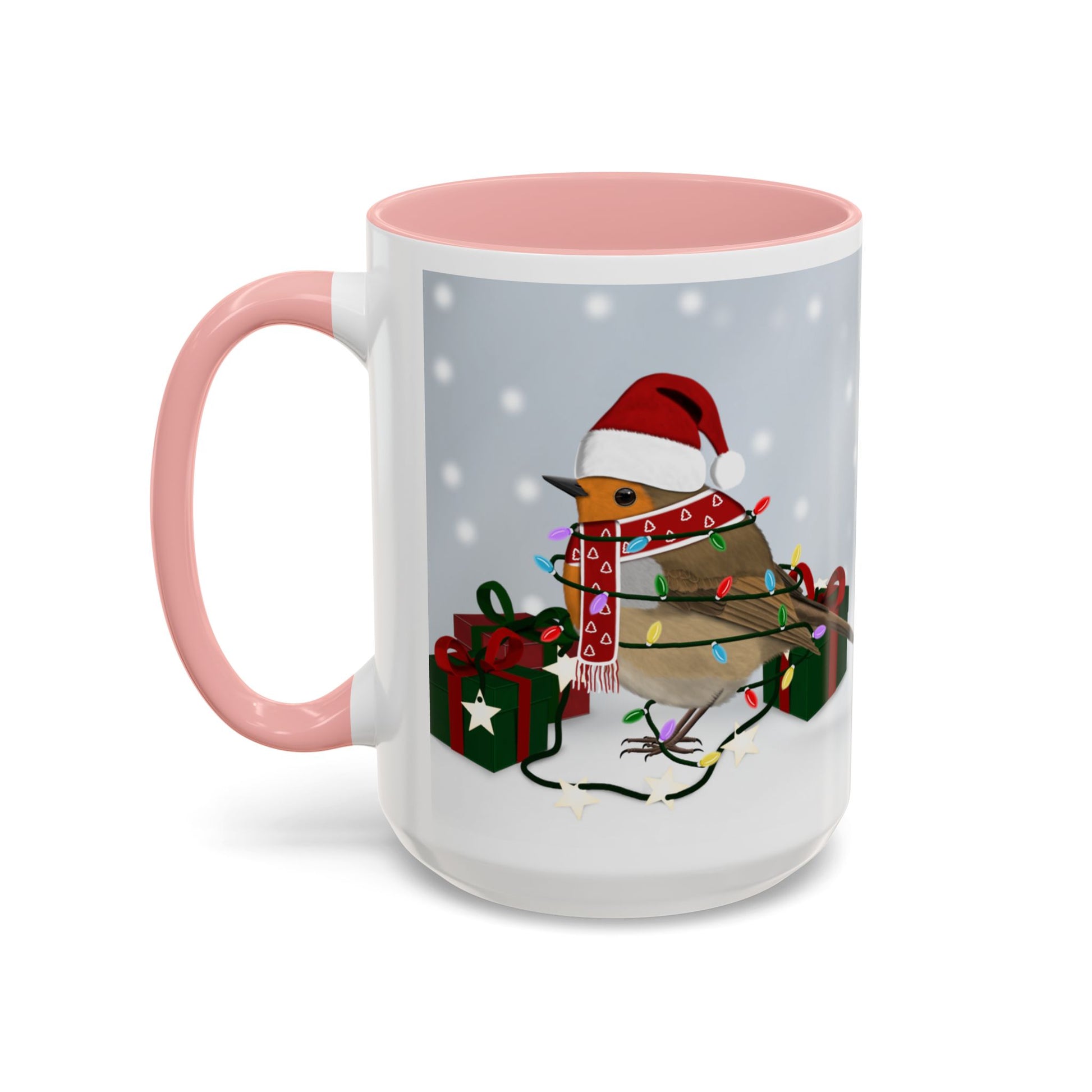 European Robin with Christmas Hat and Scarf Snow Bird Coffee Mug