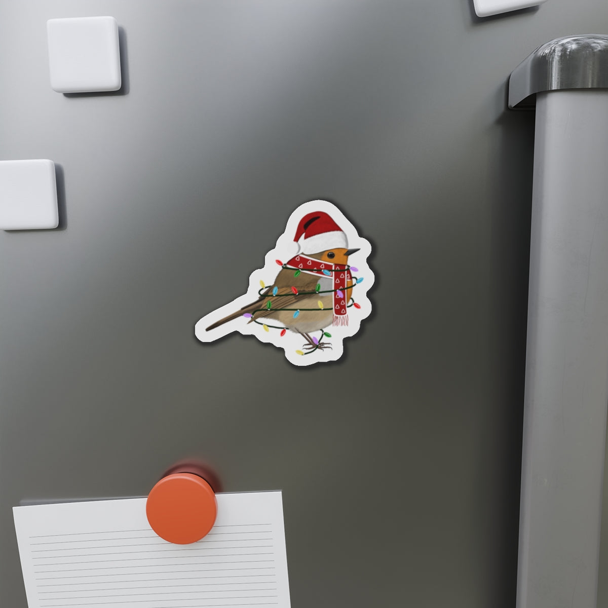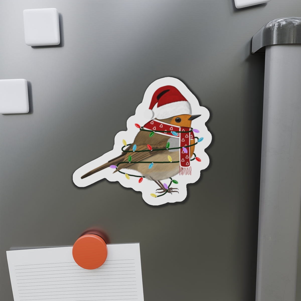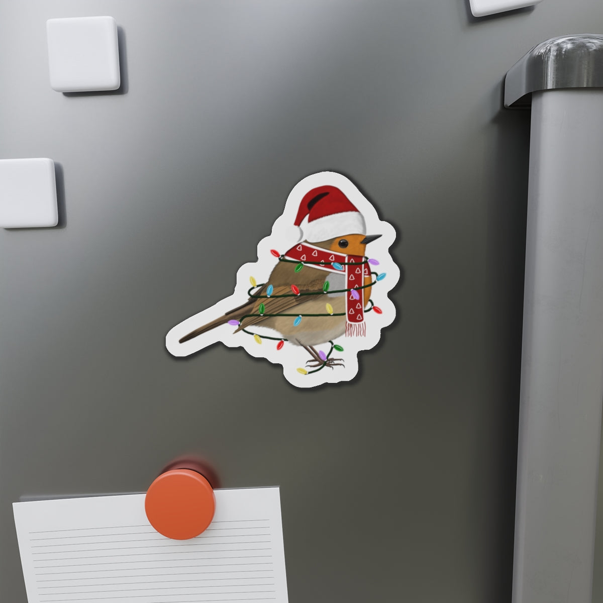 European Robin with Fairy Lights and Scarf Christmas Bird Magnet
