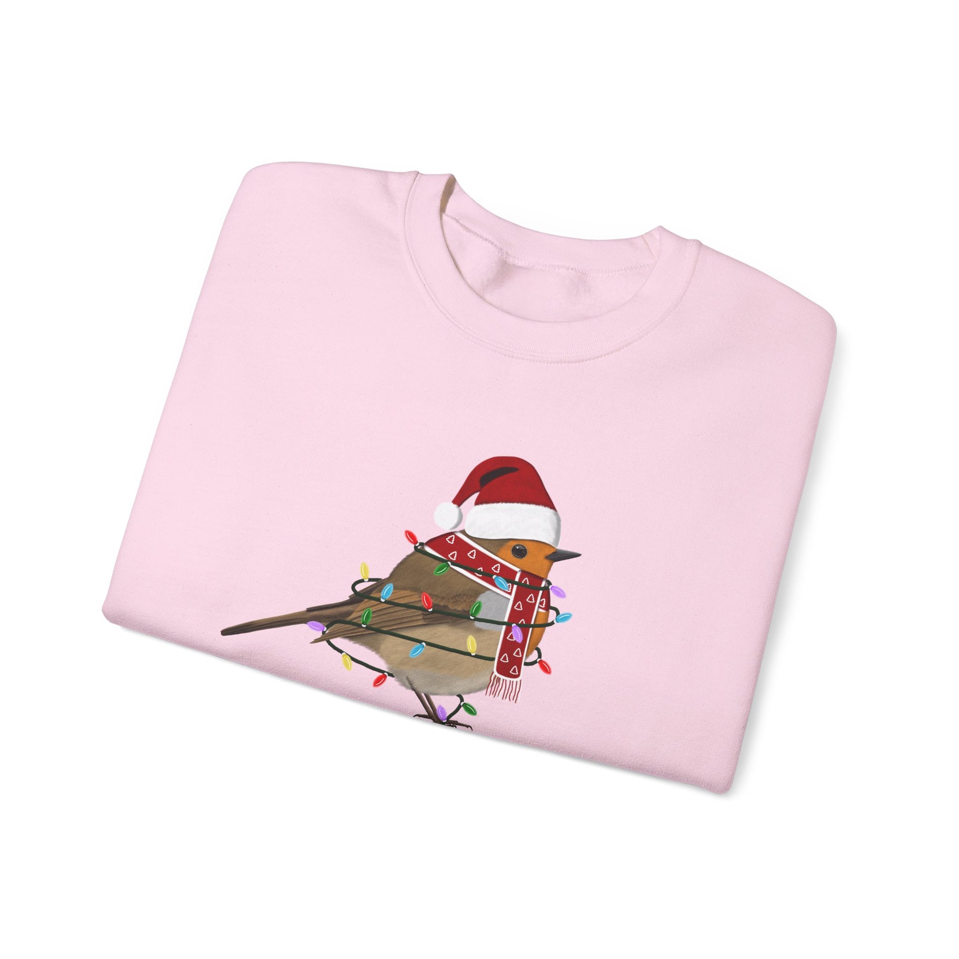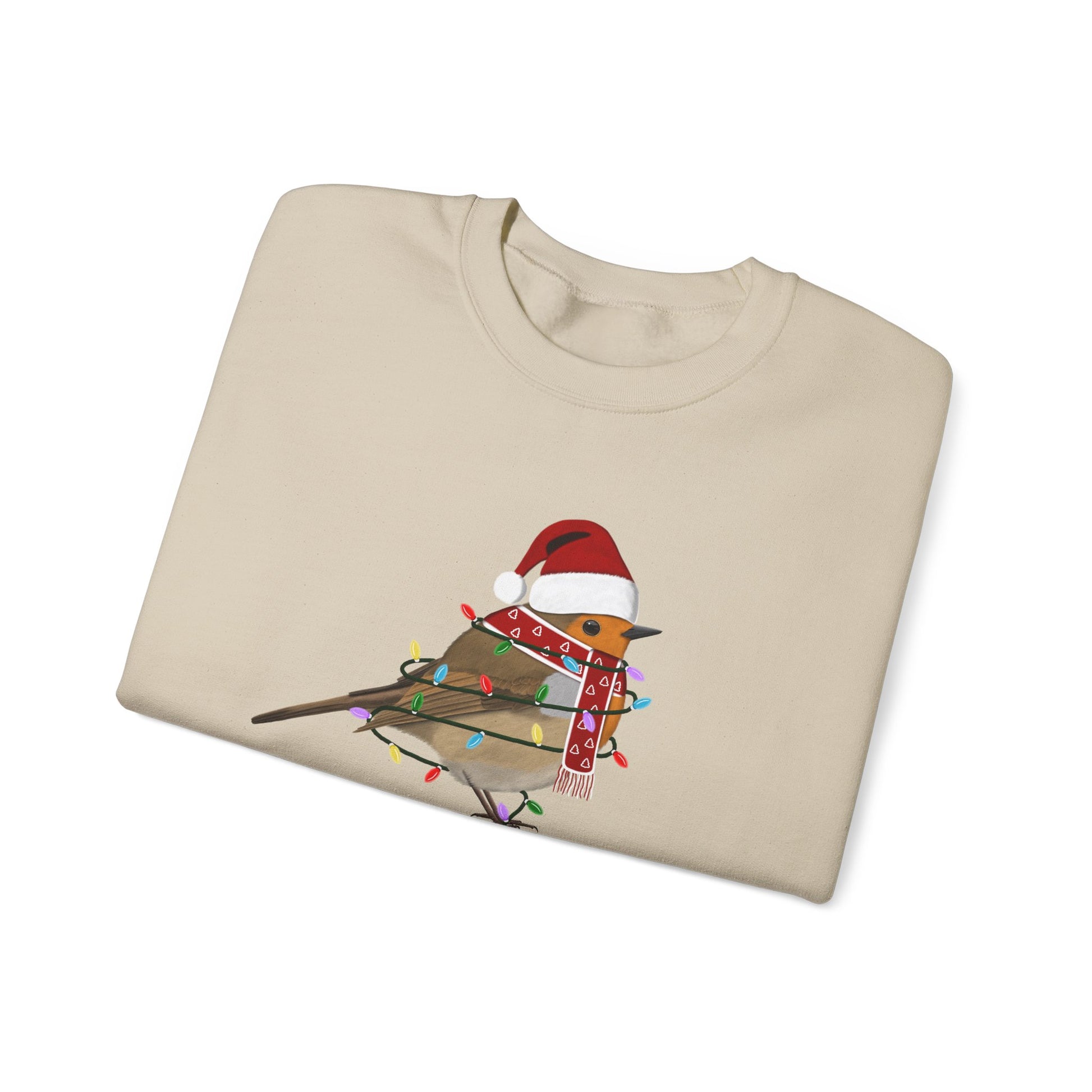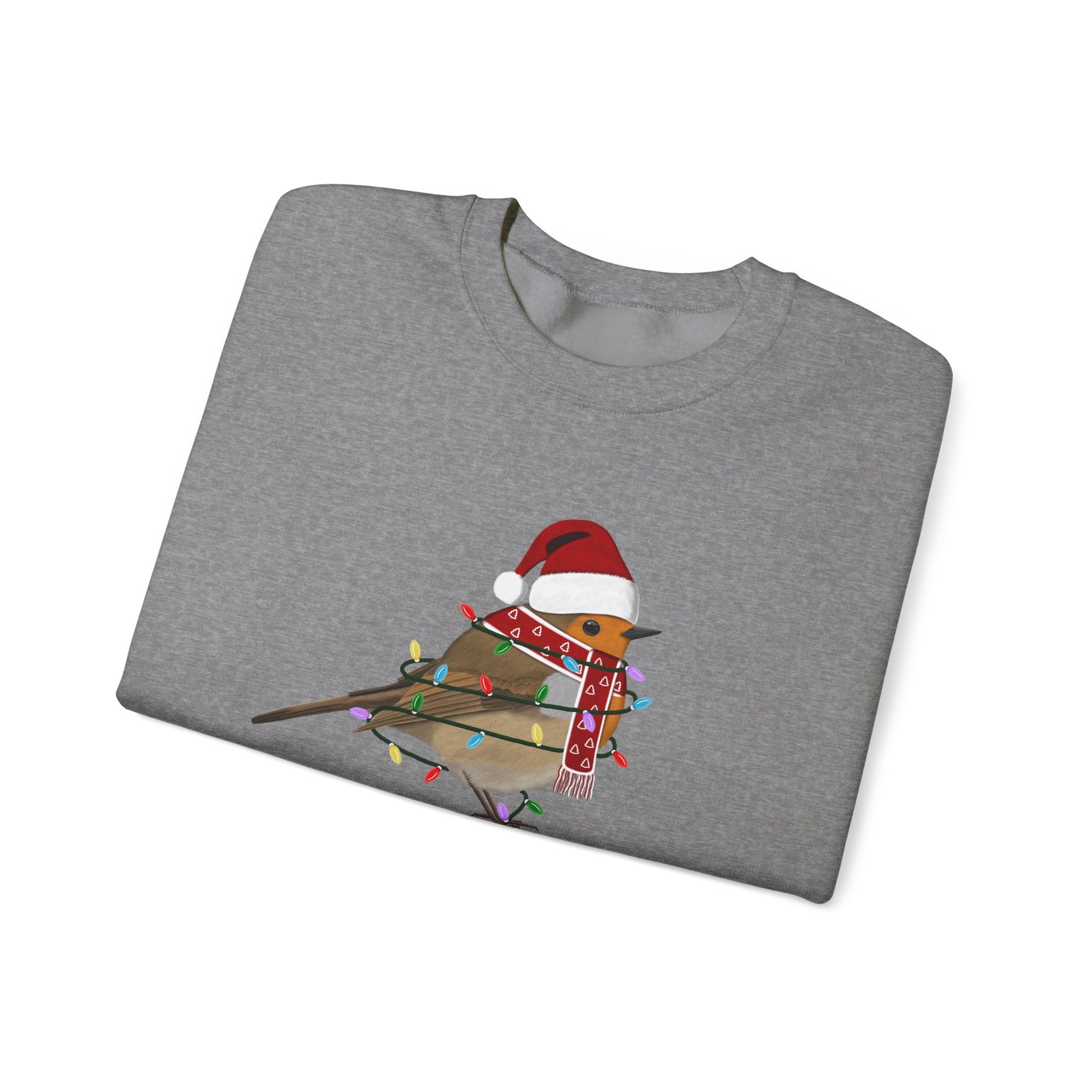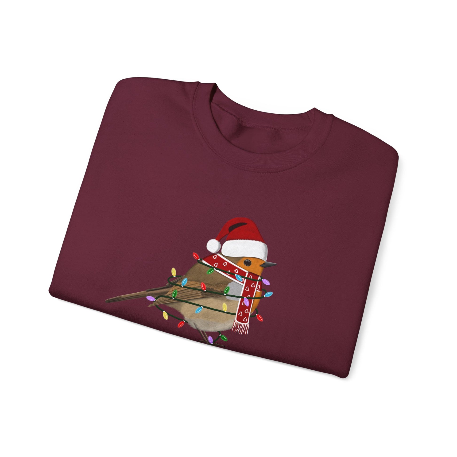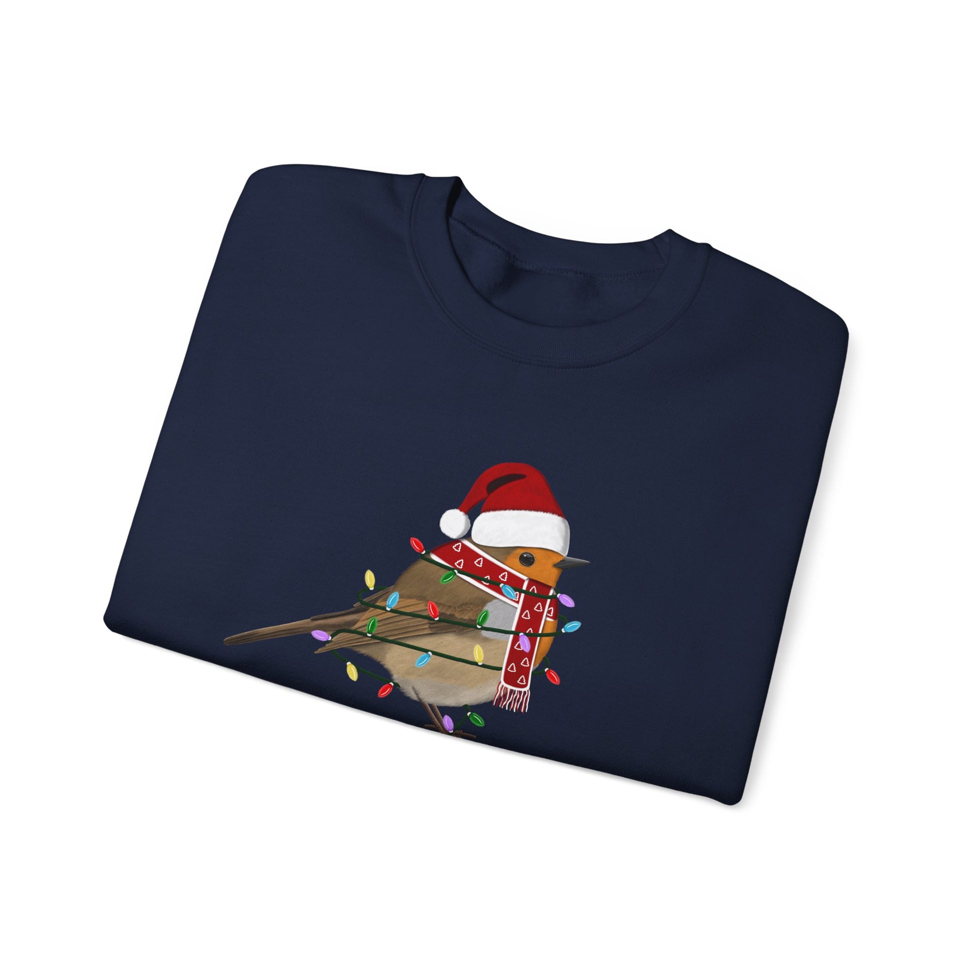 European Robin with Fairy Lights as Santa Happy Holidays Birdwatcher Christmas Bird Sweatshirt