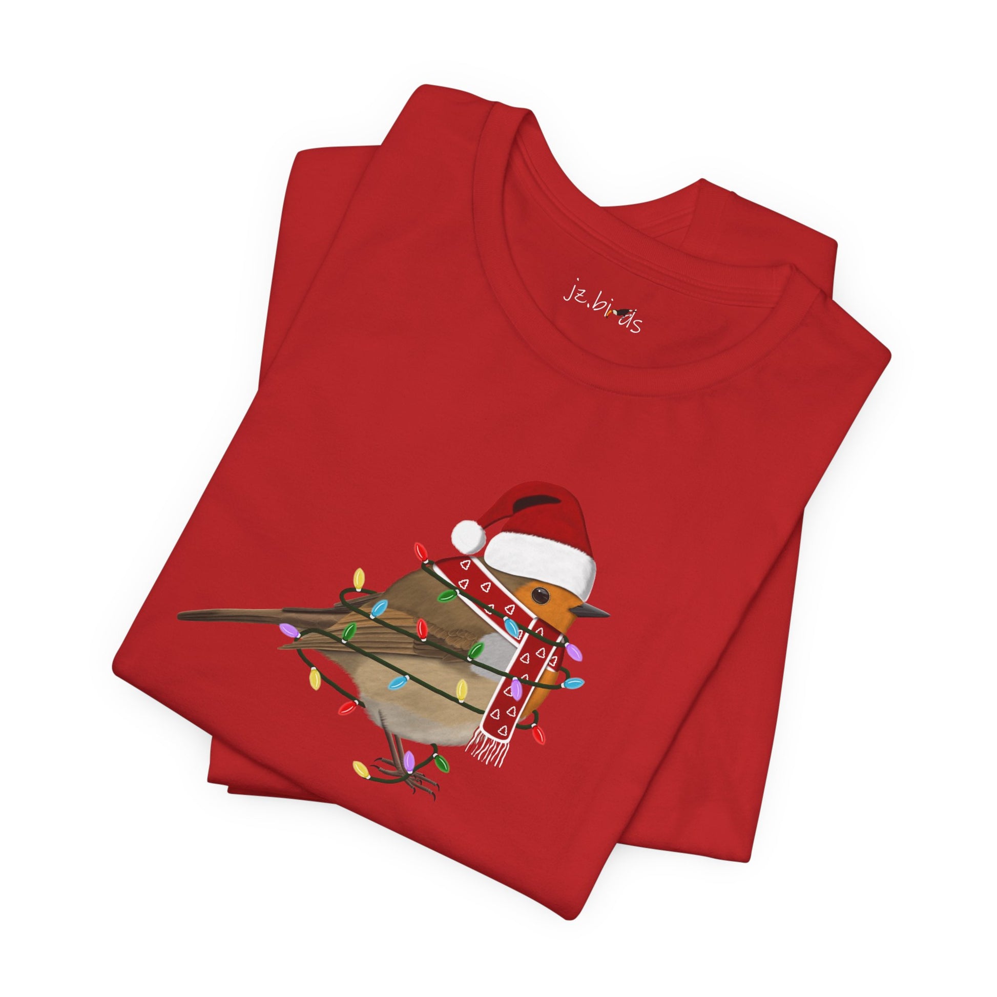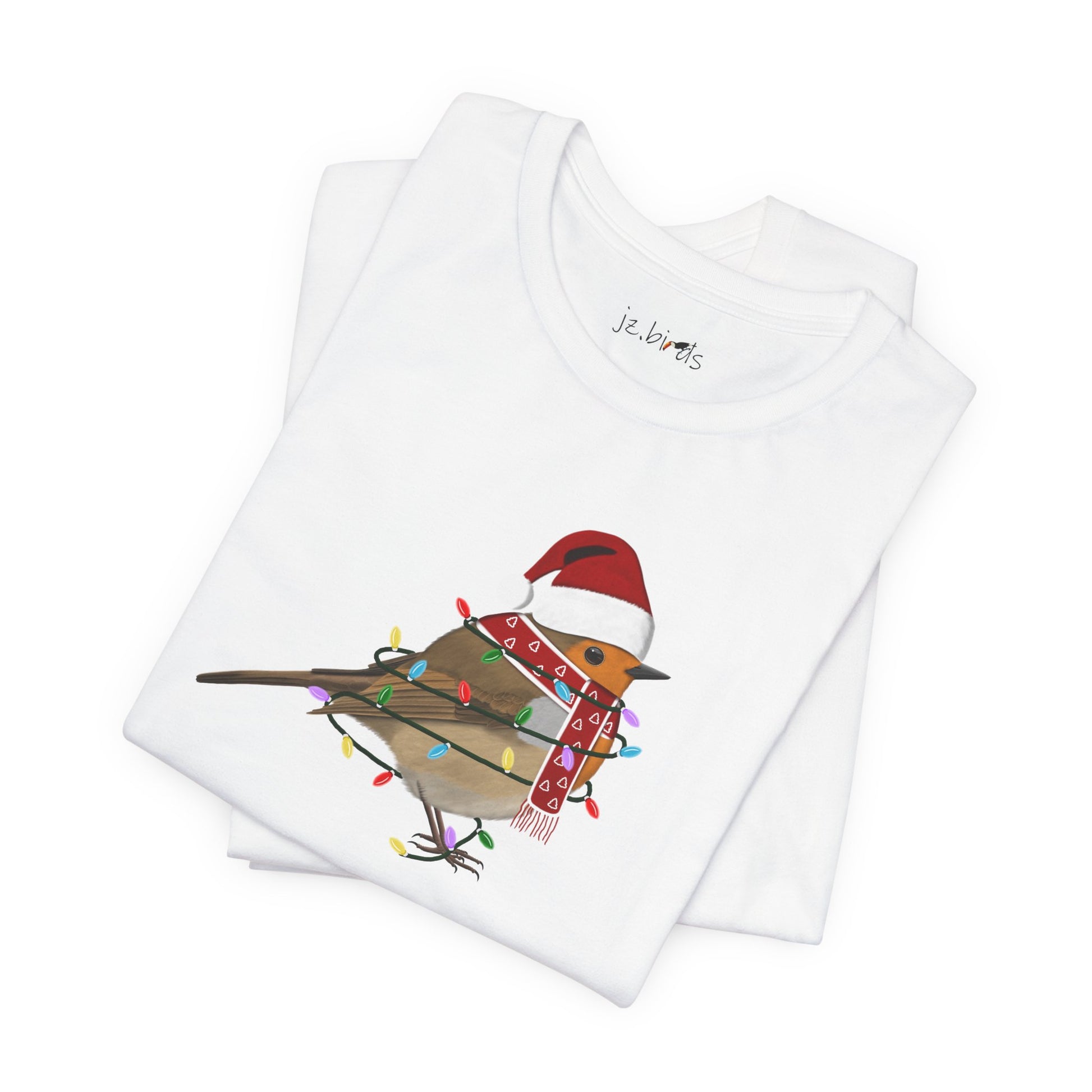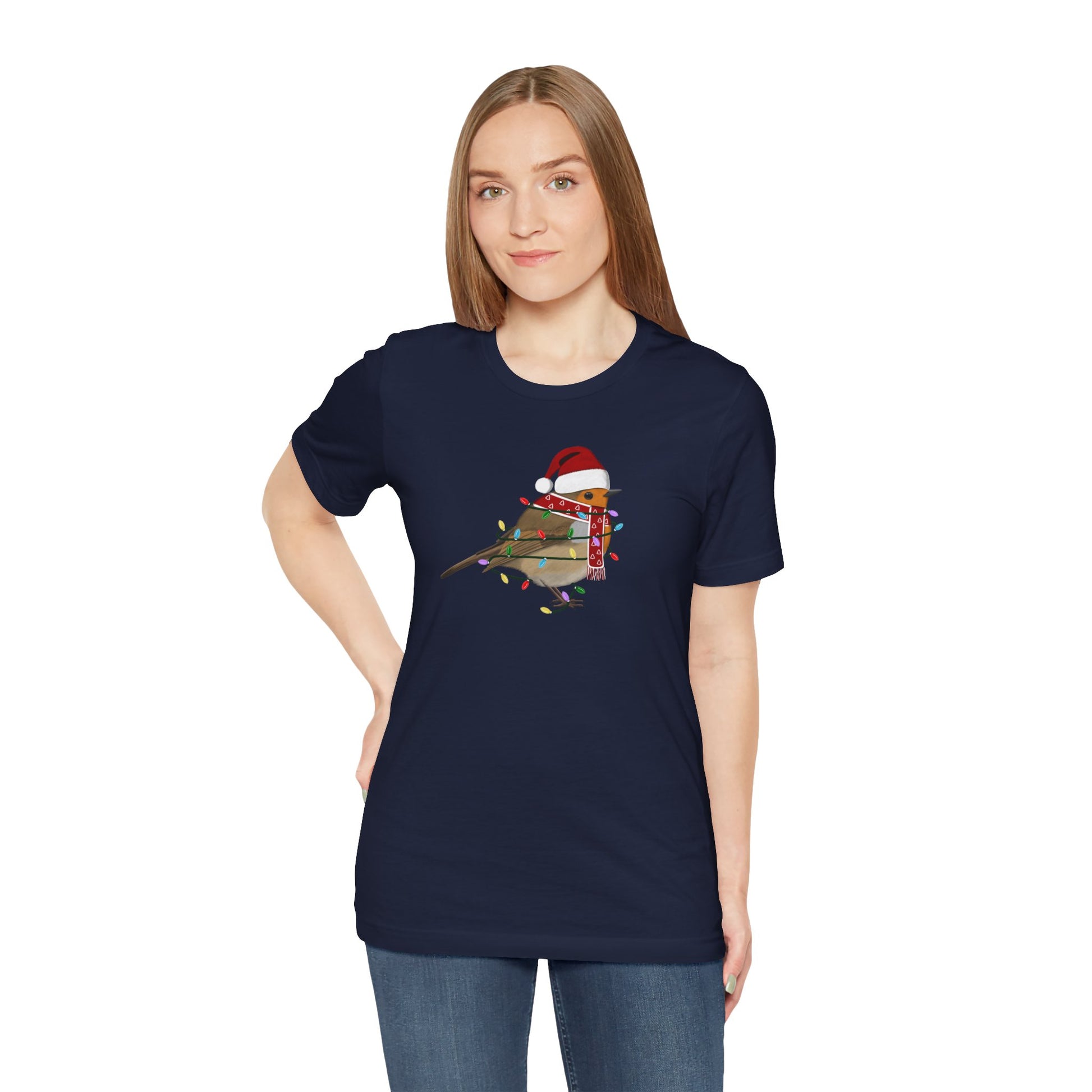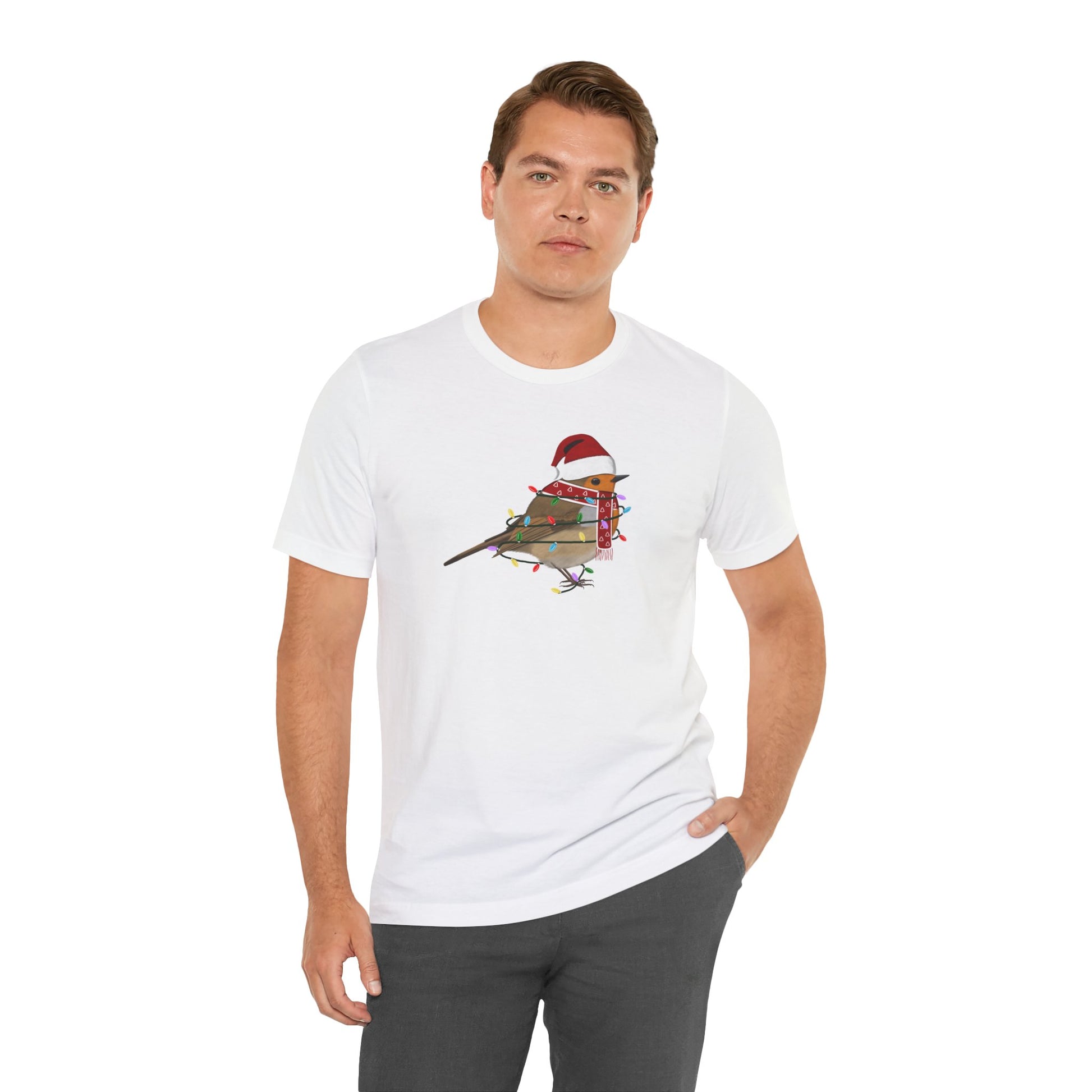 This European Robin with Fairy Lights Christmas bird t-shirt is a must-have for bird lovers. Featuring beautiful bird artwork, it's the perfect addition to any nature enthusiast's Christmas wardrobe. Made of high-quality material, this shirt is both comfortable and stylish. Show your love for birds and stand out in any crowd with this unique and eye-catching Christmas t-shirt.