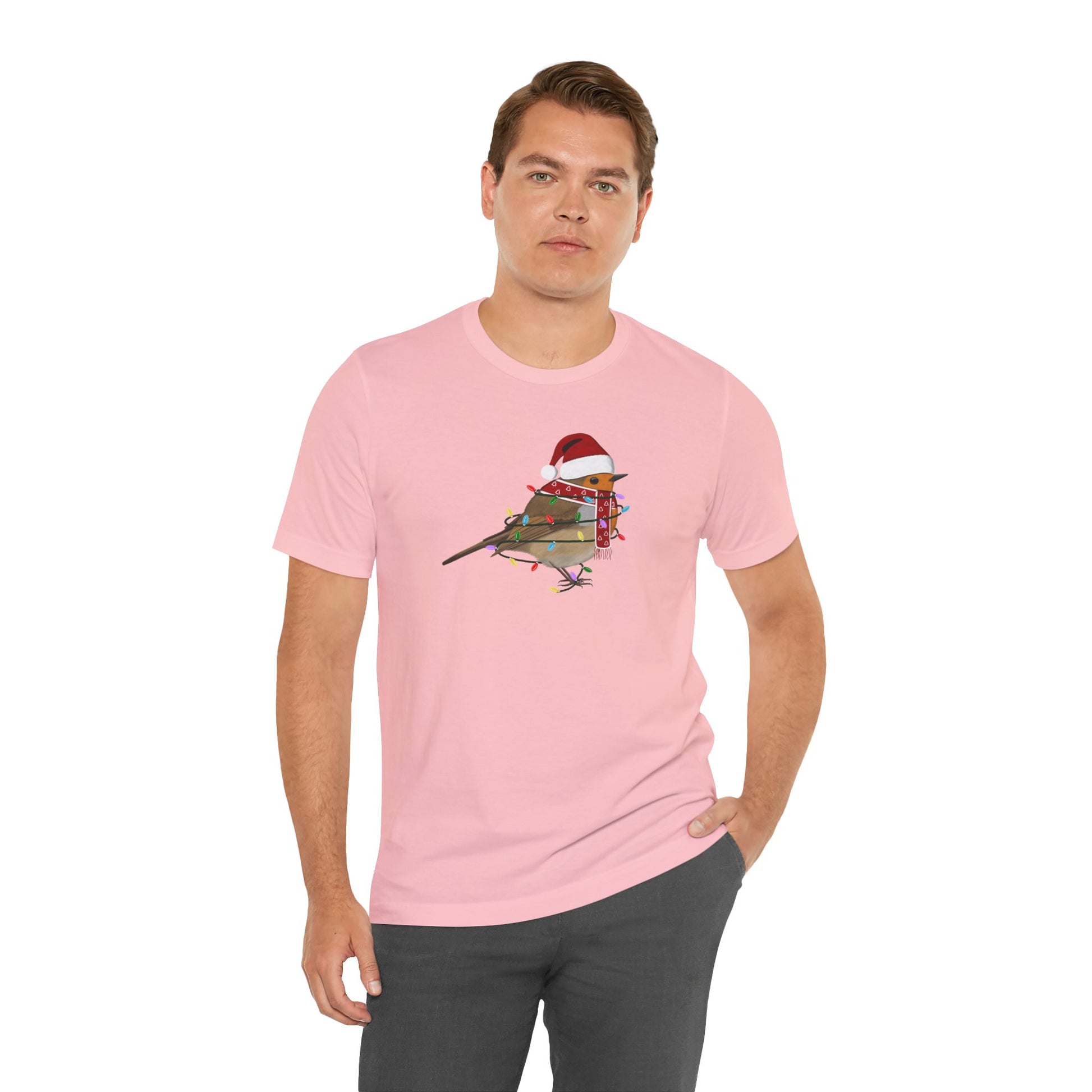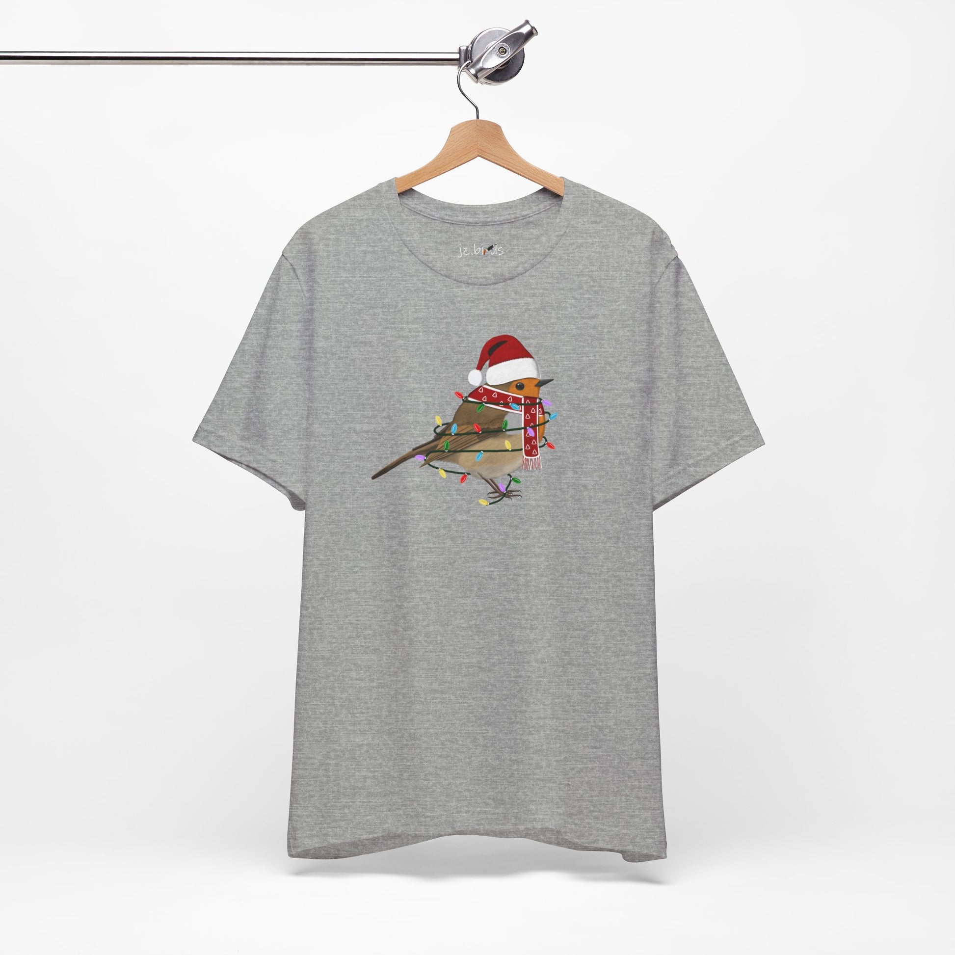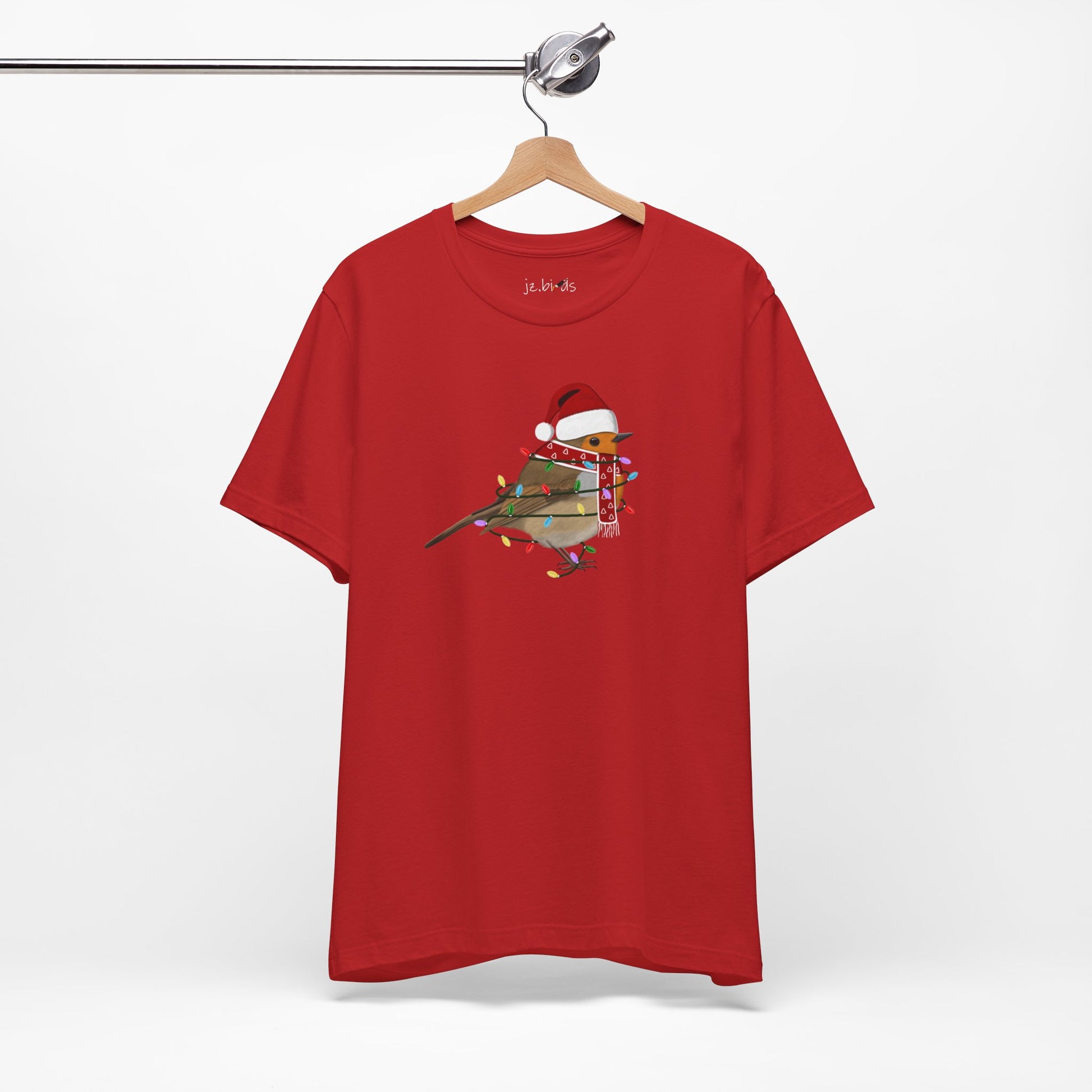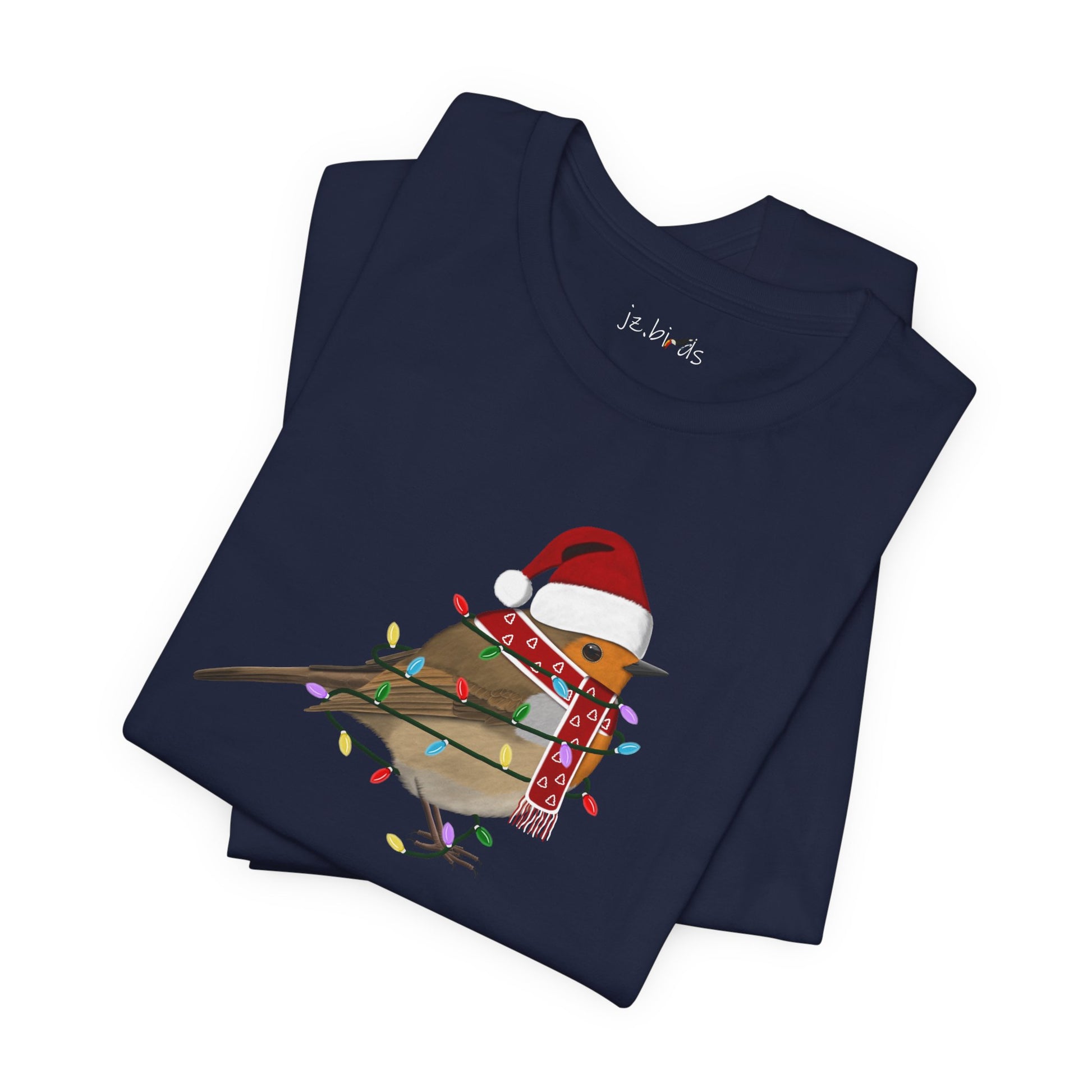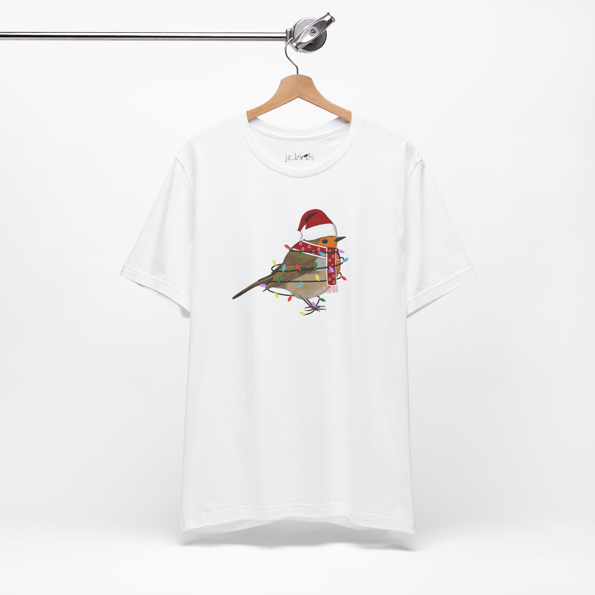 This European Robin with Fairy Lights Christmas bird t-shirt is a must-have for bird lovers. Featuring beautiful bird artwork, it's the perfect addition to any nature enthusiast's Christmas wardrobe. Made of high-quality material, this shirt is both comfortable and stylish. Show your love for birds and stand out in any crowd with this unique and eye-catching Christmas t-shirt.