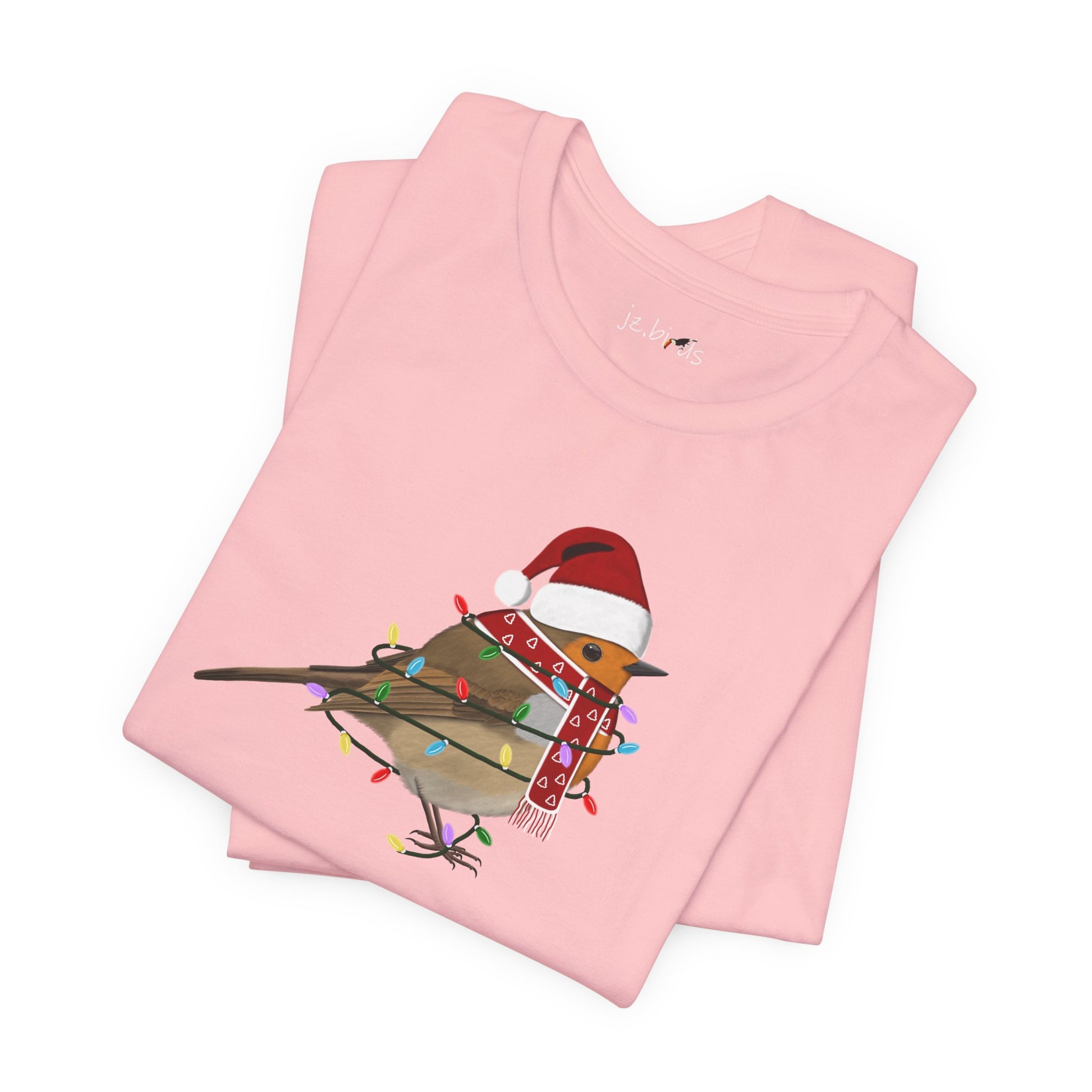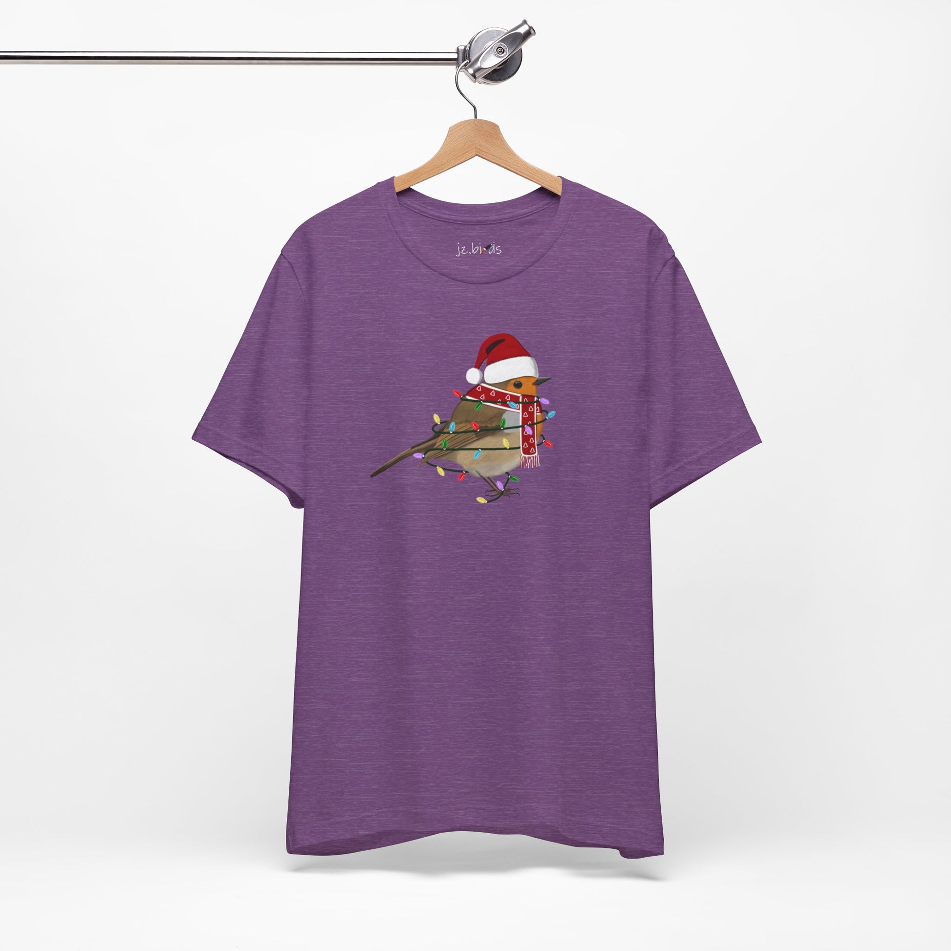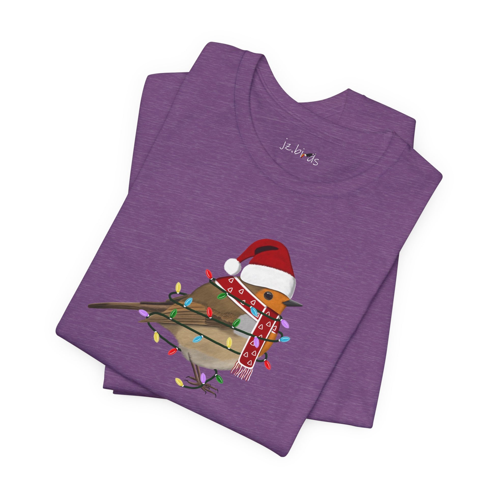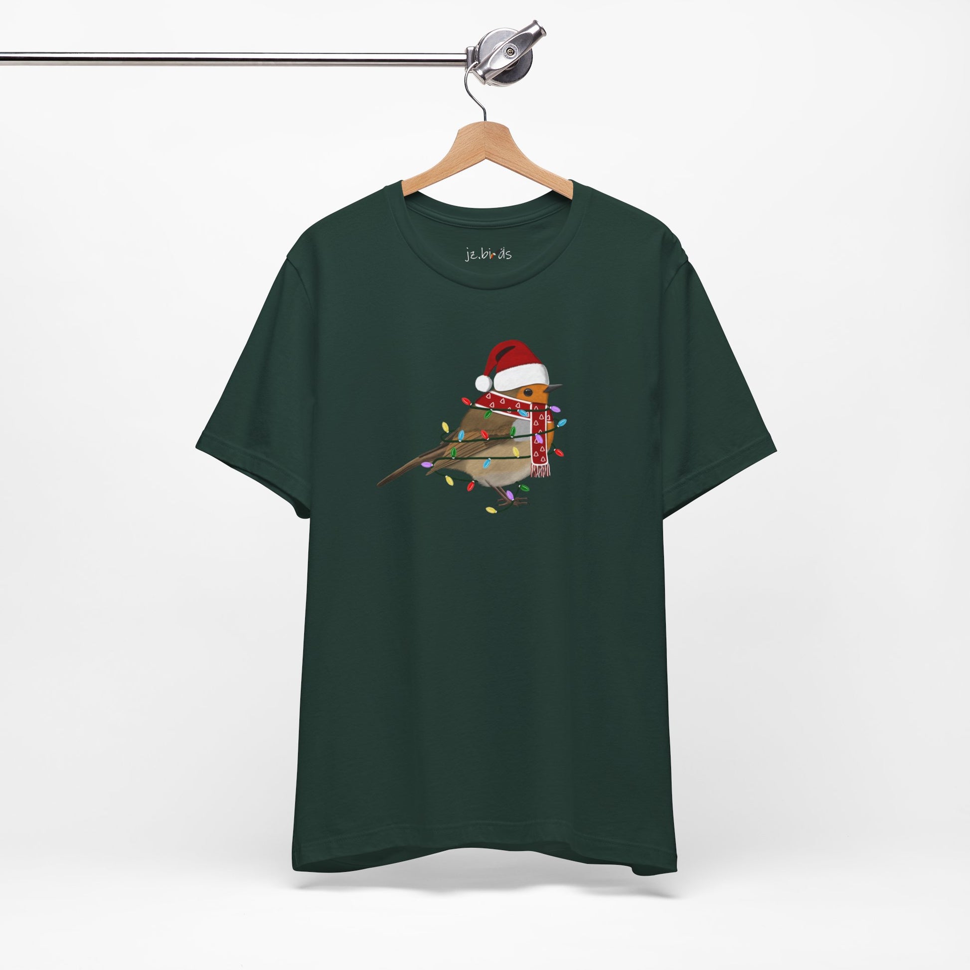 This European Robin with Fairy Lights Christmas bird t-shirt is a must-have for bird lovers. Featuring beautiful bird artwork, it's the perfect addition to any nature enthusiast's Christmas wardrobe. Made of high-quality material, this shirt is both comfortable and stylish. Show your love for birds and stand out in any crowd with this unique and eye-catching Christmas t-shirt.