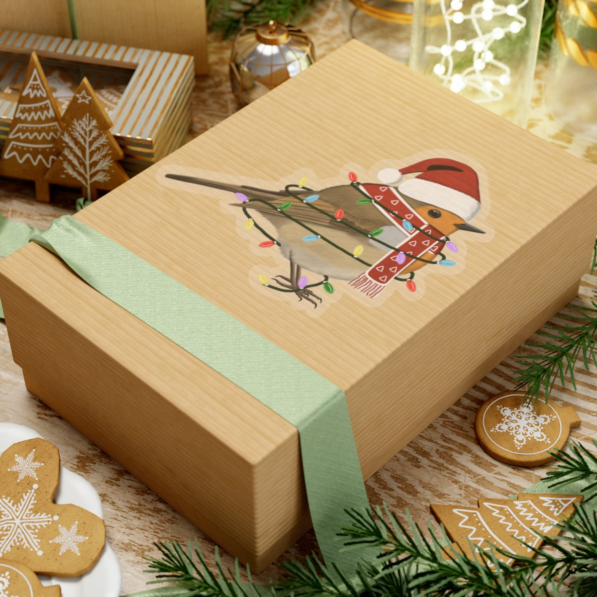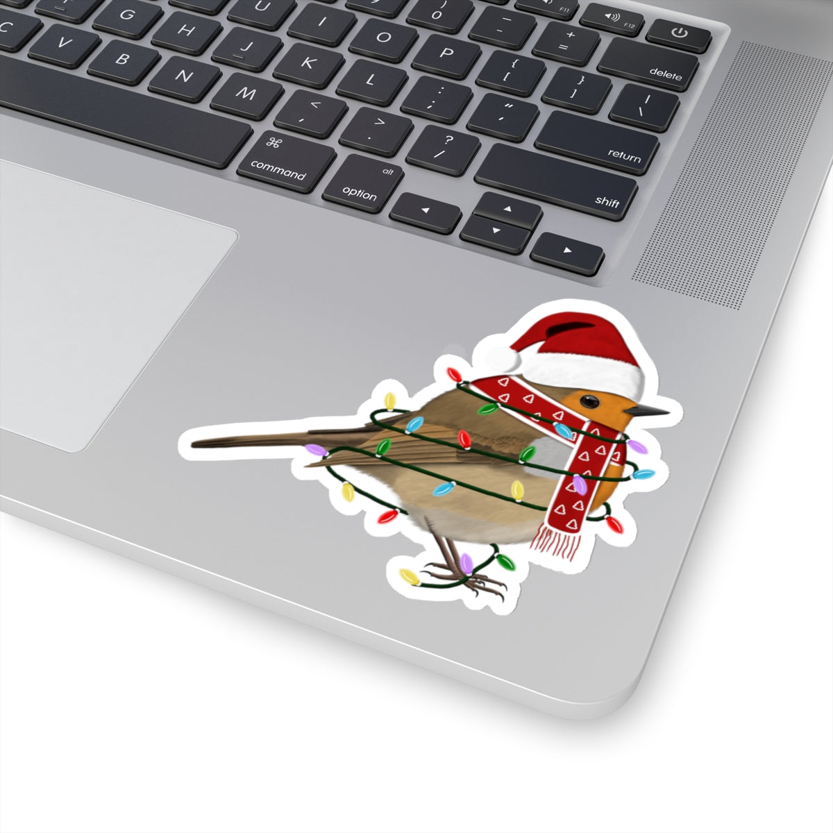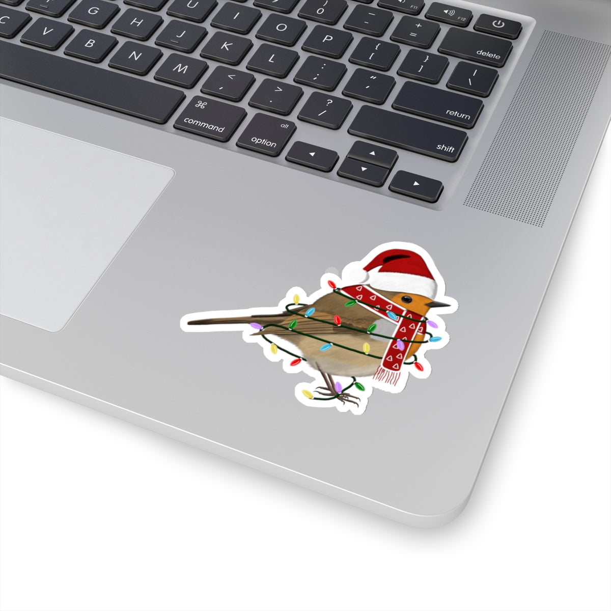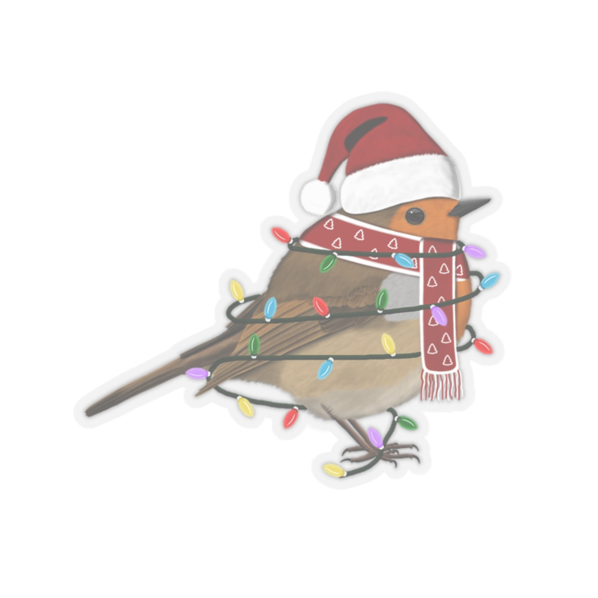Take your birdwatching to the next level with our Christmas Bird Sticker! Featuring a festive European Robin with fairy lights bird wearing a Santa Claus hat and scarf, this unique sticker is perfect for any bird enthusiast. Add it to your collection or give it as a gift to spread holiday cheer.