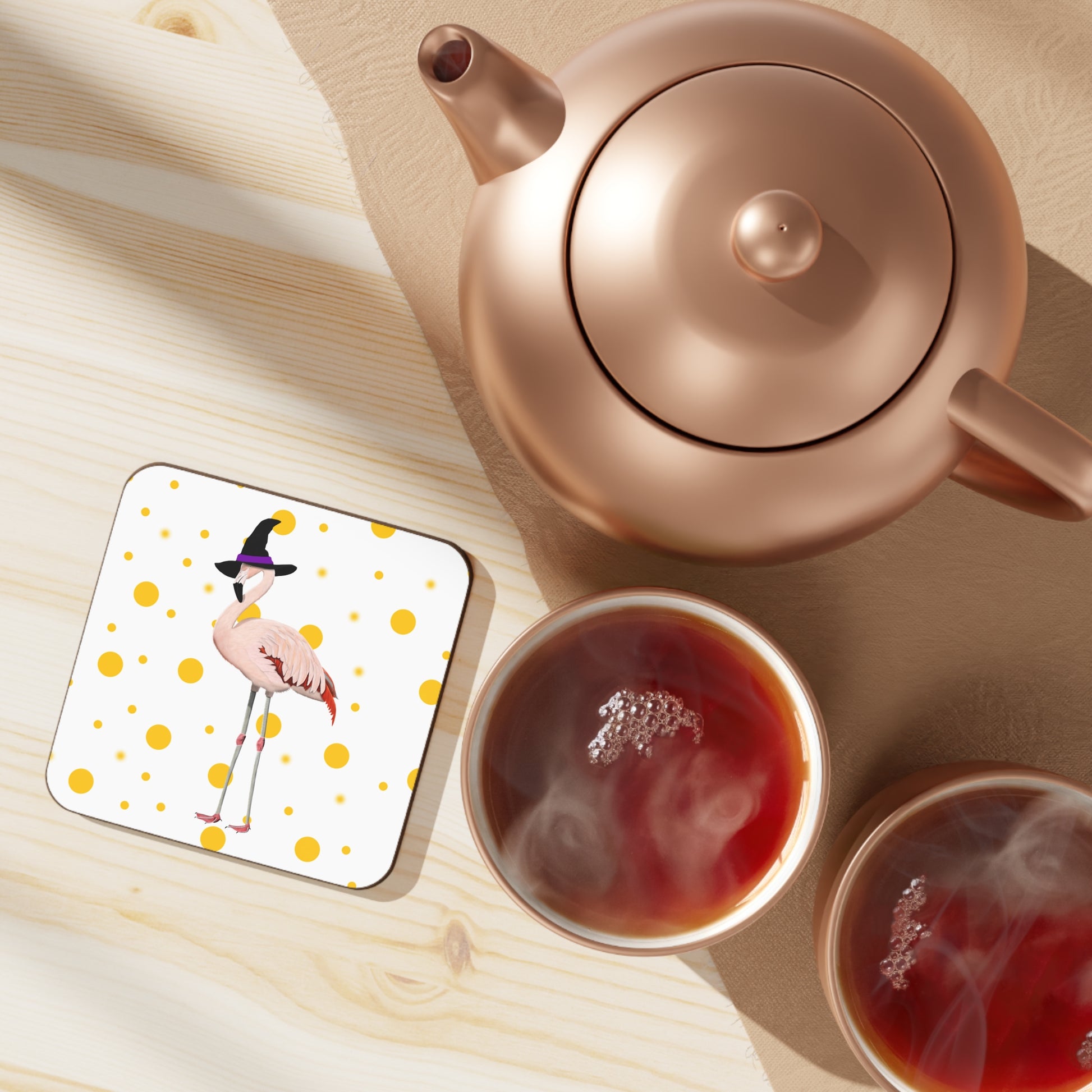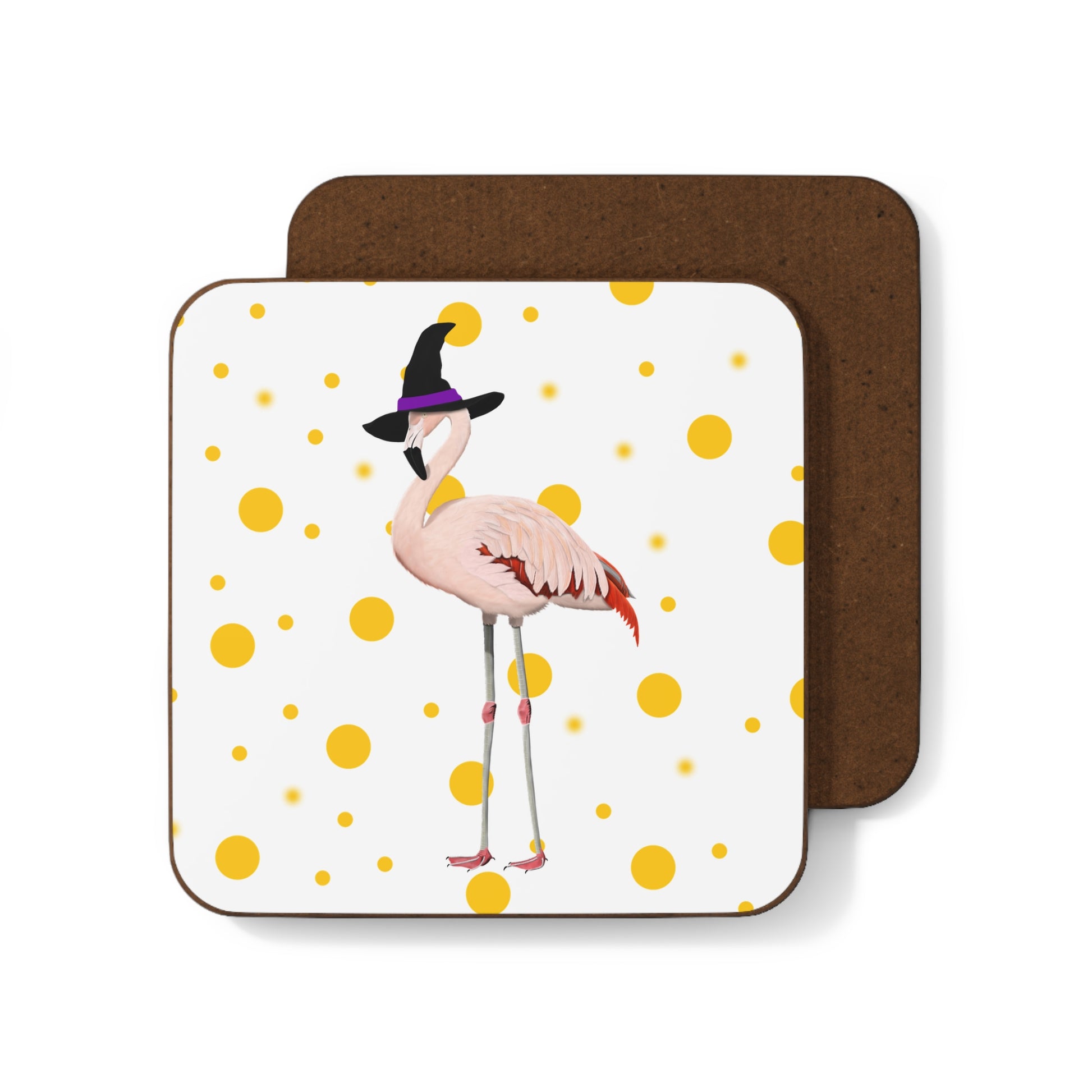 Flamingo Orange Dots Halloween Bird Hardboard Coaster