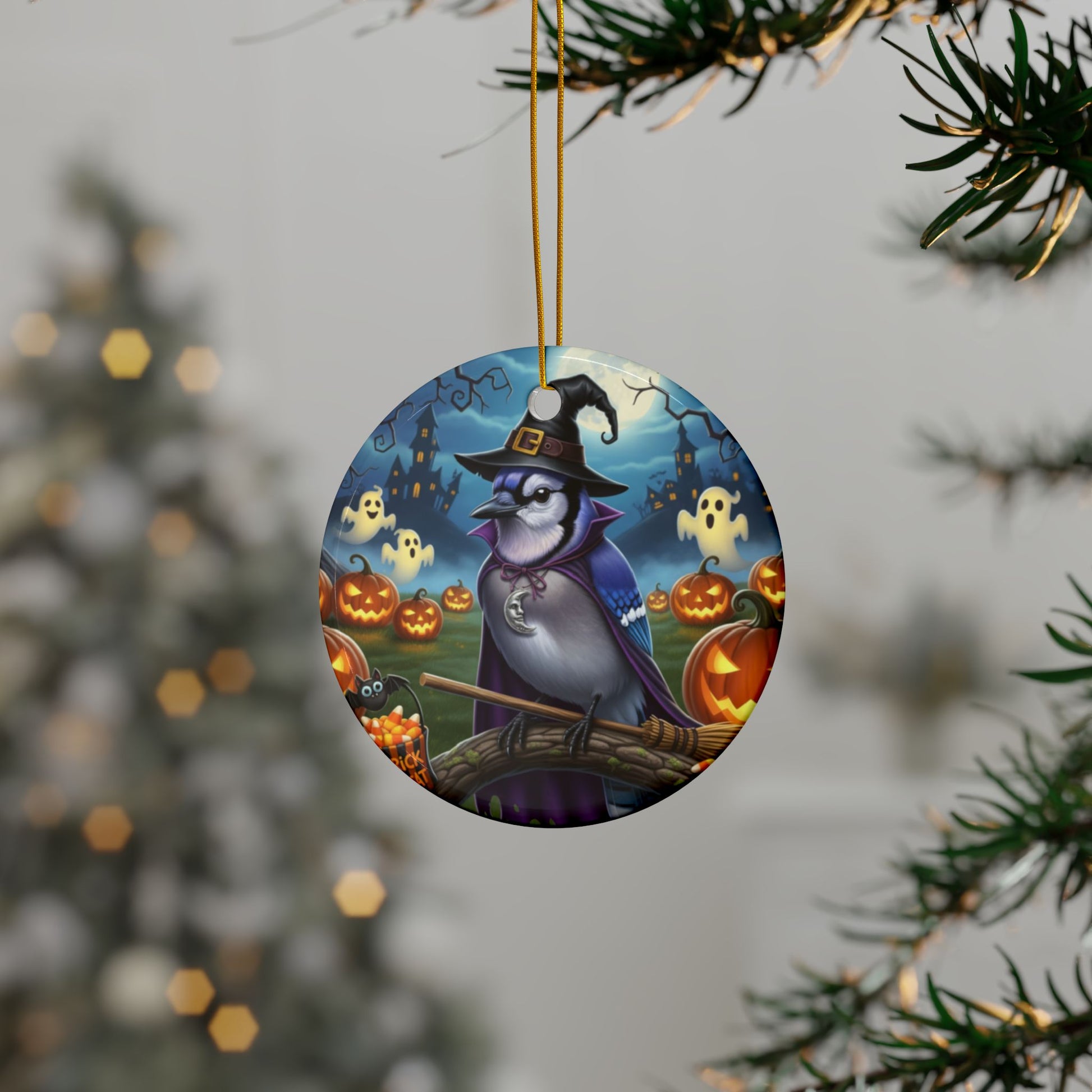 Looking for a unique Halloween decoration? Our Blue Jay bird Halloween ornaments are the perfect choice. These 100% ceramic ornaments feature a cute and funny bird design that's printed on both sides. Ideal for adding to your Halloween tree or using as a decorative accent, this ceramic ornament is a durable and delightful way to celebrate. The double-sided print ensures a great view, making it a versatile piece for any Halloween display. Grab yours today and start decorating!