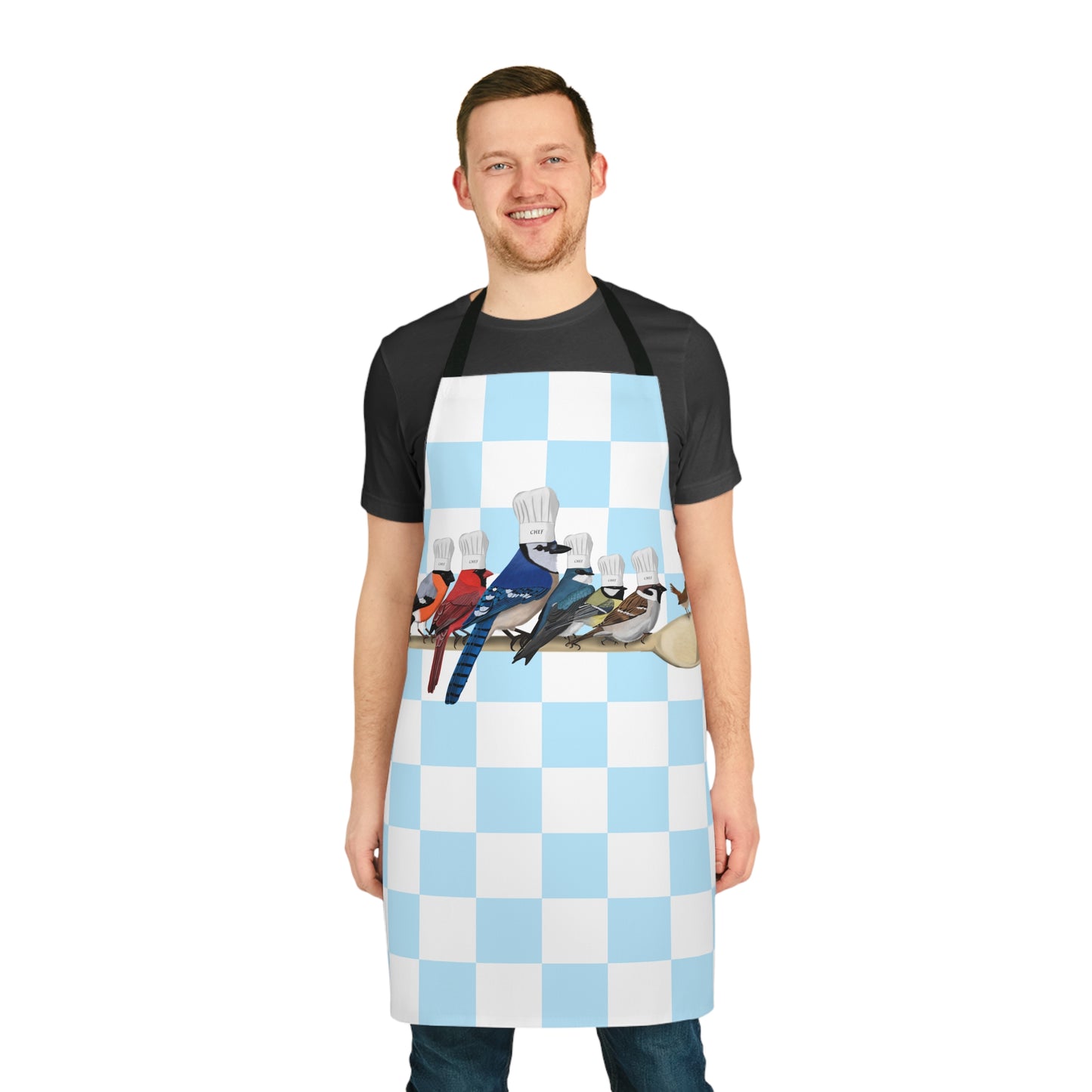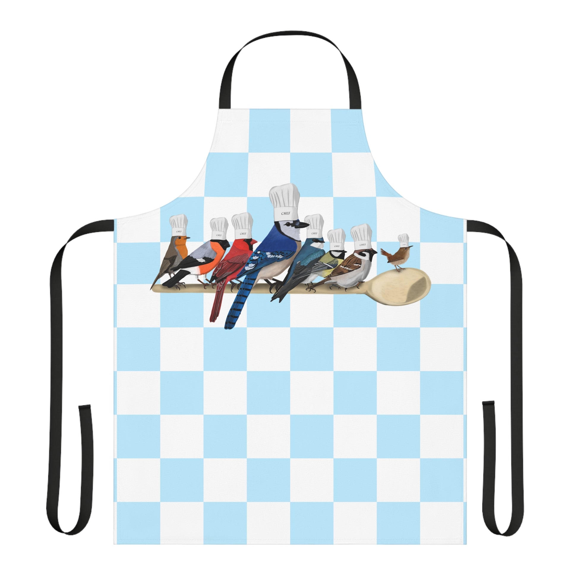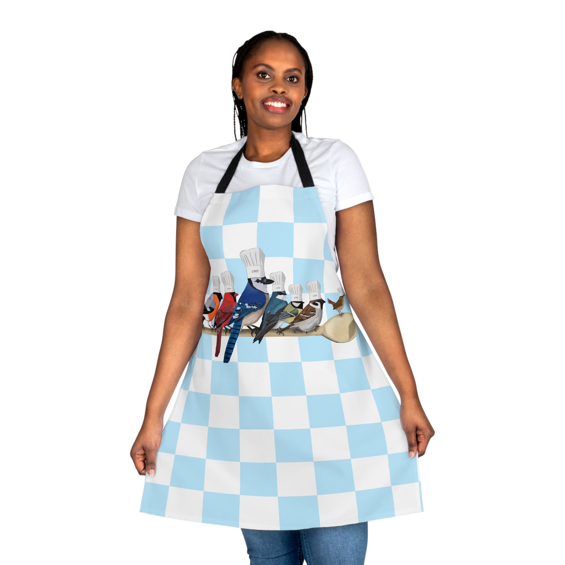 Garden Birds Kitchen Chef Bird Art Apron Blue and White Checkered