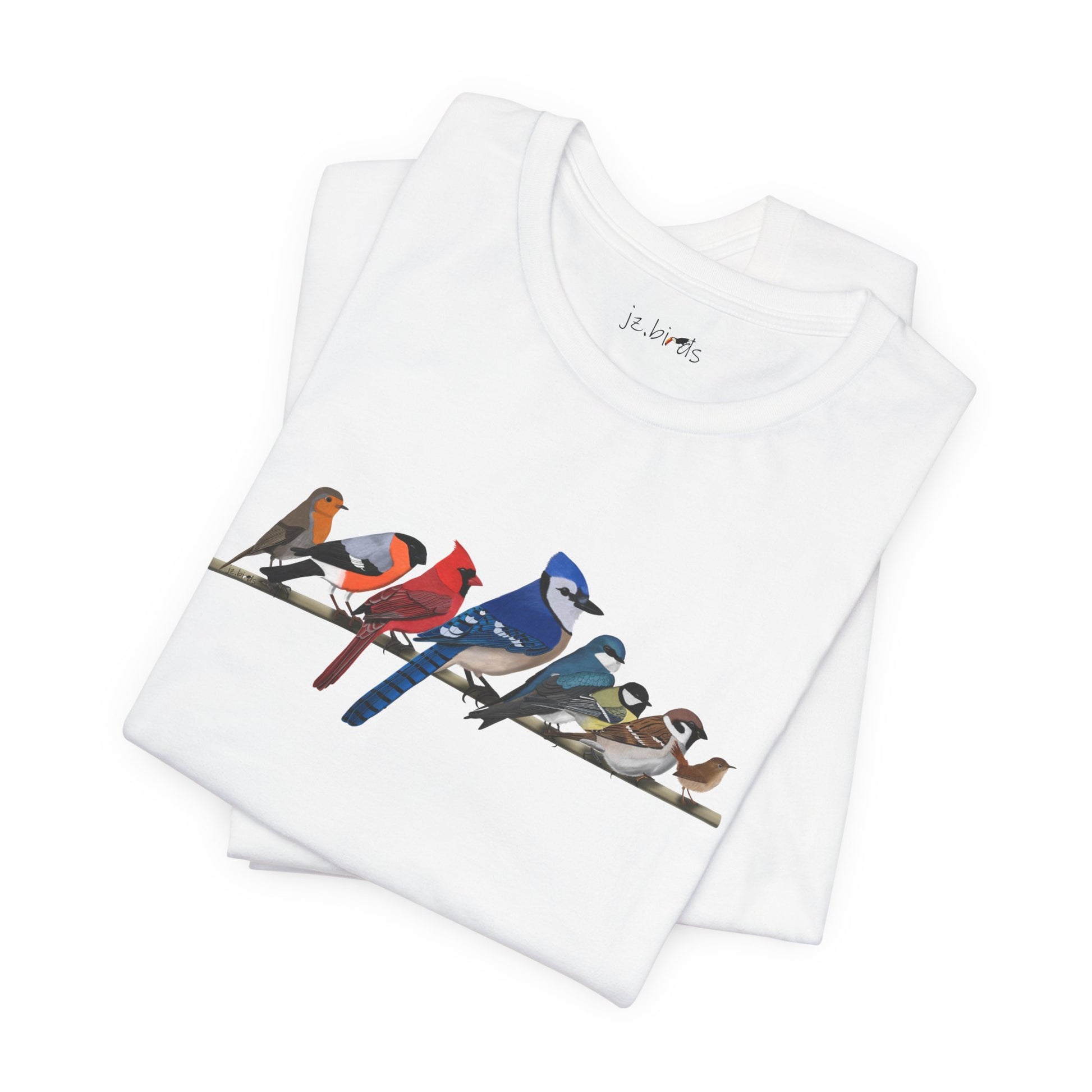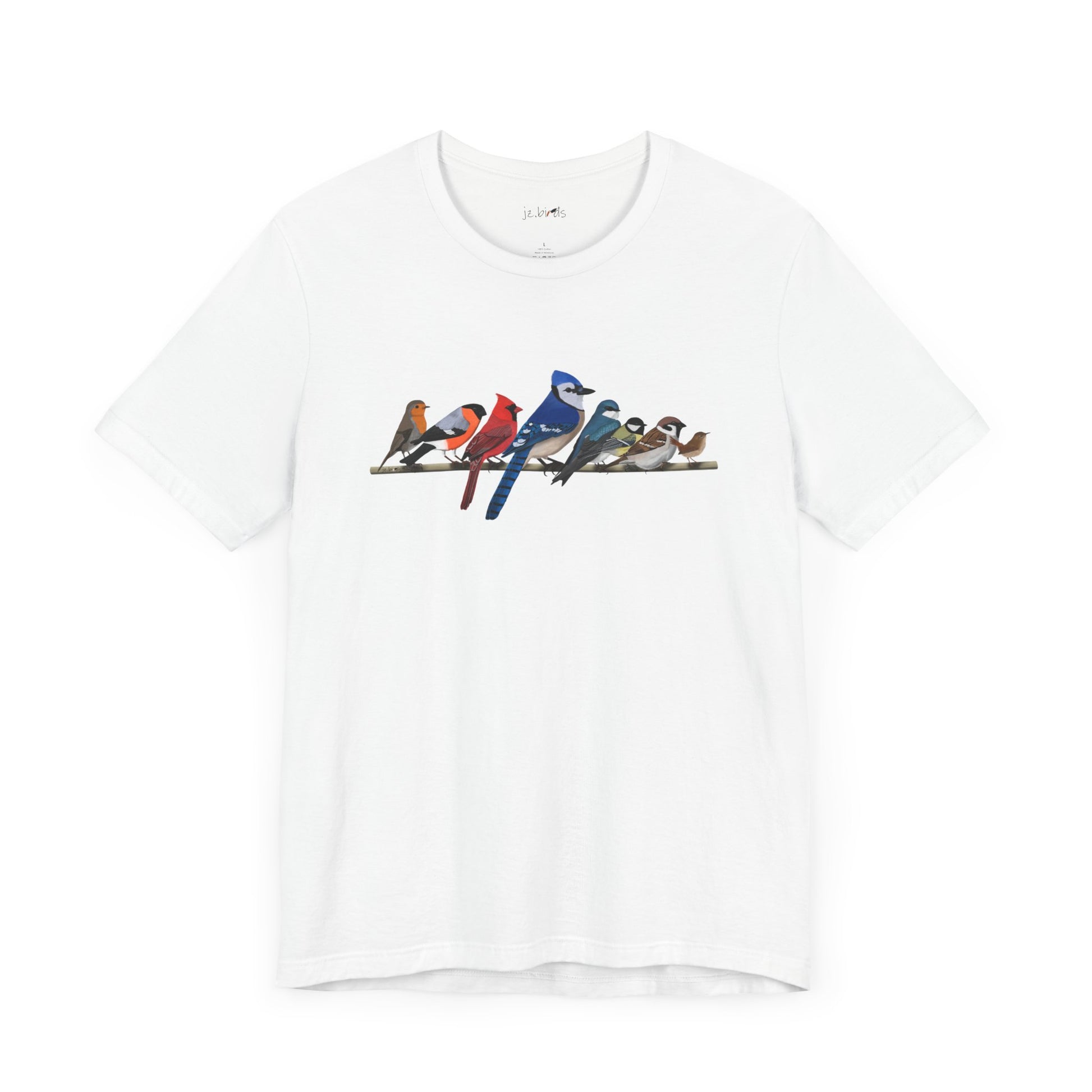 This Blue Jay, Cardinal, Robin, Garden Birds on a Branch t-shirt is a must-have for bird lovers. Featuring beautiful Bald Eagle artwork, it's the perfect addition to any nature enthusiast's wardrobe for birding and birdwatching. Made of high-quality material, this shirt is both comfortable and stylish. Show your love for birds and stand out in any crowd with this unique and eye-catching t-shirt.