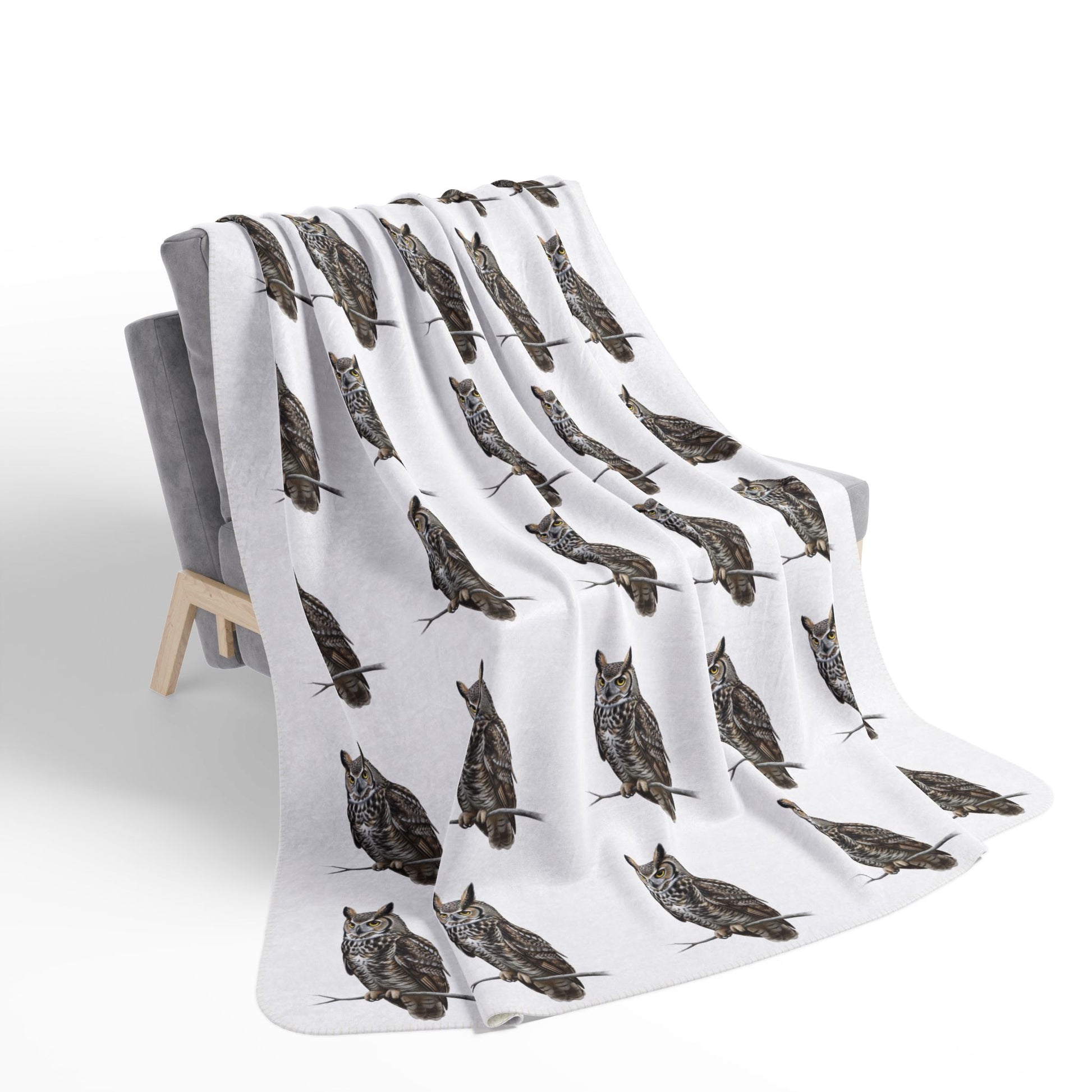 Great Horned Owl Art Fleece Sherpa Blanket (60"x80") - Thick, Ultra-Soft & Cozy Throw for Bird Lovers