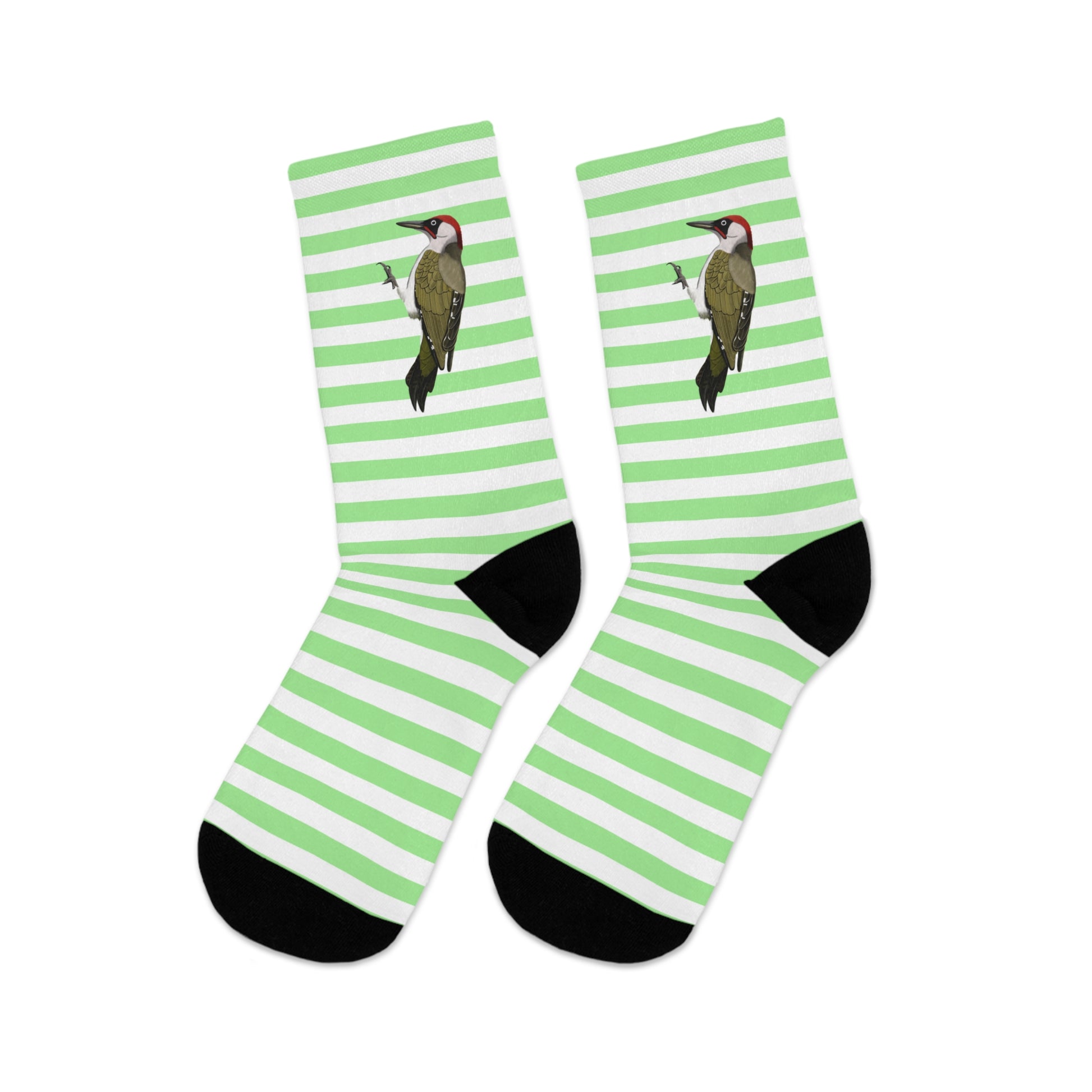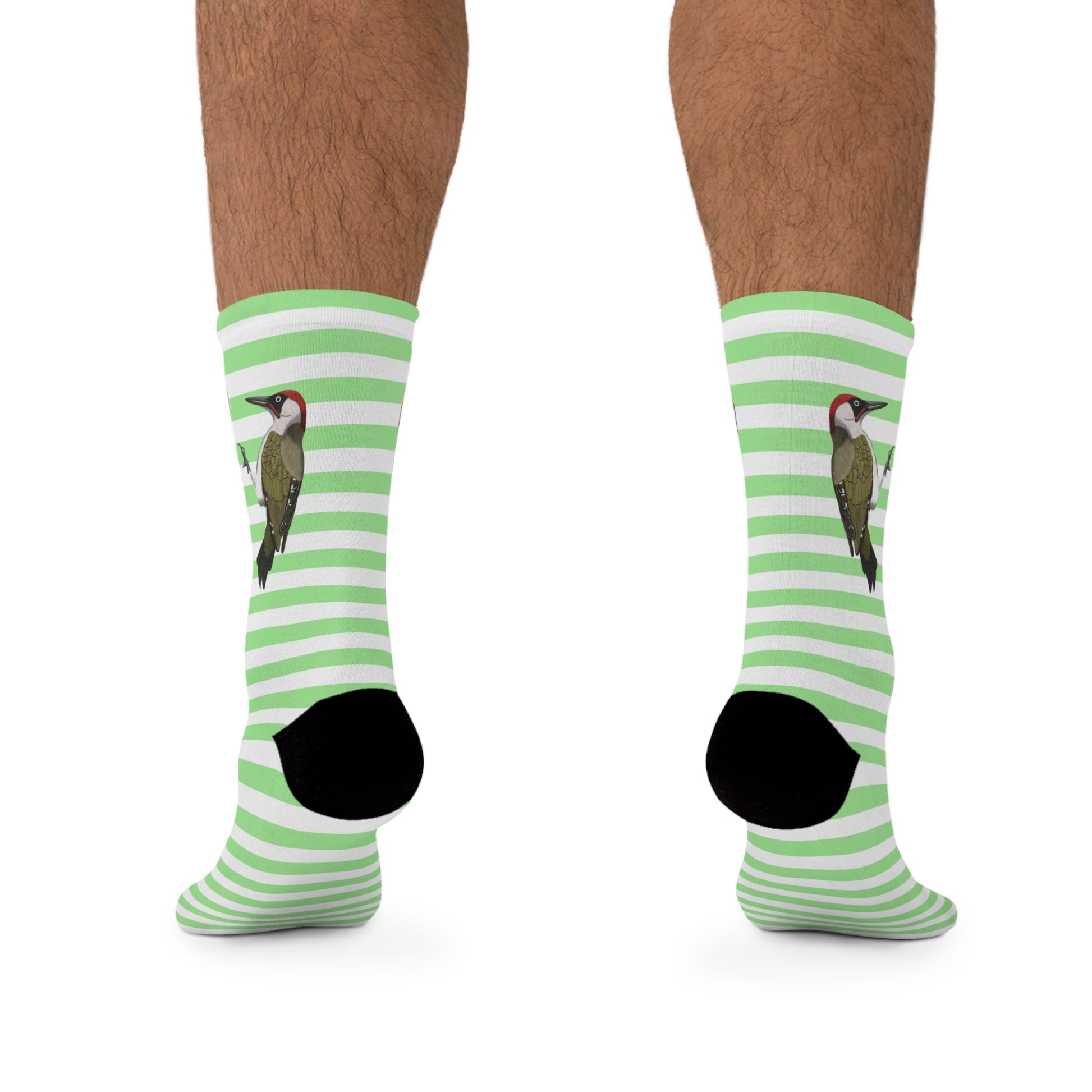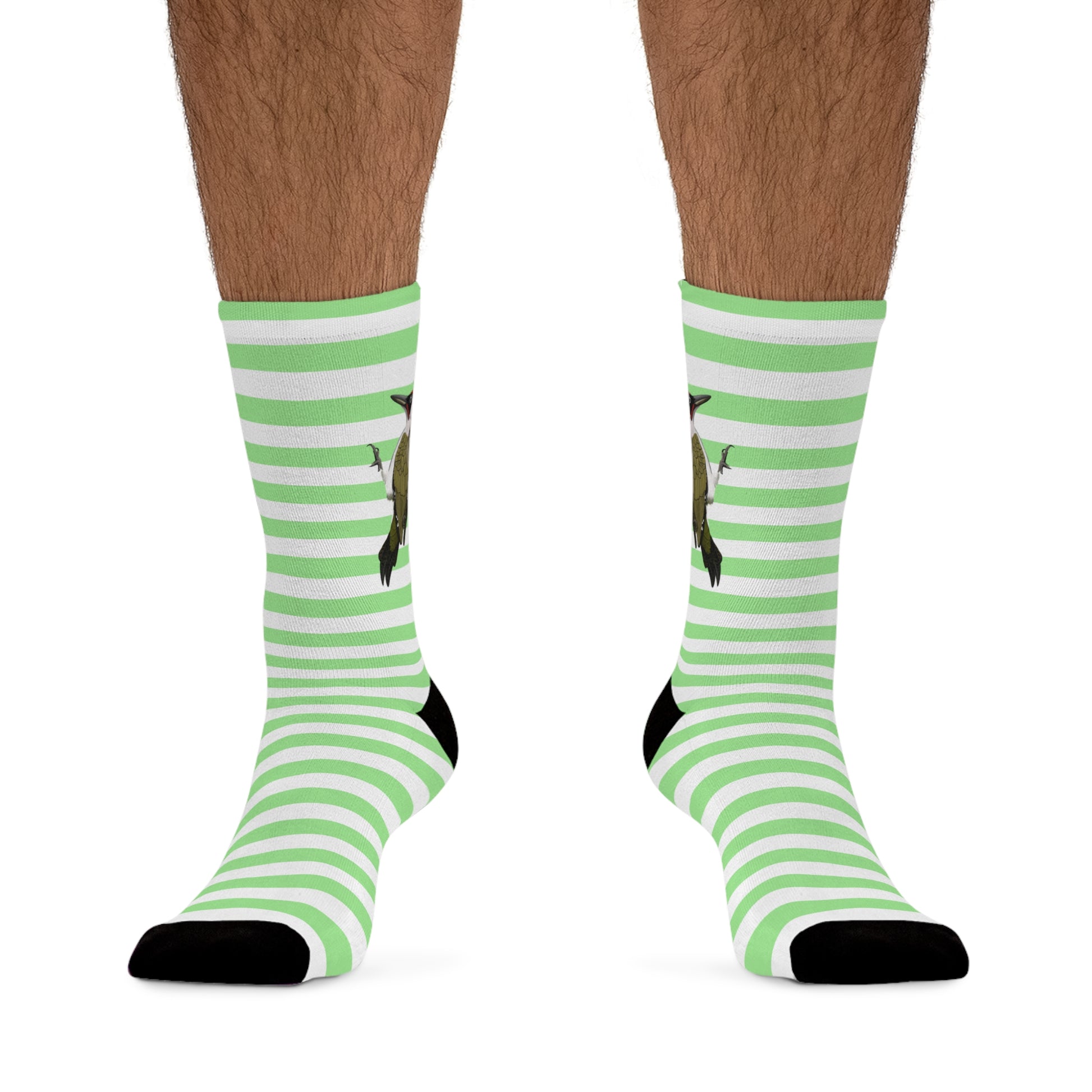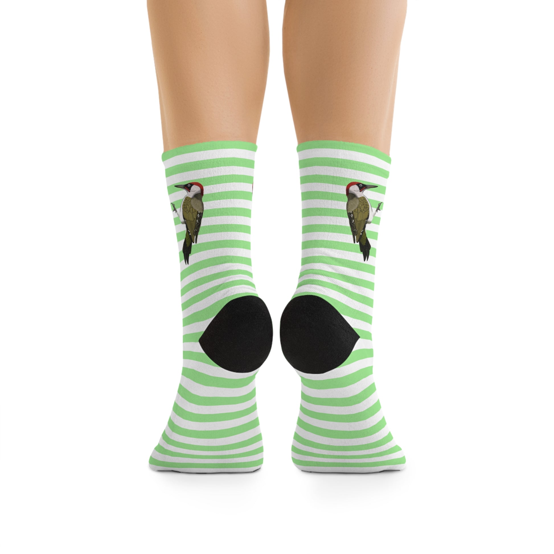 Green Woodpecker Stripes Green White Birding & Birdwatching Bird Socks