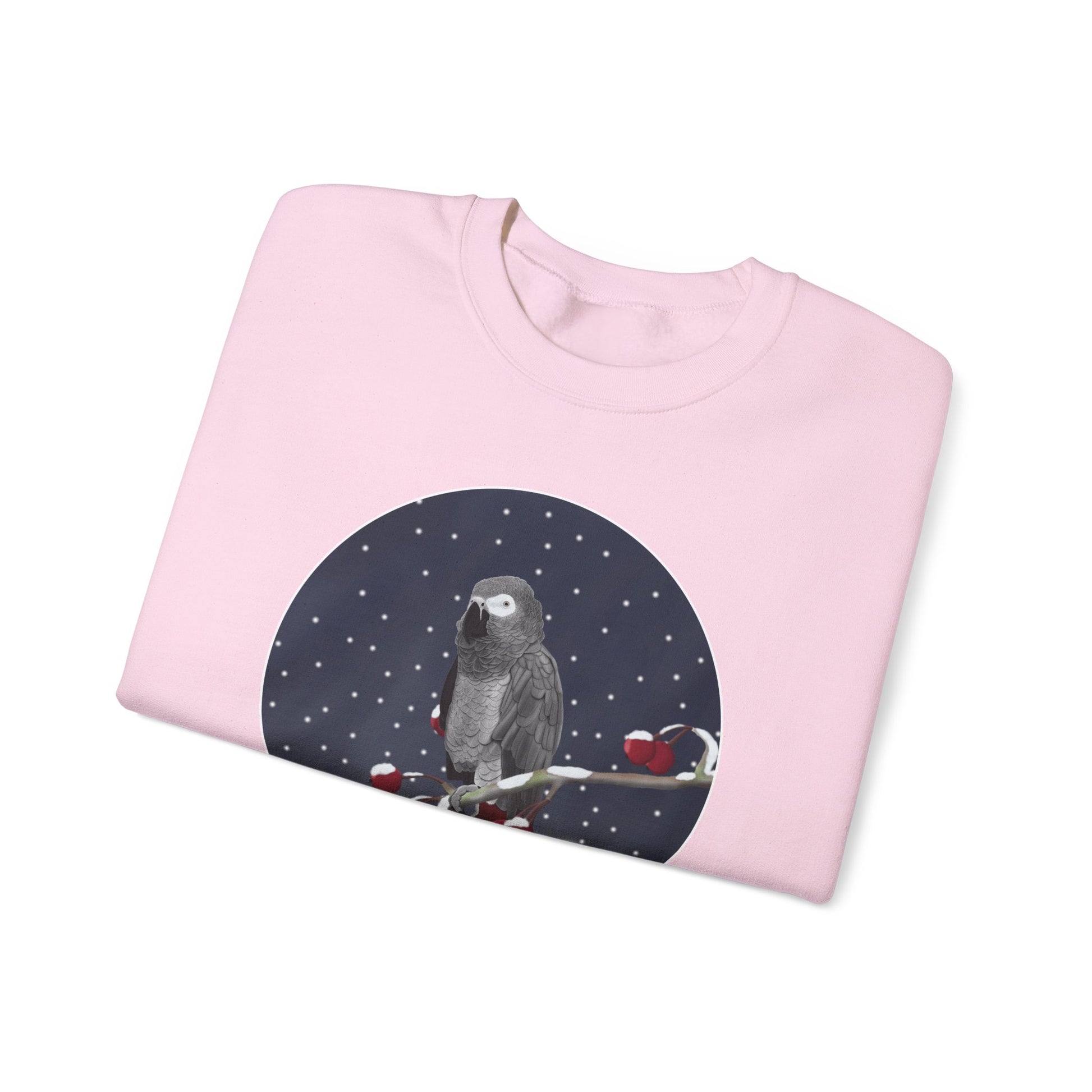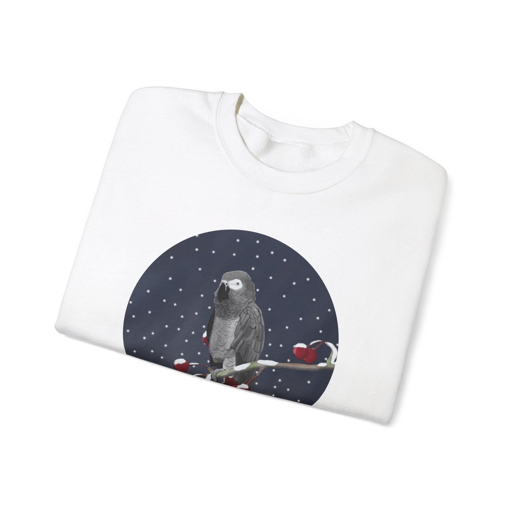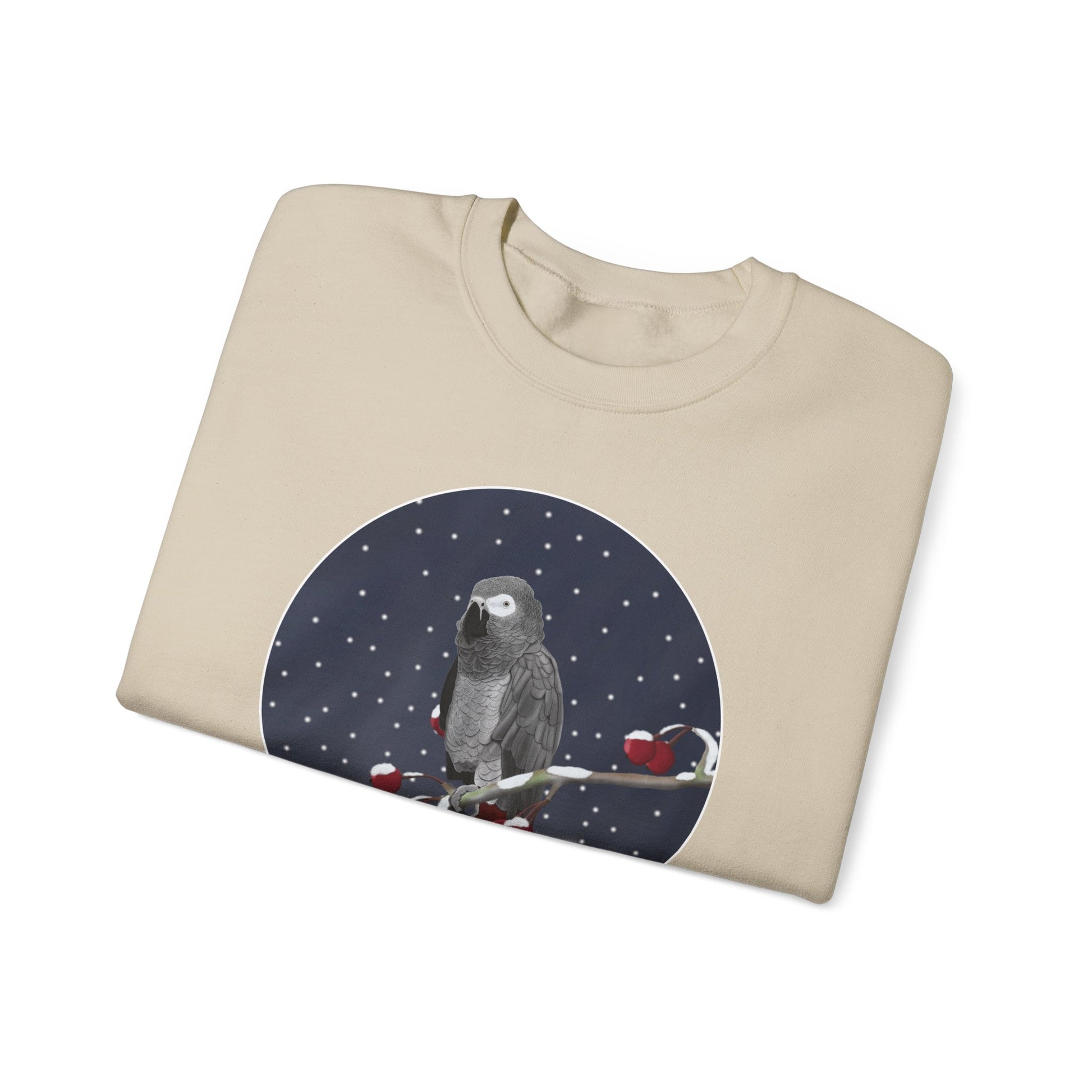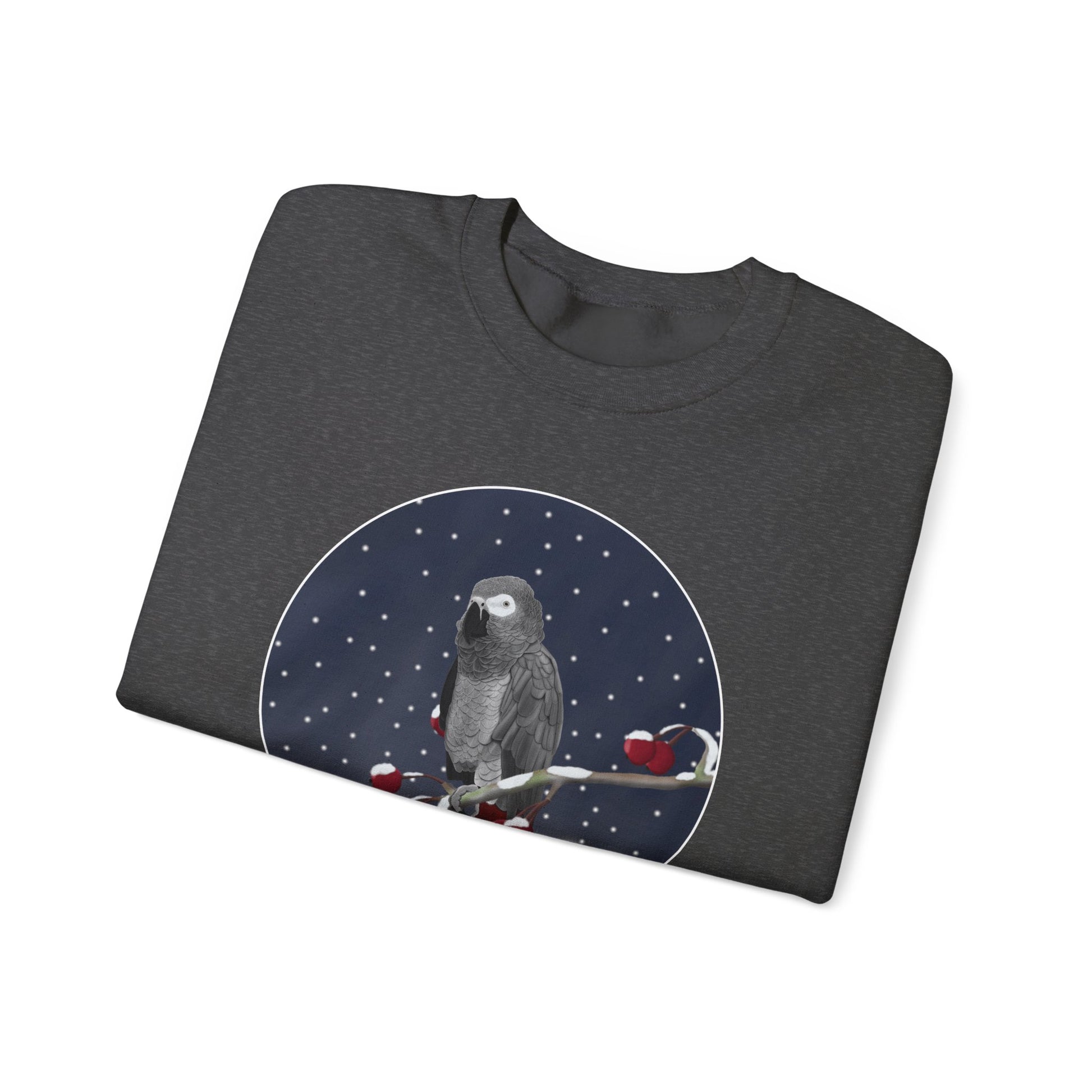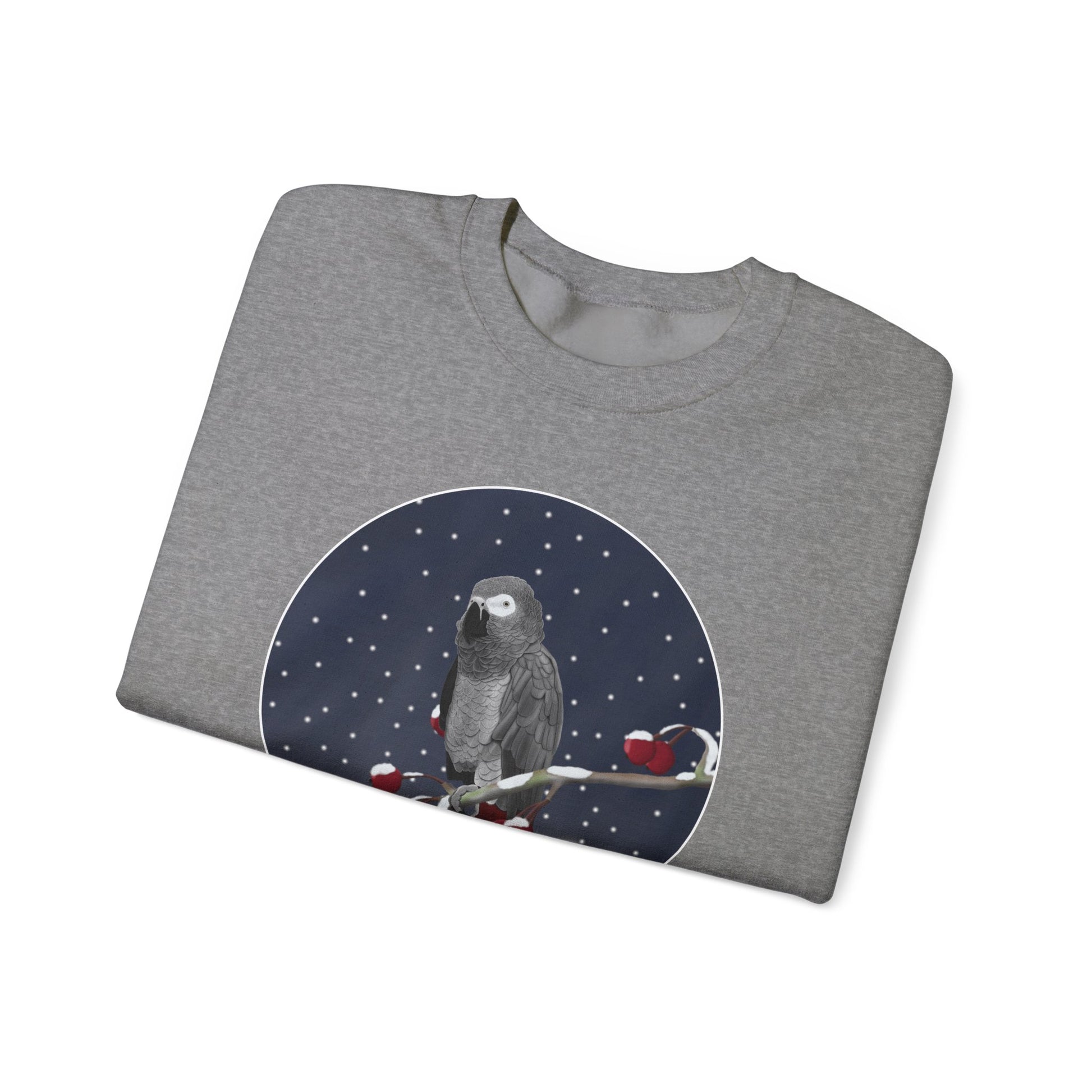 Grey Parrot on a Winter Branch Birdwatcher Christmas Bird Sweatshirt