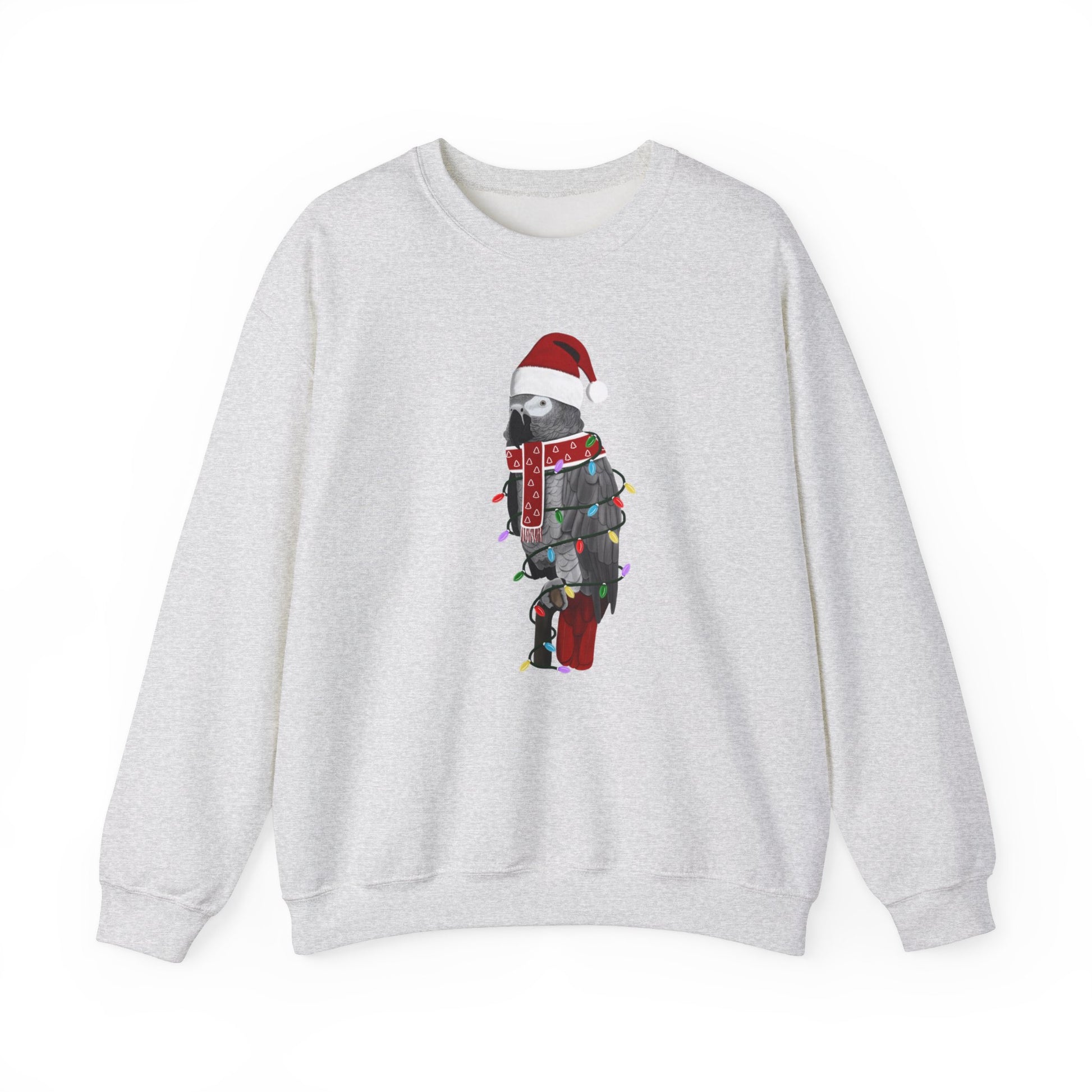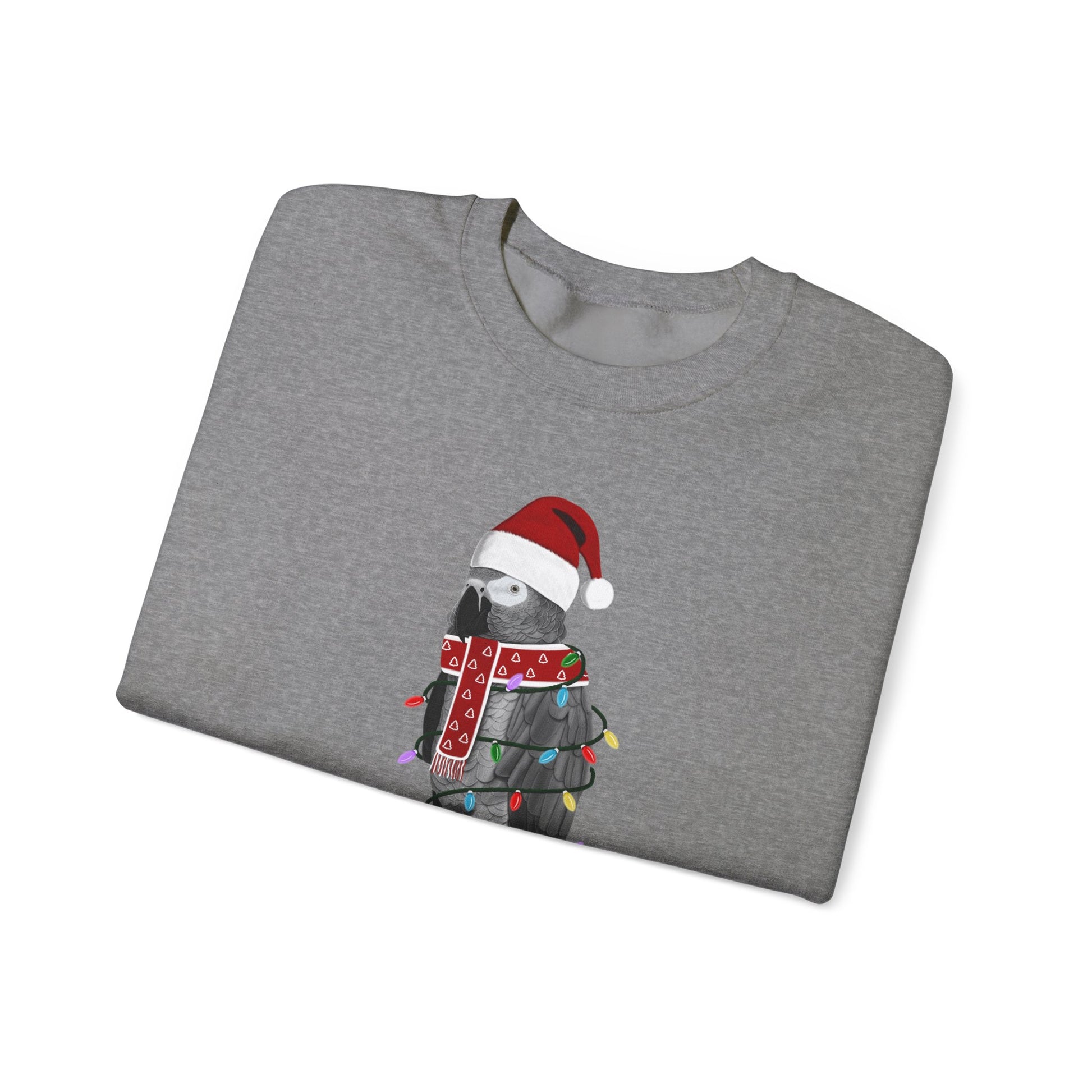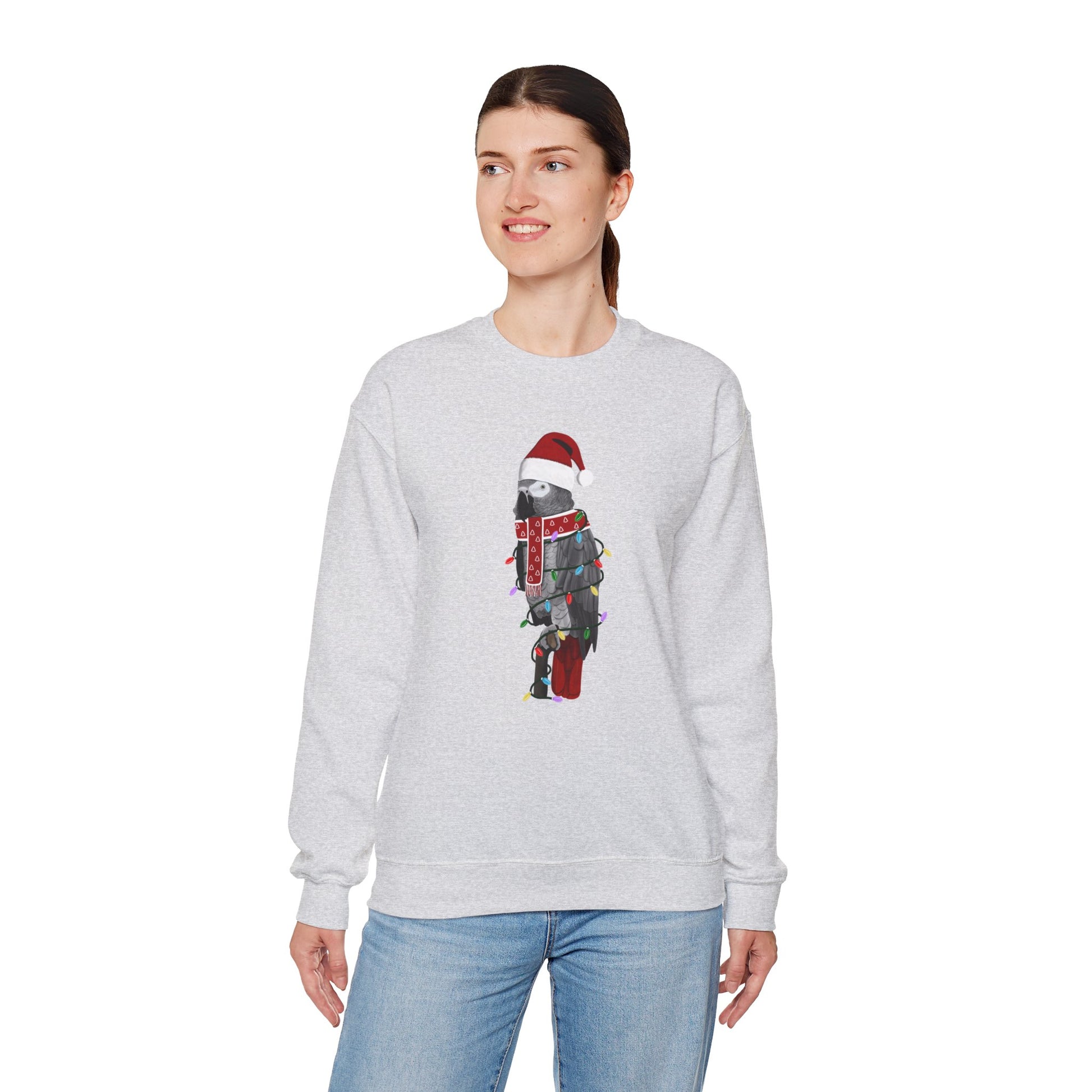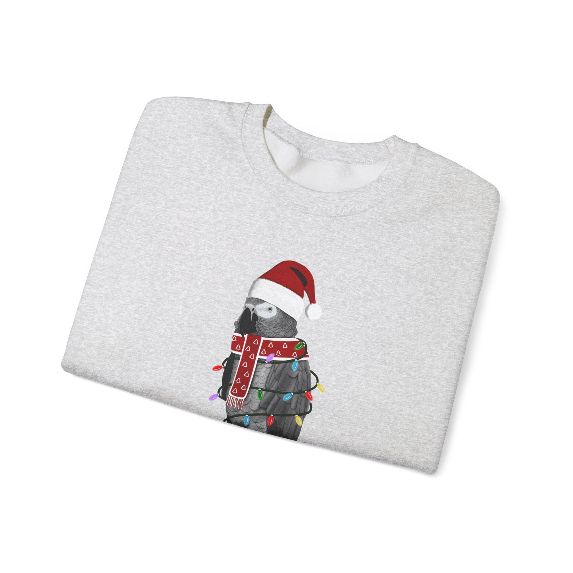 Grey Parrot with Fairy Lights Santa Claus Christmas Bird Sweatshirt