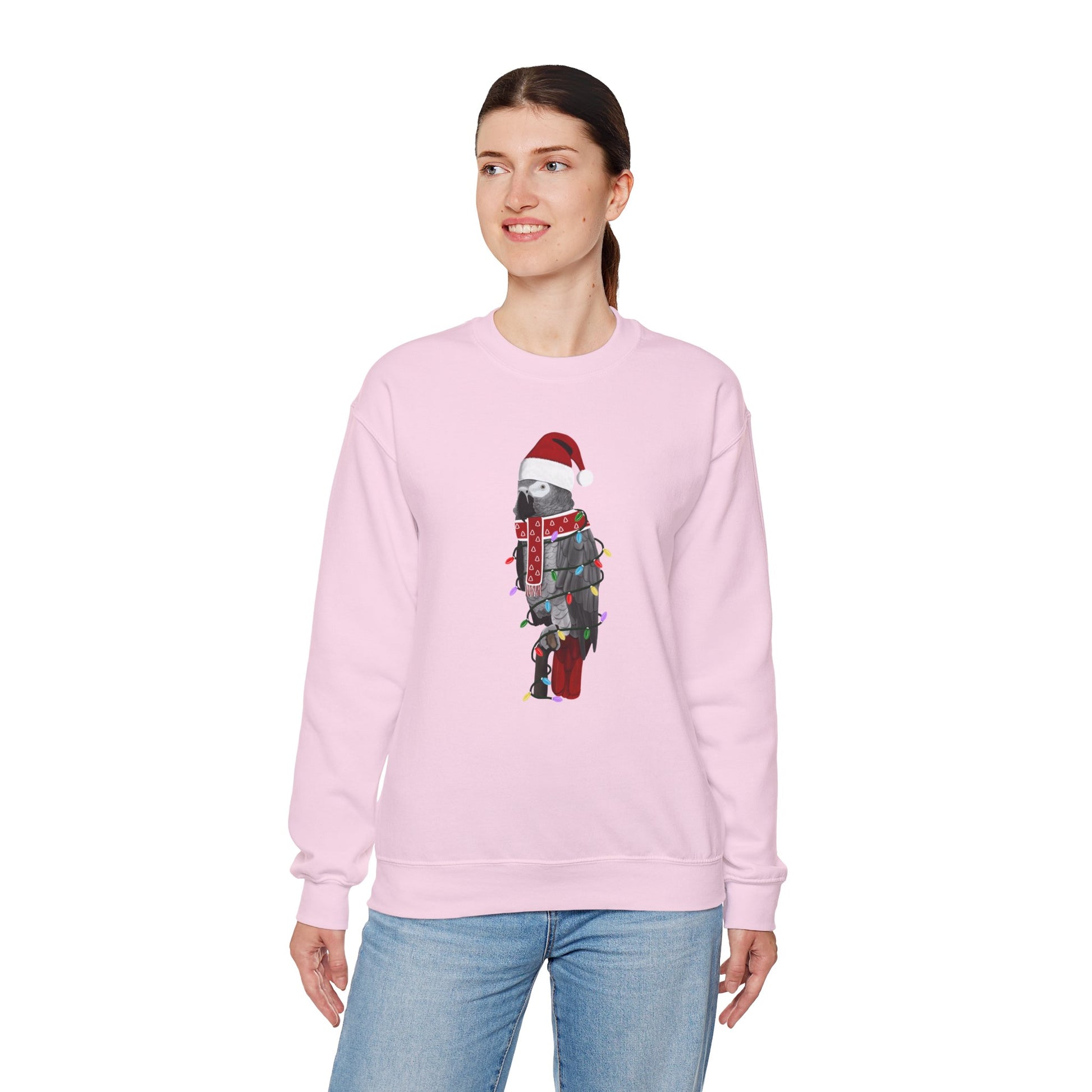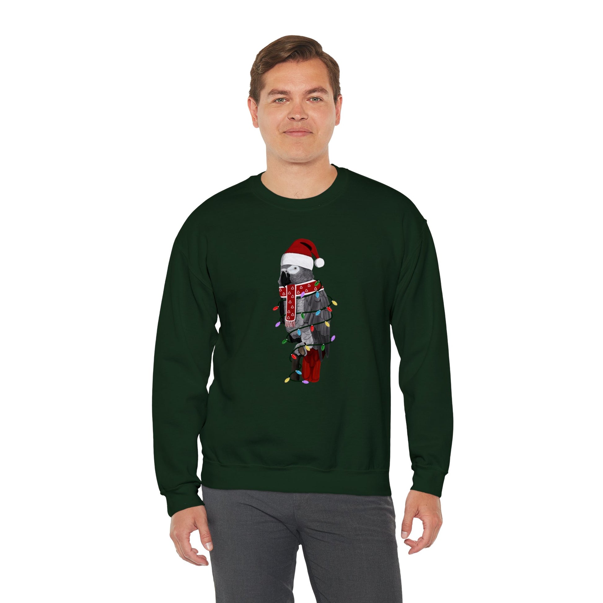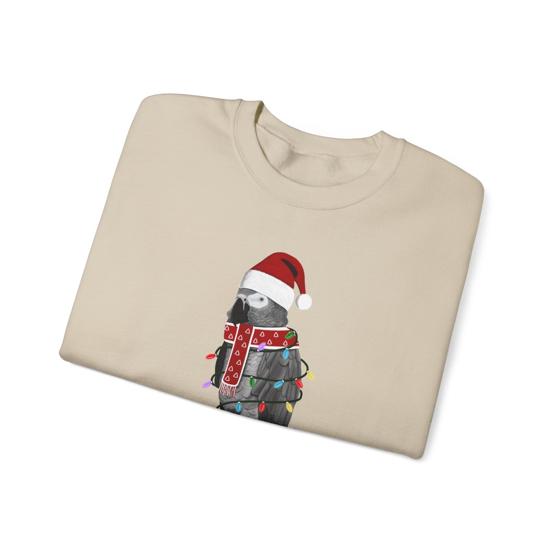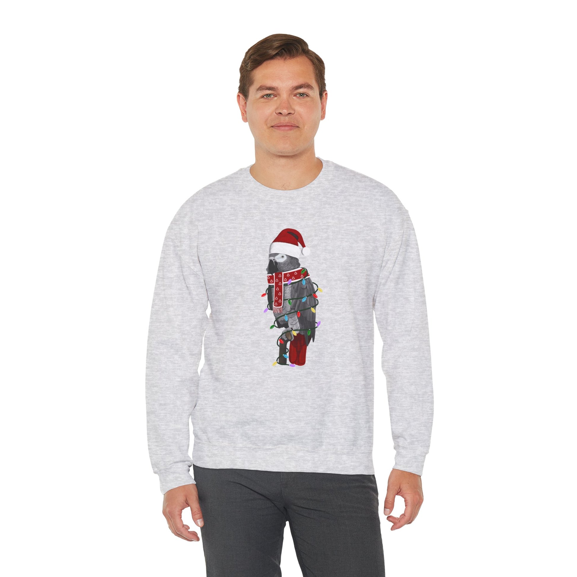 Grey Parrot with Fairy Lights Santa Claus Christmas Bird Sweatshirt