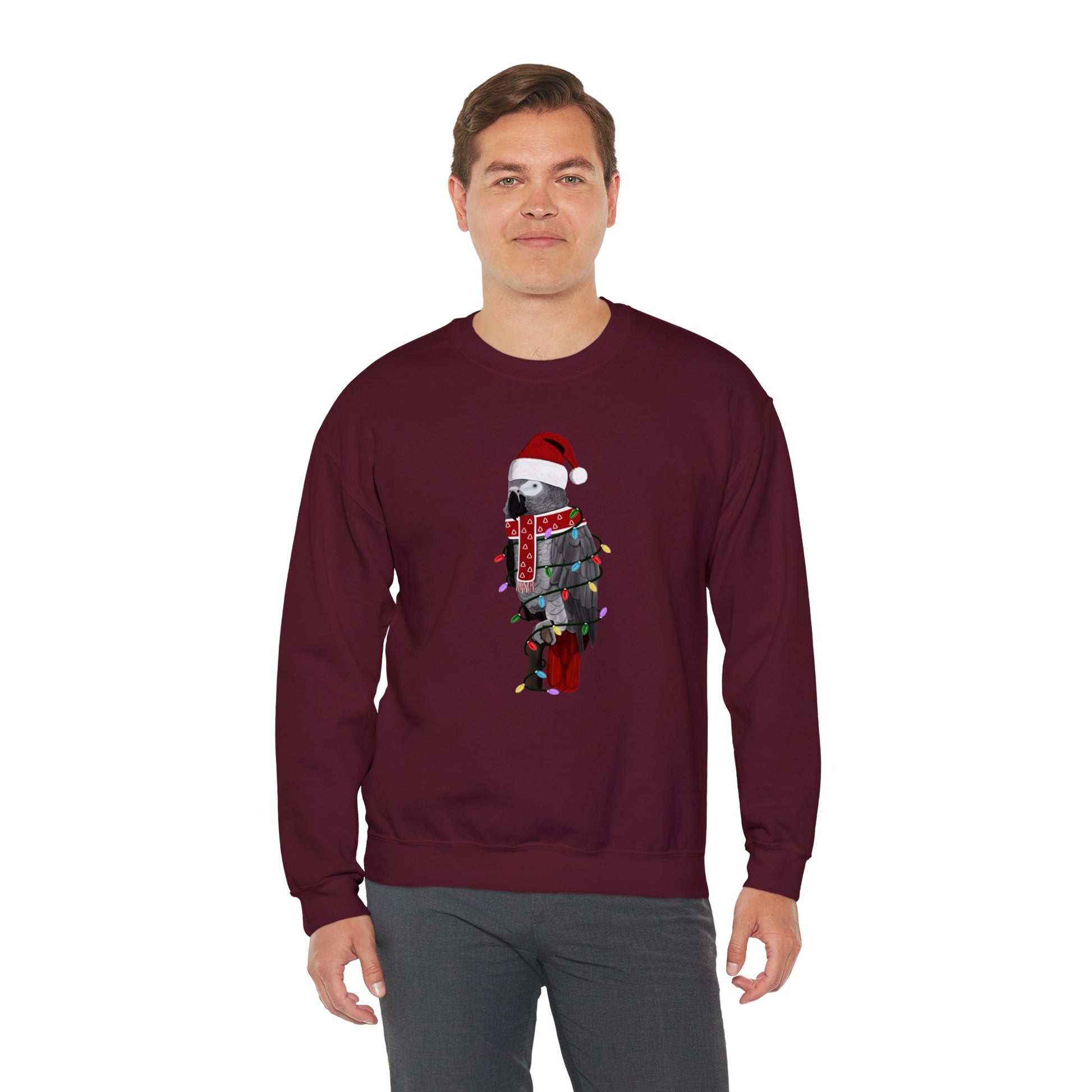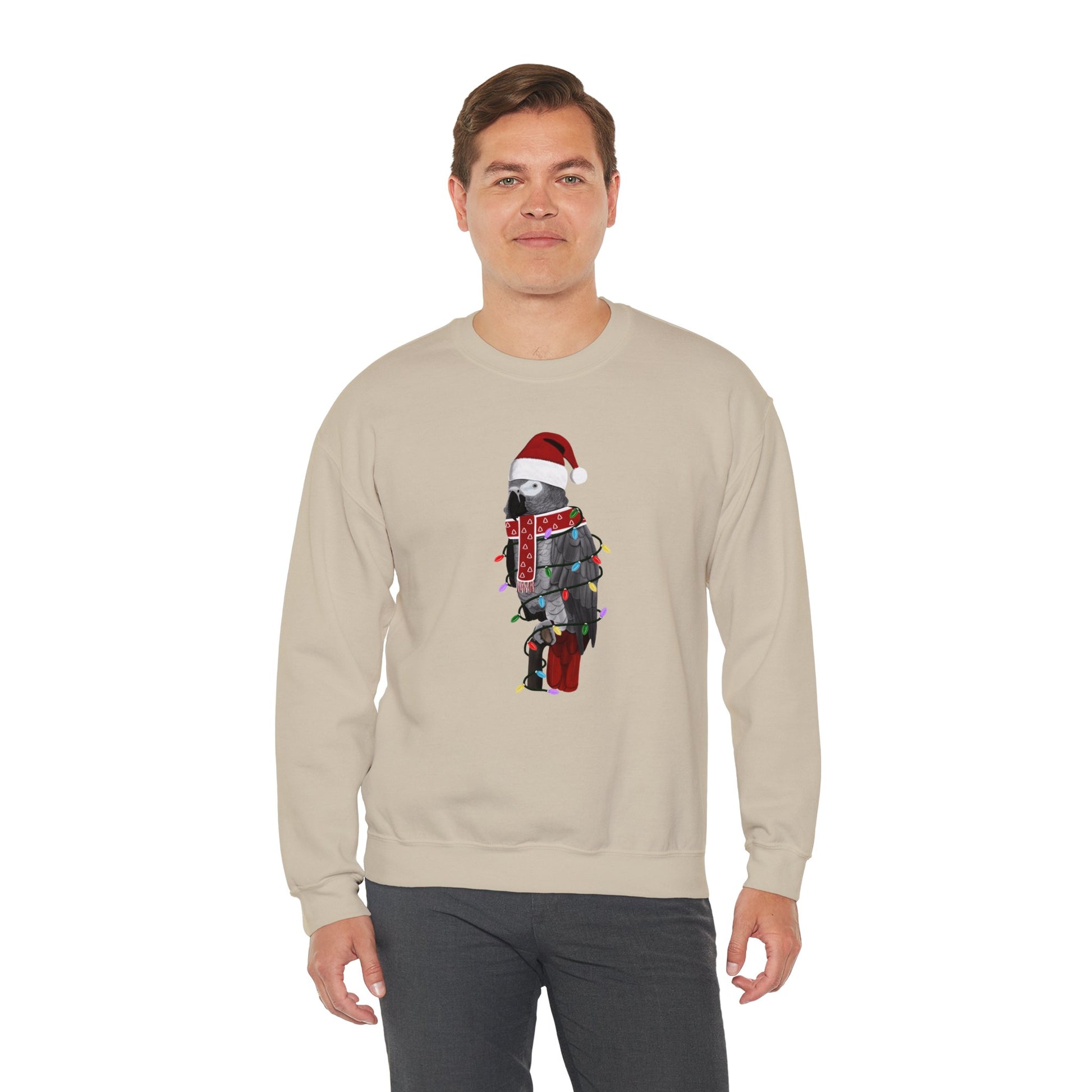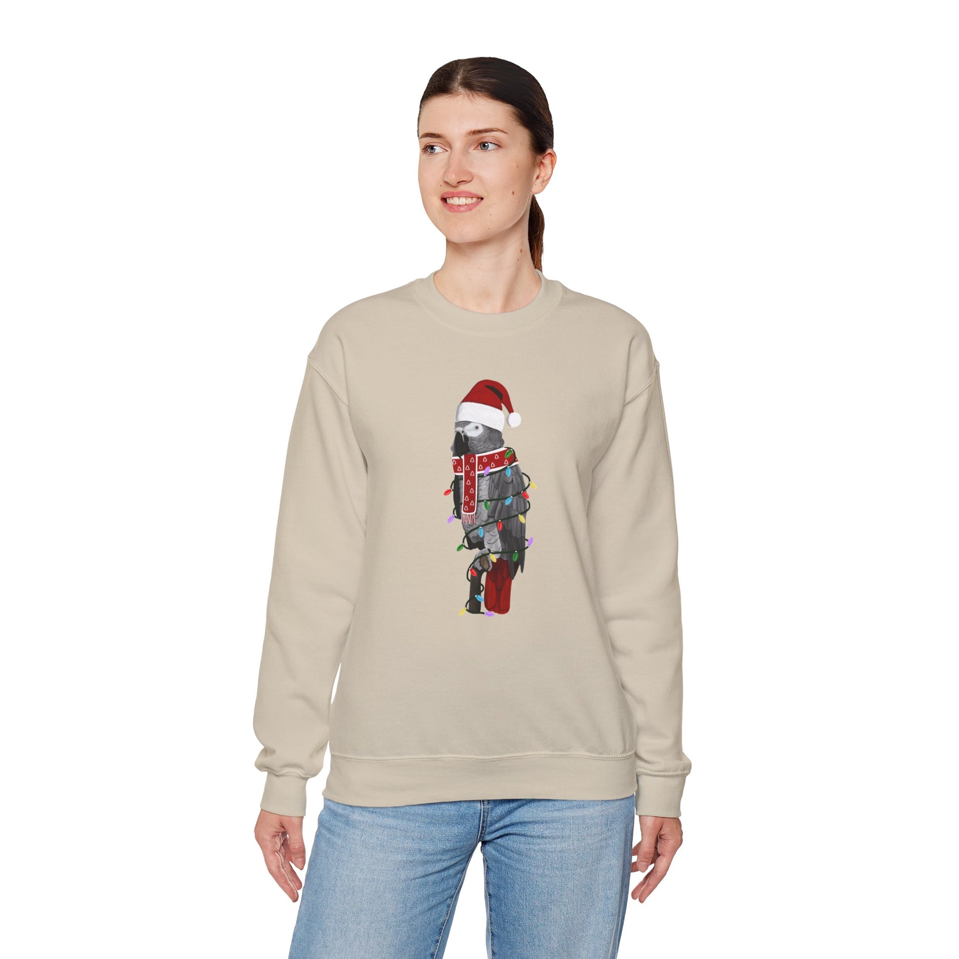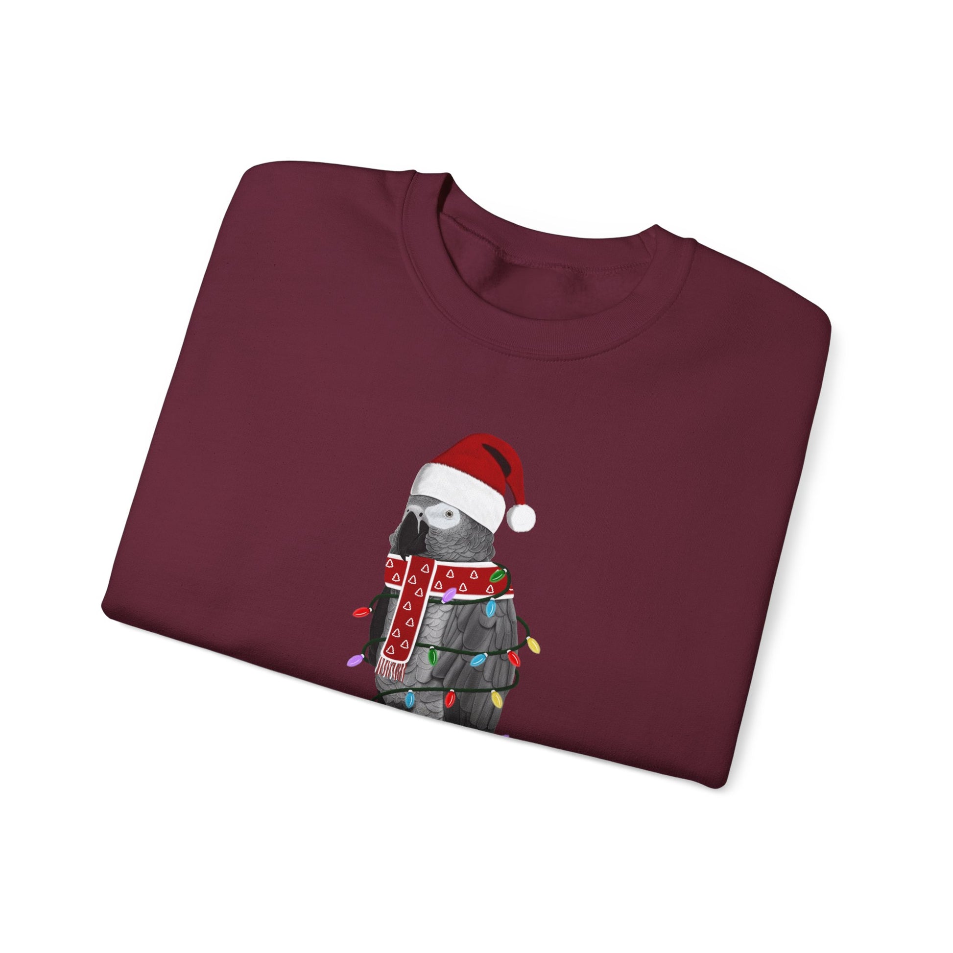 Grey Parrot with Fairy Lights Santa Claus Christmas Bird Sweatshirt