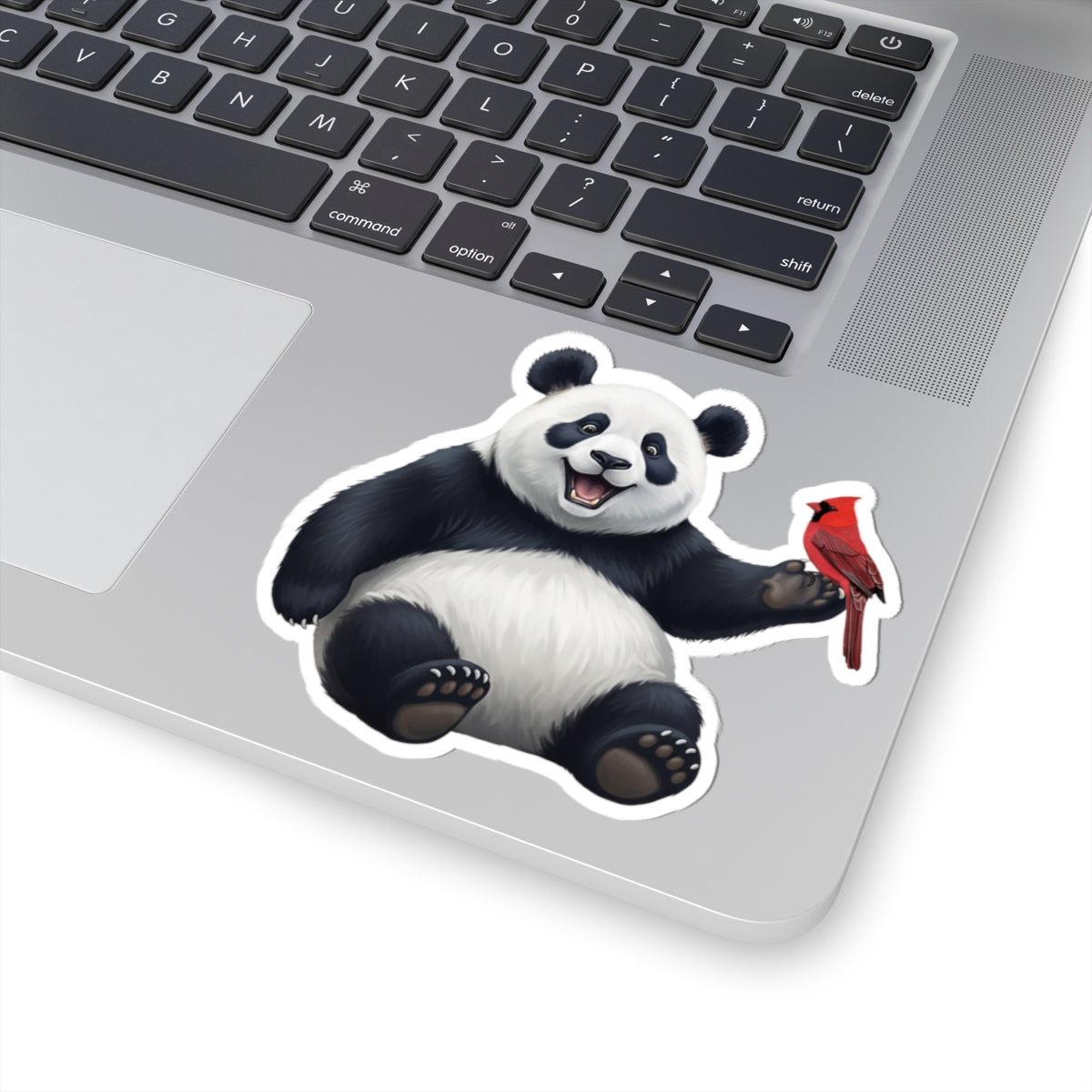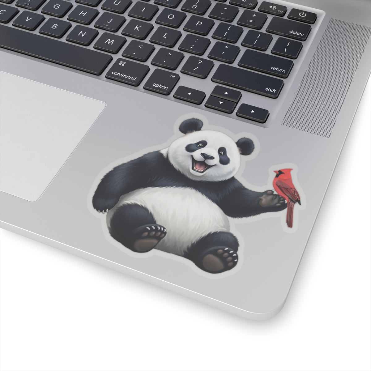 Happy Panda Bear with Cardinal Sticker for Bird Watchers and Animal Lovers