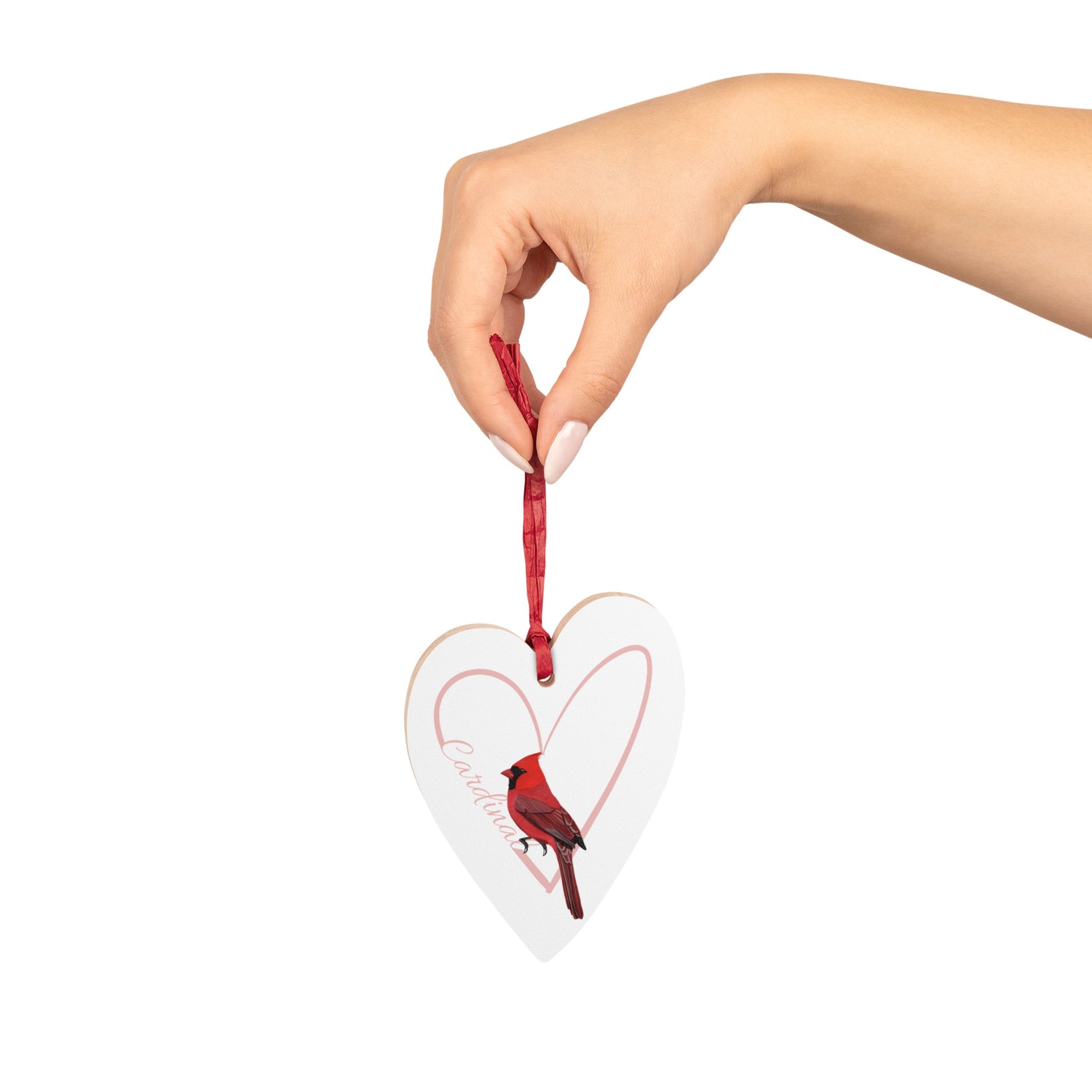 Heart-Shaped Wooden Ornament with Cardinal - Perfect for Bird Lovers