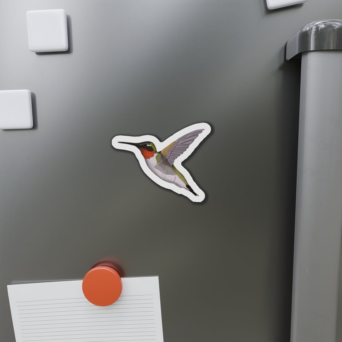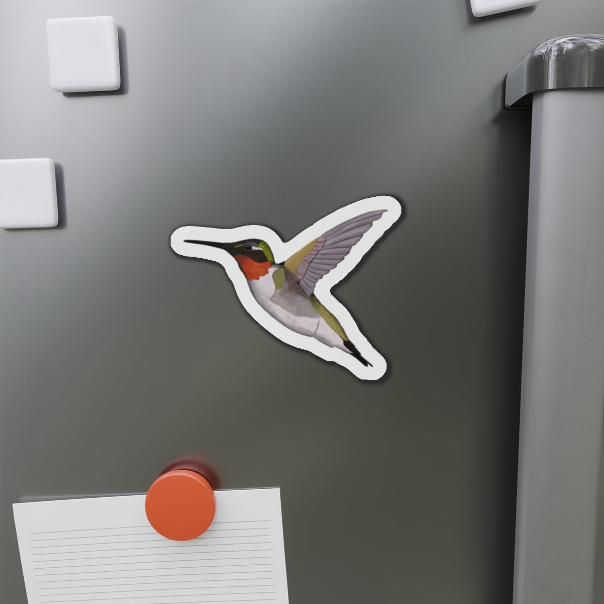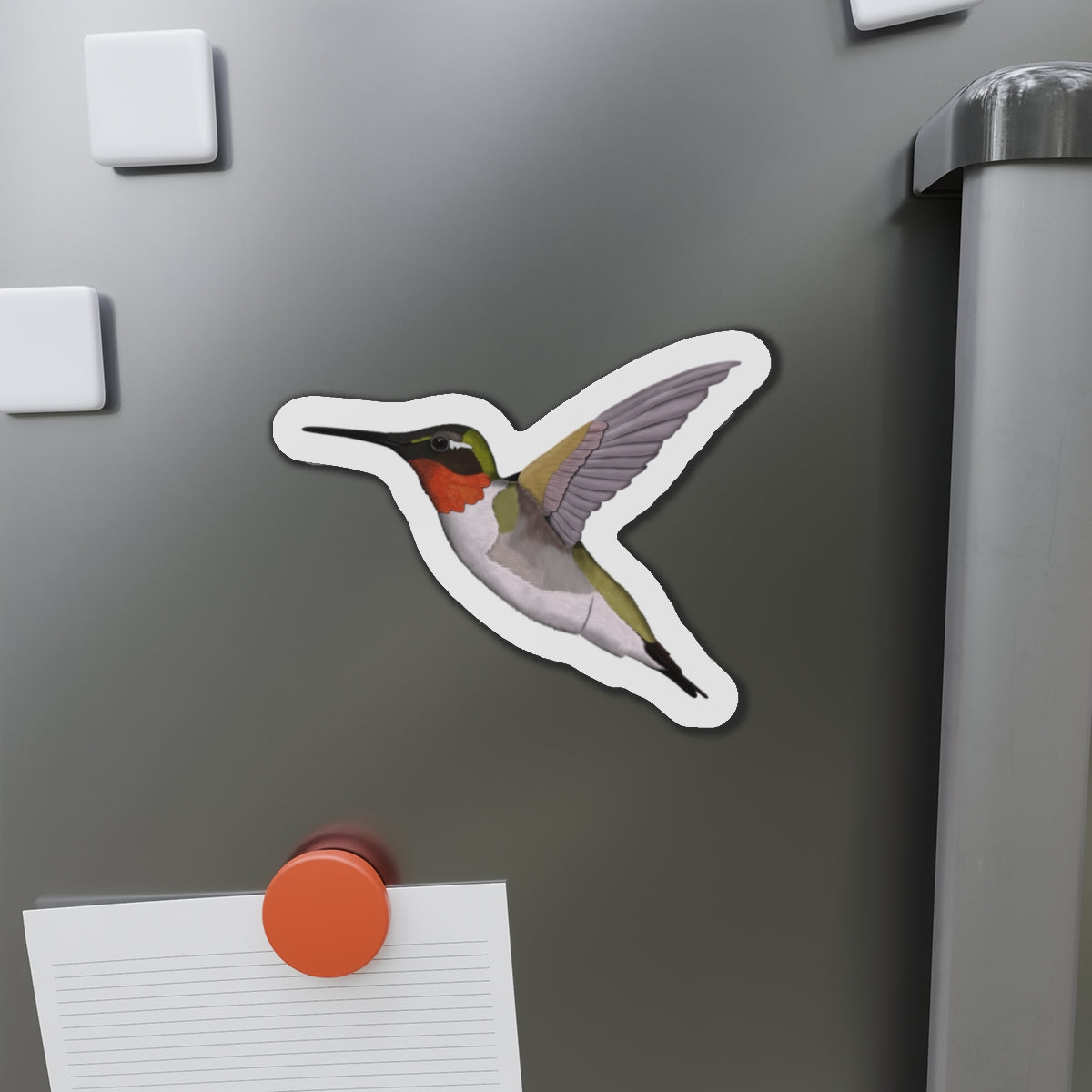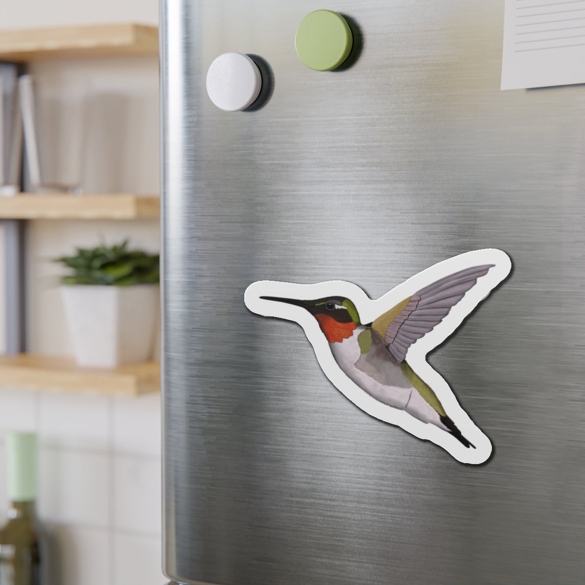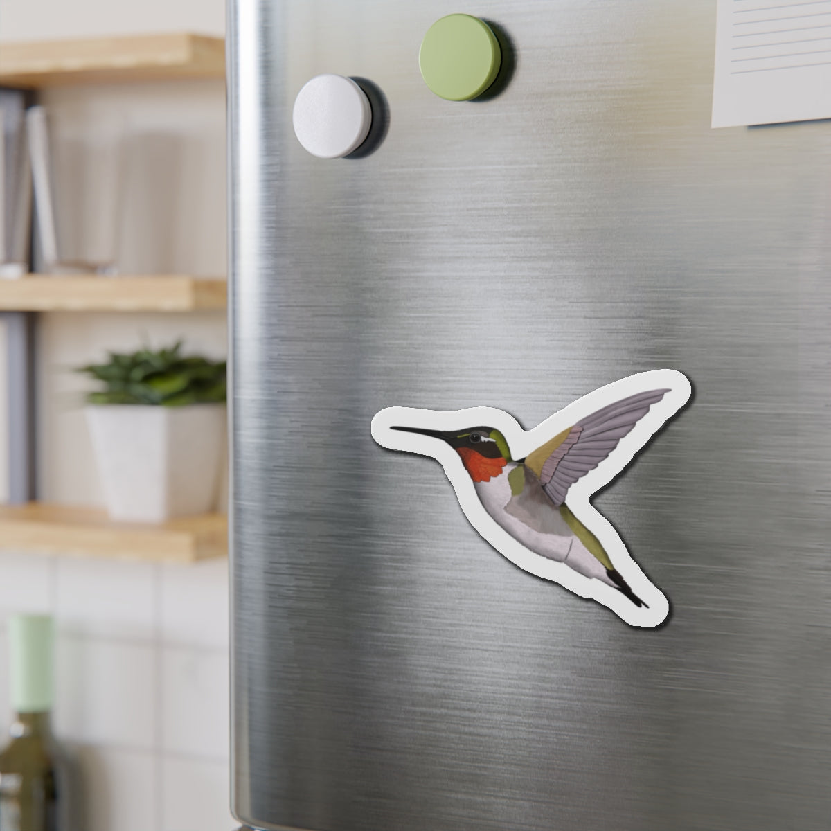 This magnet features a beautiful Hummingbird bird illustration. It serves as both a useful tool and a lovely decoration for any home or office space. Made with high-quality materials, it is sure to add a touch of elegance to any setting.