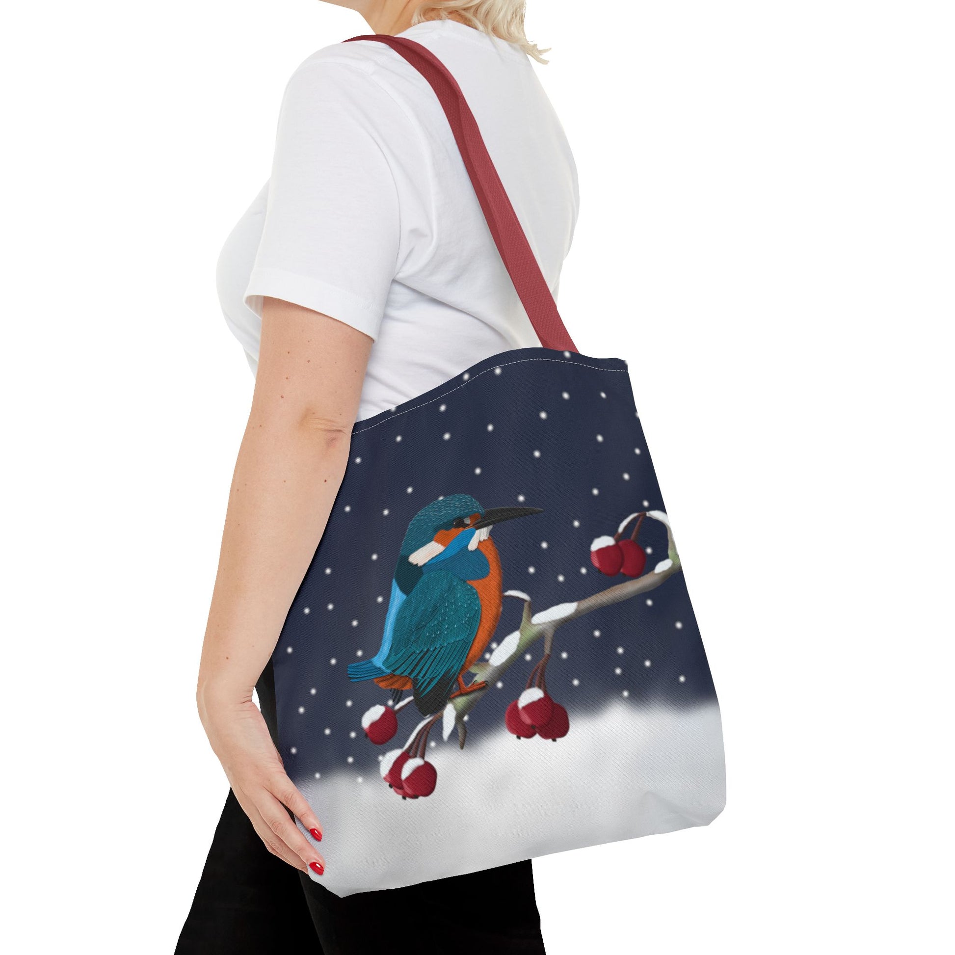 Experience the joy of birdwatching with our Kingfisher on a Winter Branch Christmas Bird Tote Bag! Measuring 16"x16", this stylish bag features a vibrant Christmas design and is perfect for carrying all your birdwatching essentials. Whether you're a seasoned birder or just starting out, this bag is a must-have for all bird enthusiasts.