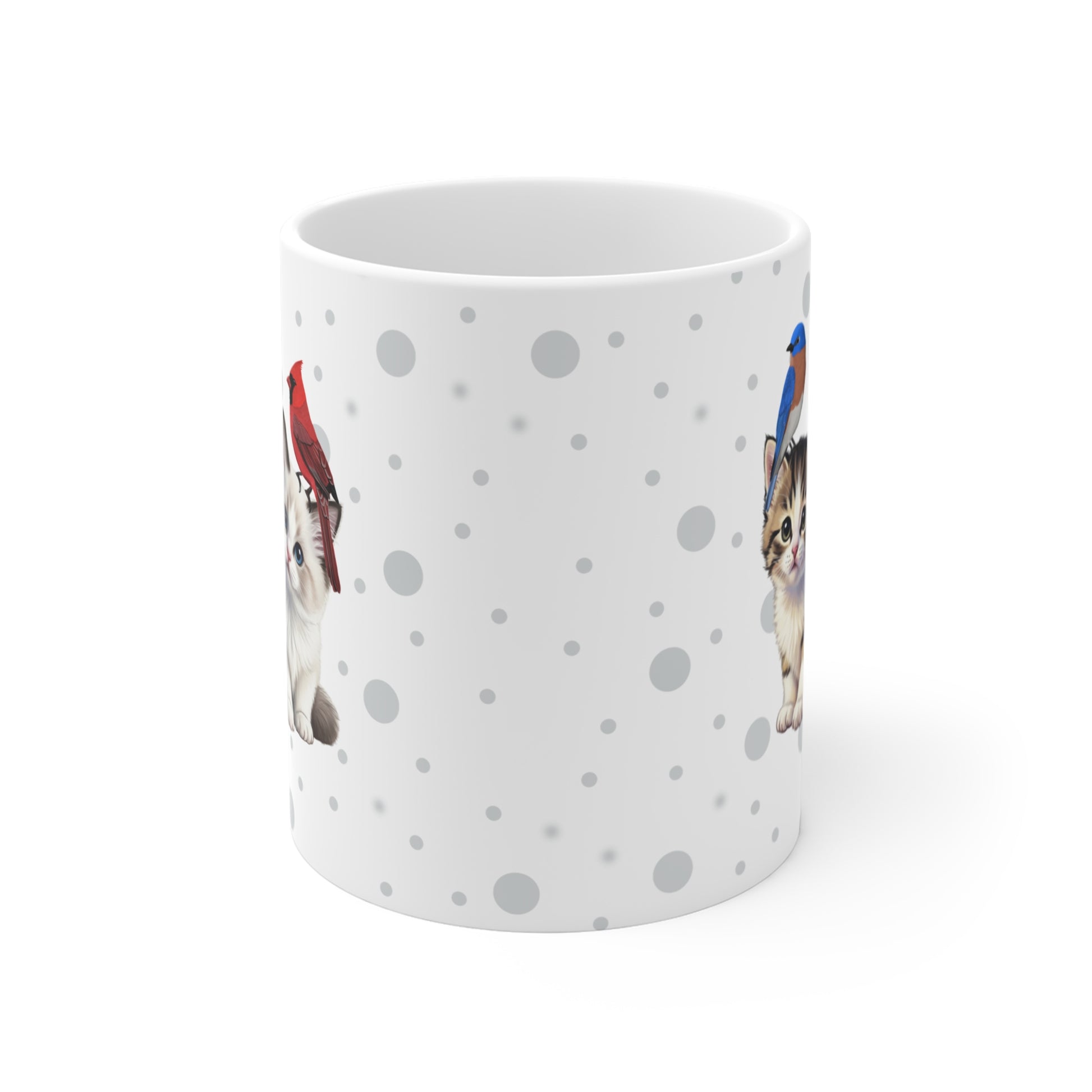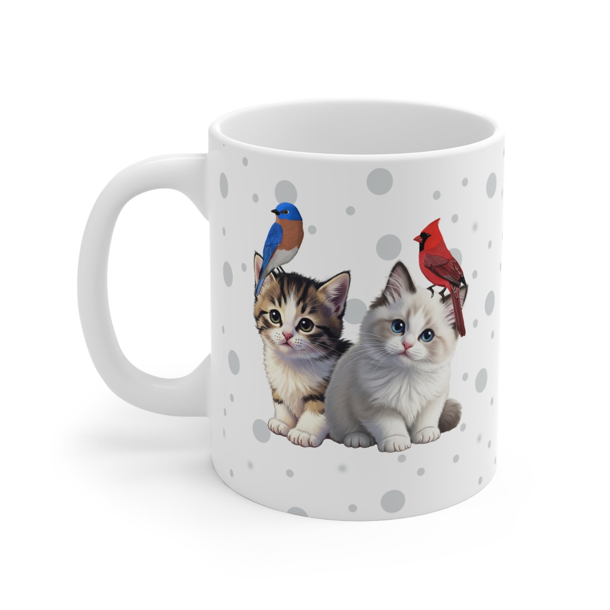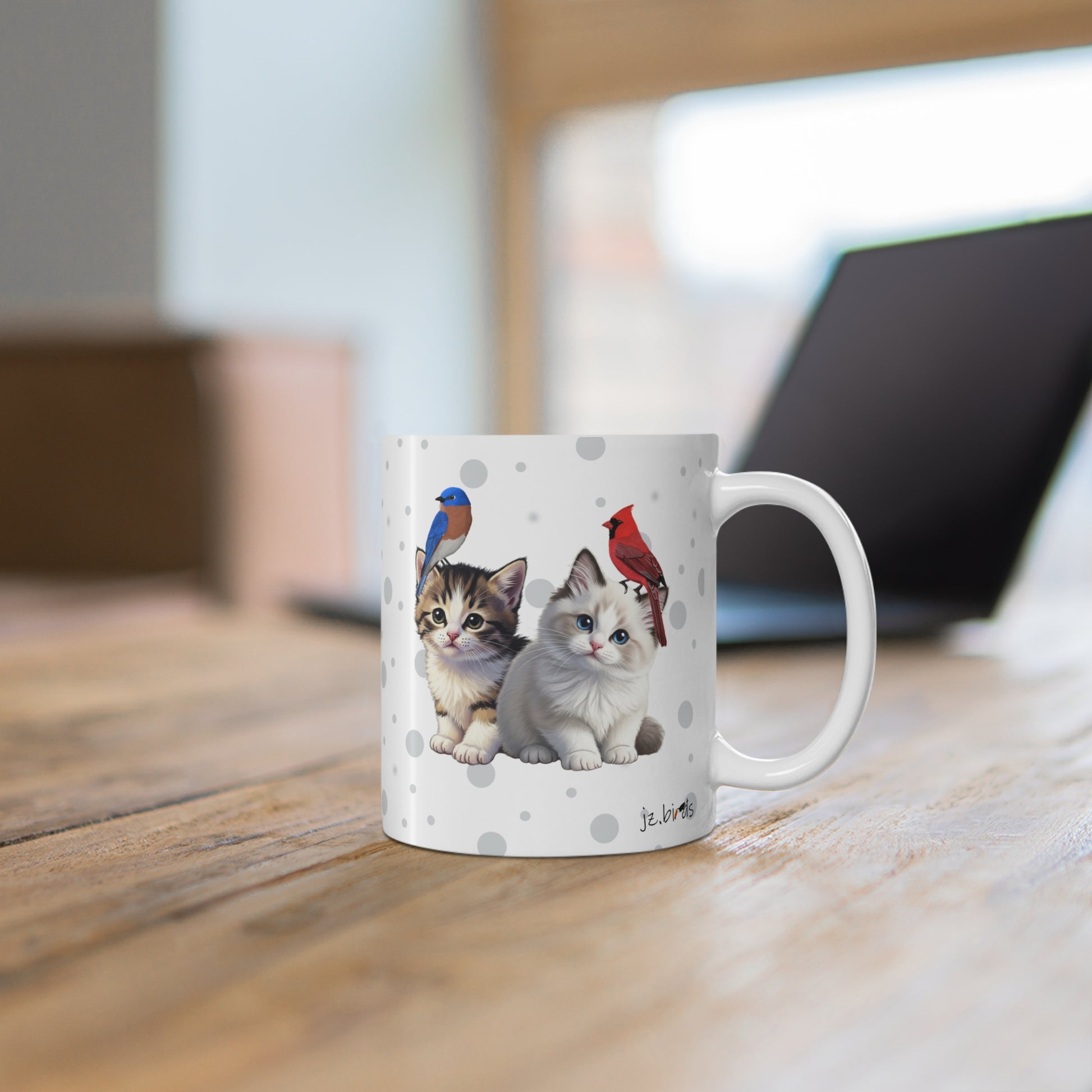 Kitten with Birds Cat Mug 11oz for Cat Lovers & Bird Watchers