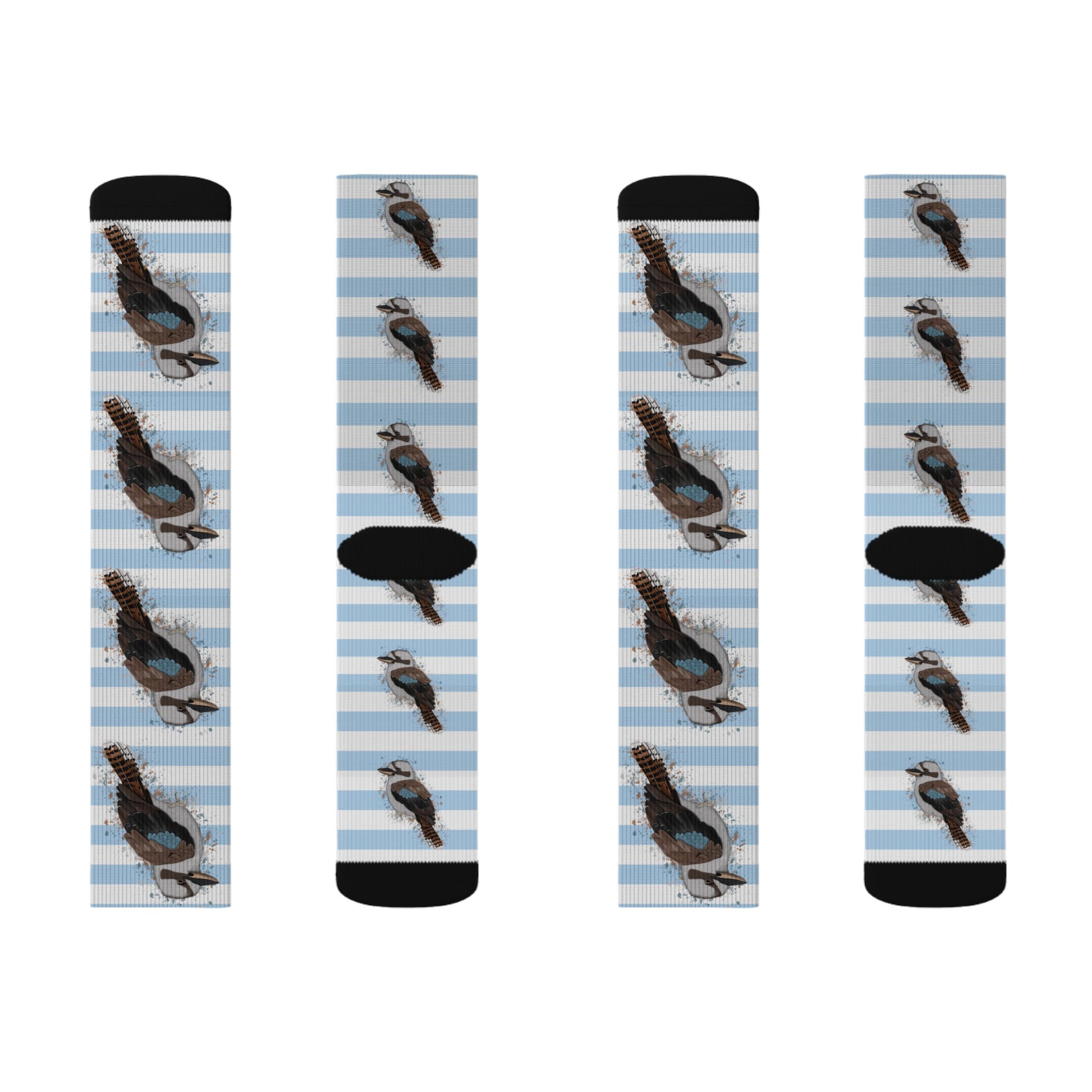 Looking for socks that are both stylish and comfortable? Look no further than our Kookaburra Sublimation Socks! These socks feature a beautifully detailed Kookaburra bird design, perfect for any nature lover. With their soft and durable fabric, your feet will feel as good as they look. Add a touch of nature to your wardrobe with these socks!