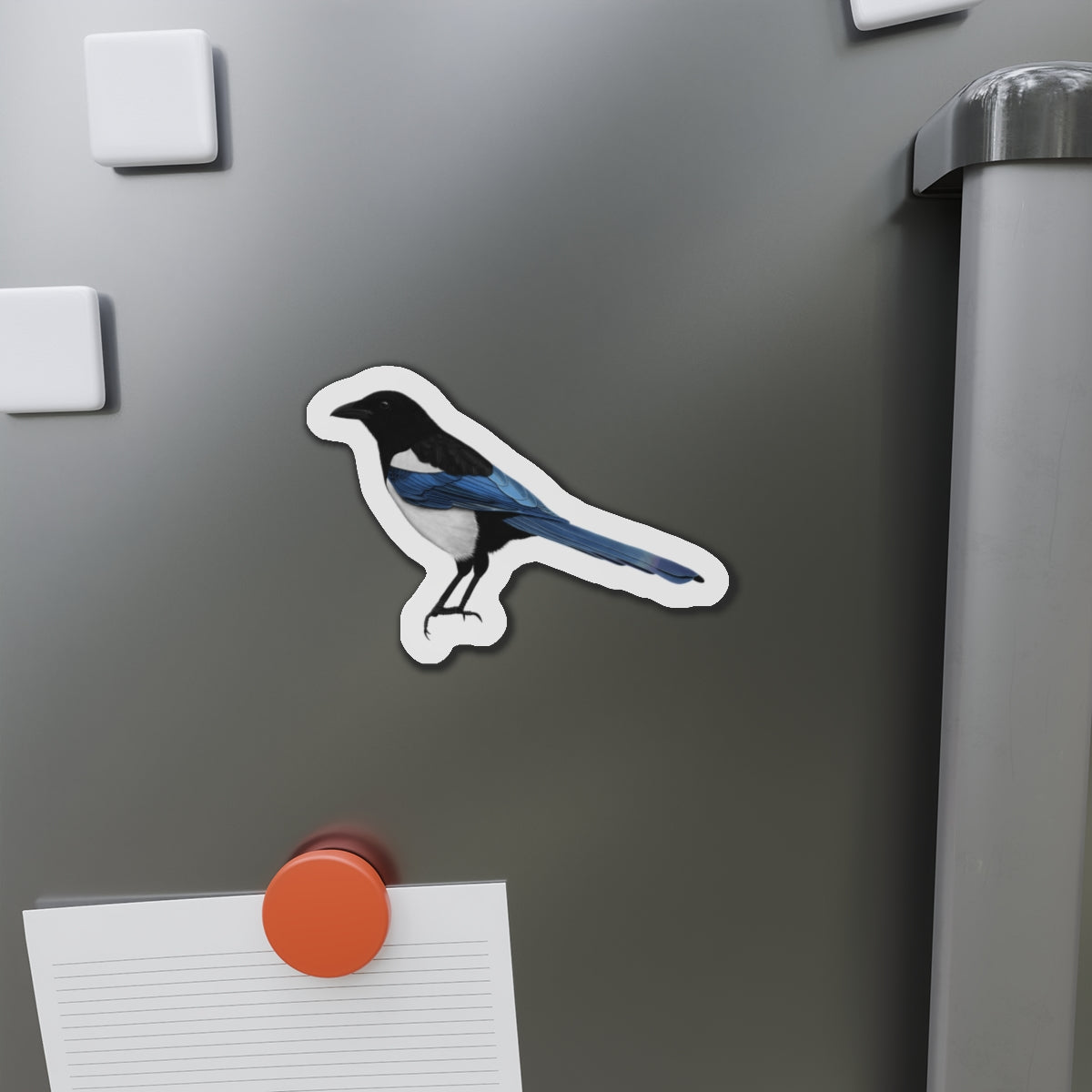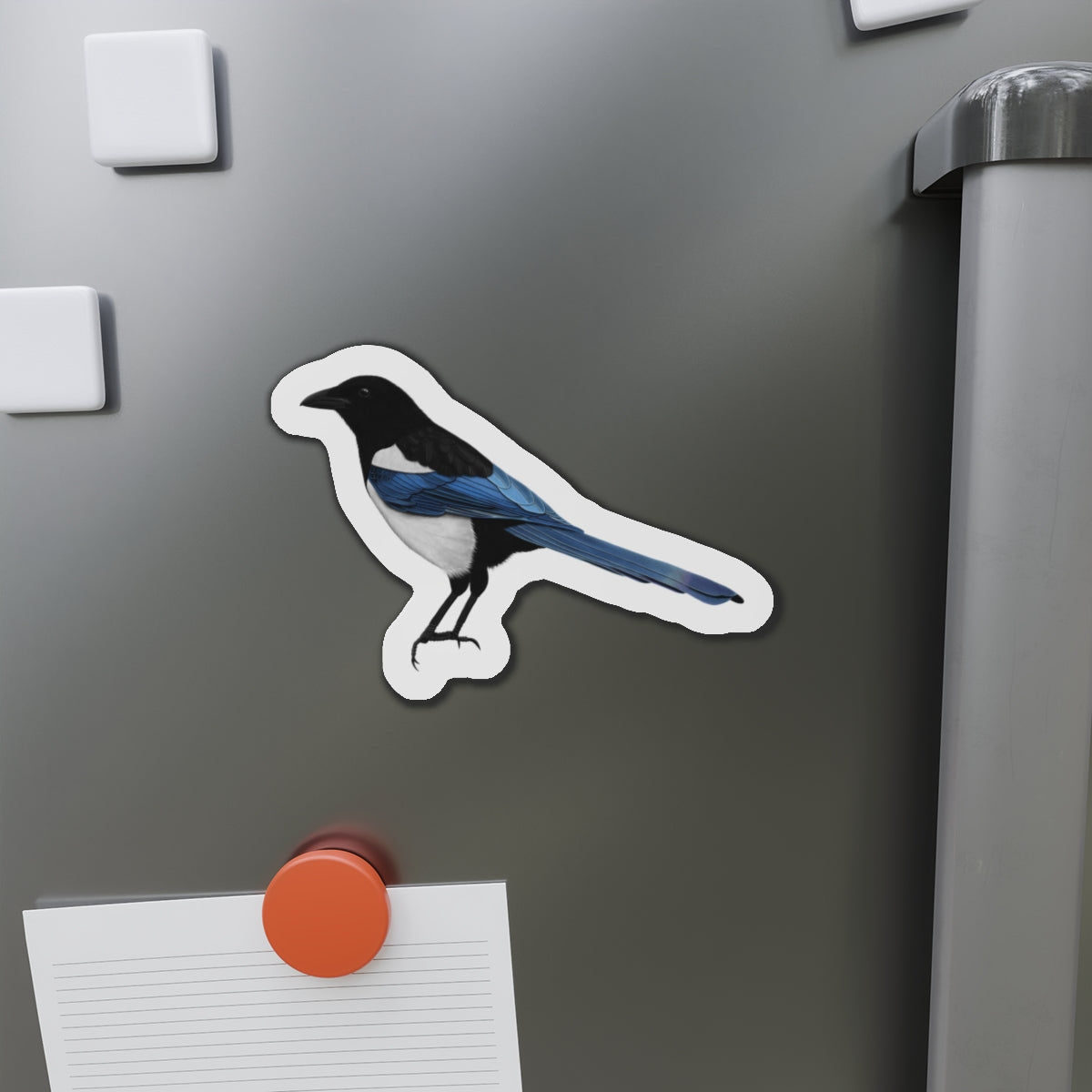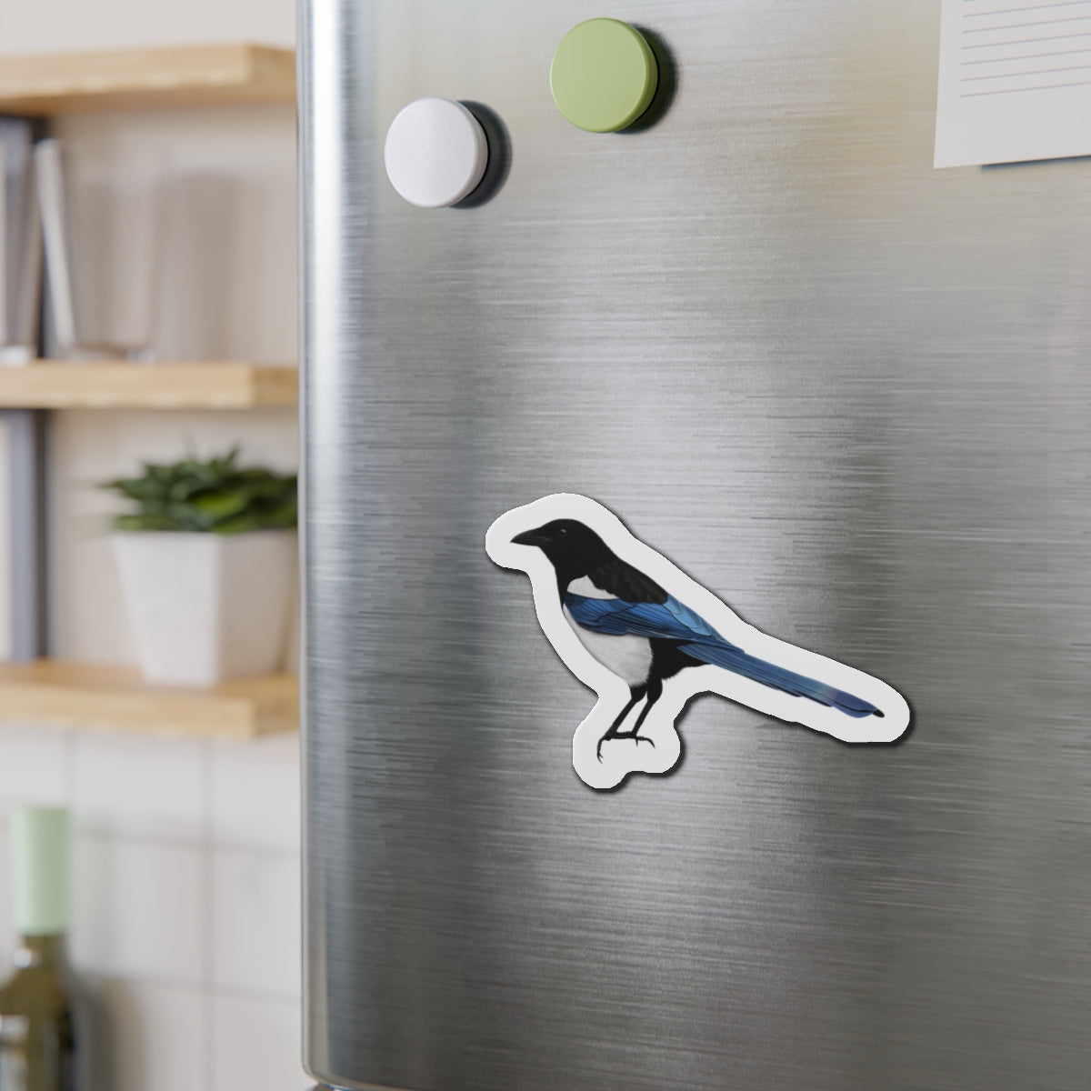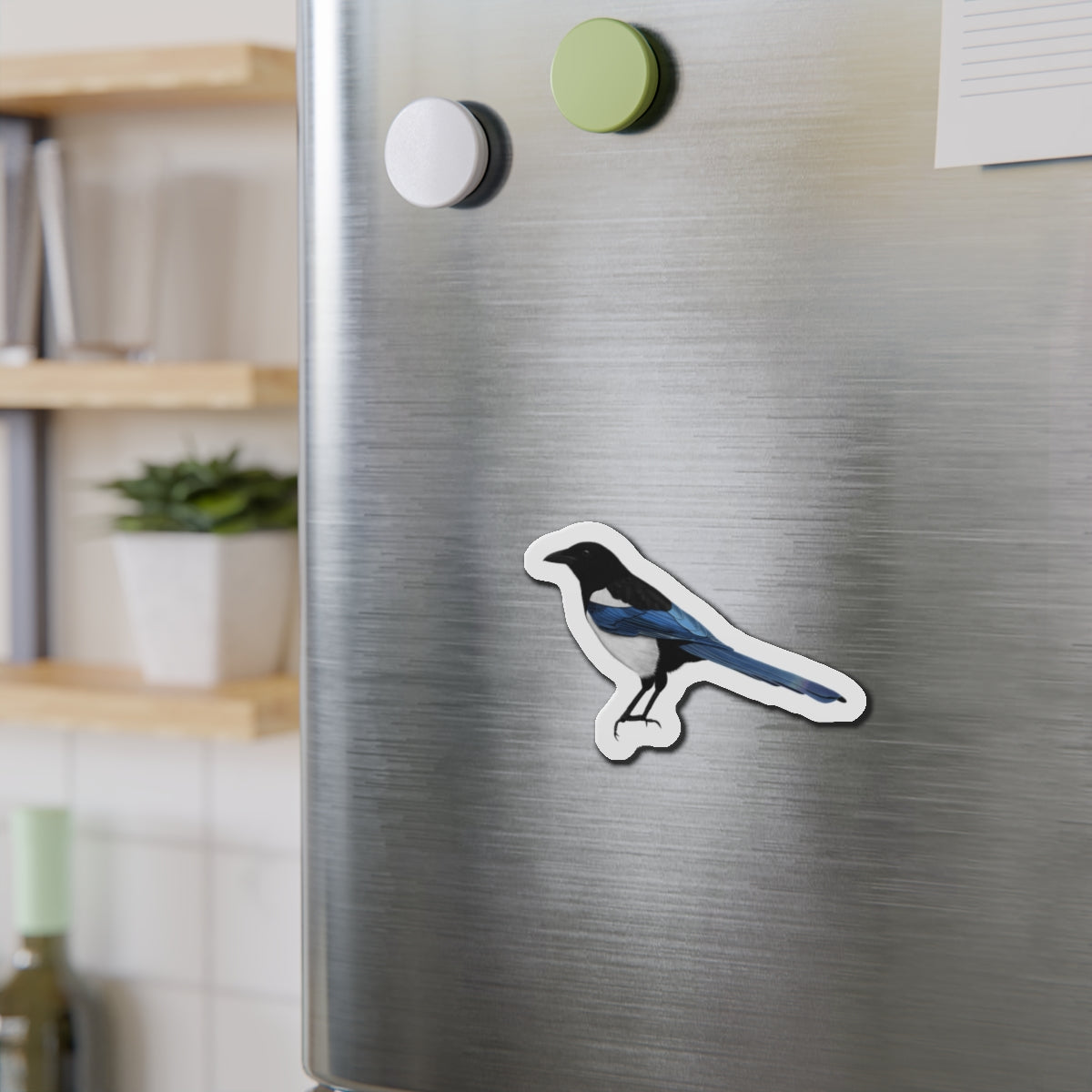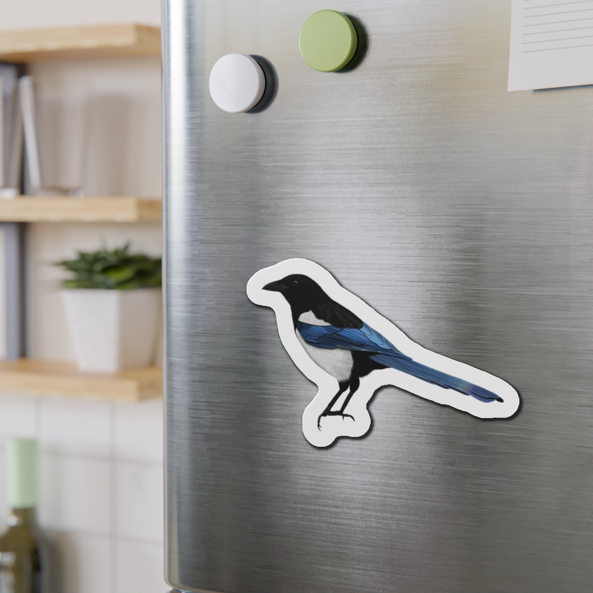 This magnet features a beautiful Magpie bird illustration. It serves as both a useful tool and a lovely decoration for any home or office space. Made with high-quality materials, it is sure to add a touch of elegance to any setting.