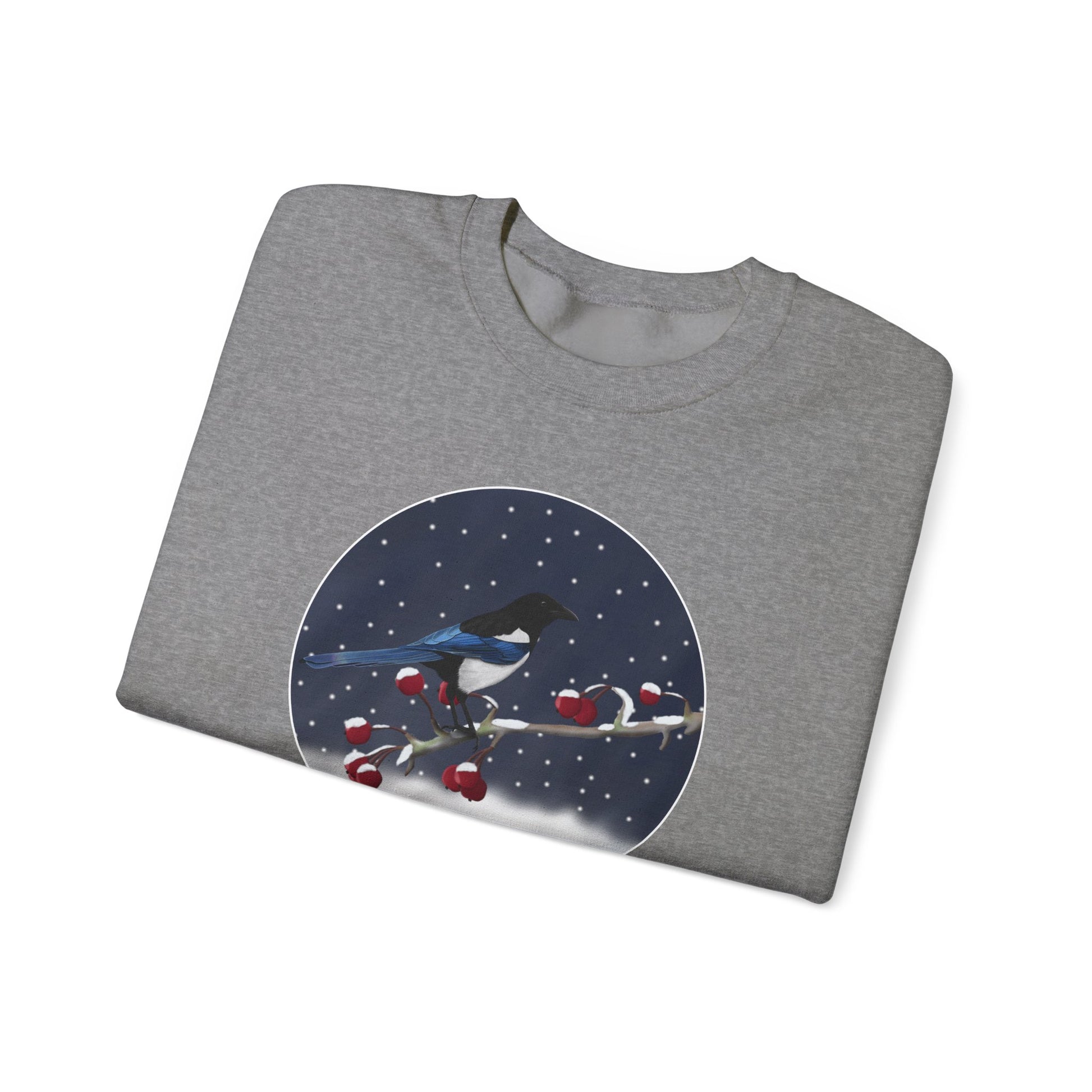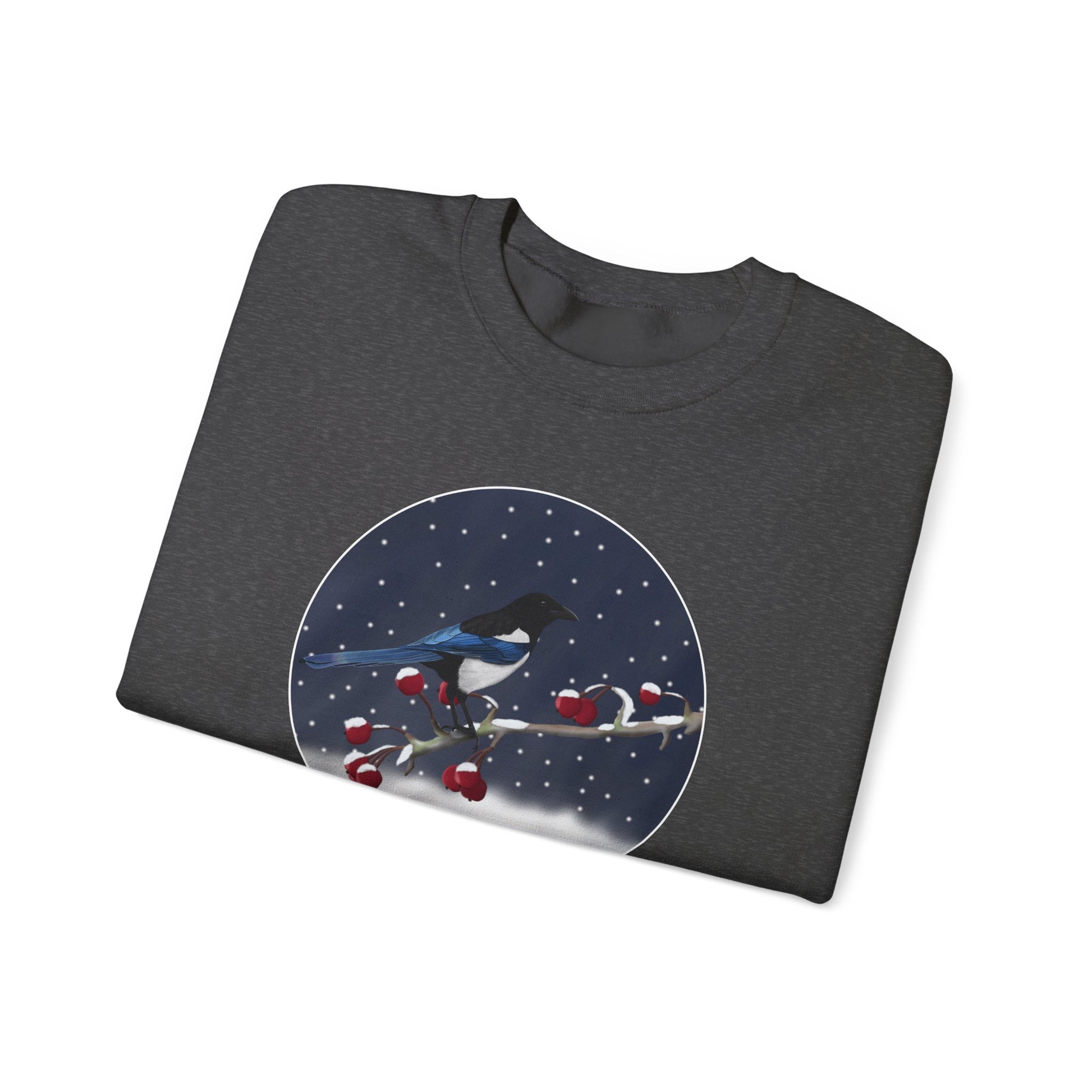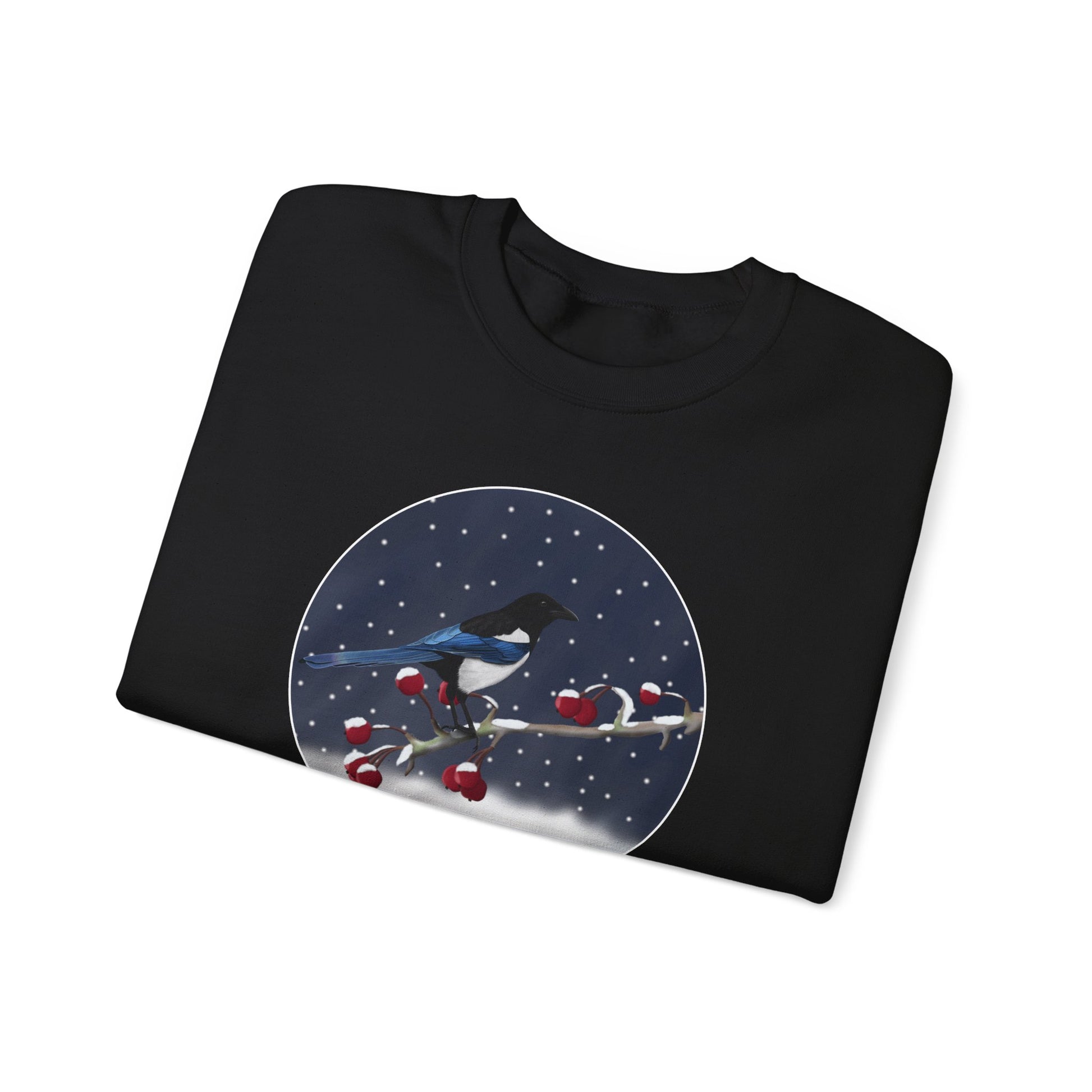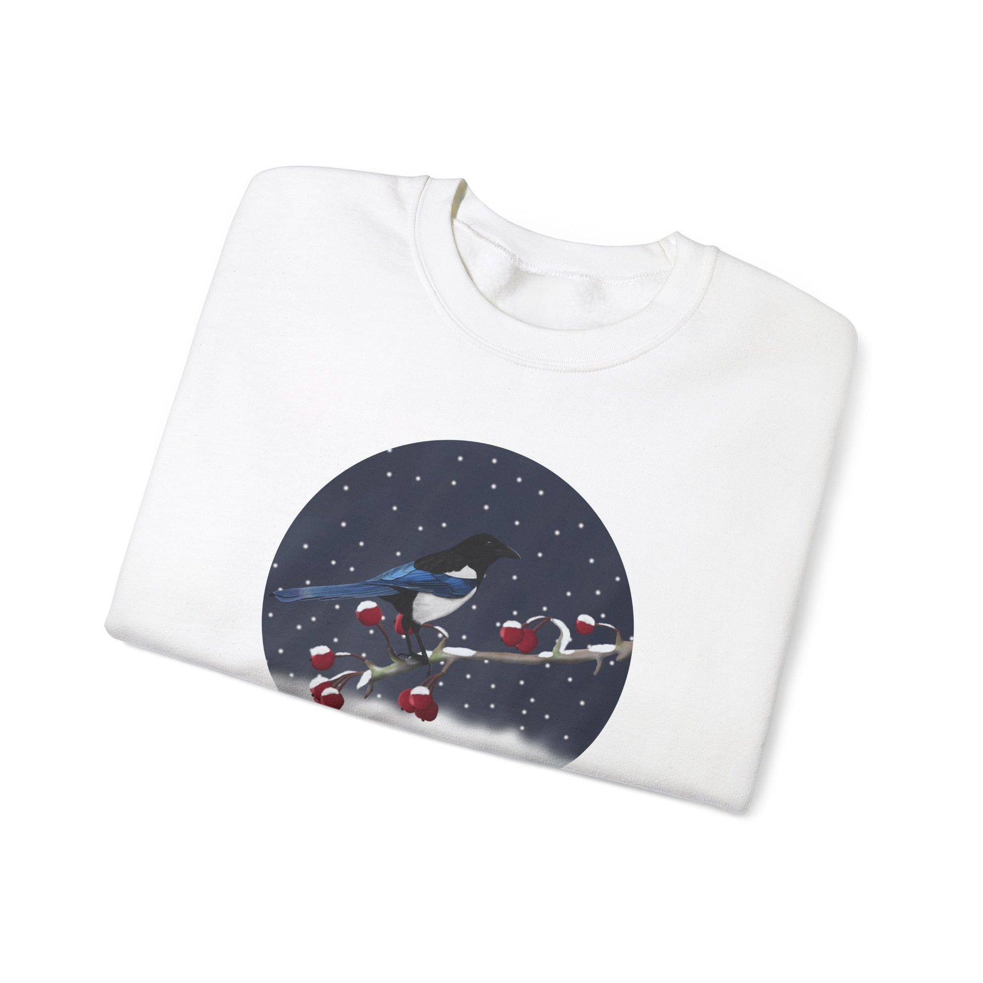 Magpie on a Winter Branch Christmas Bird Sweatshirt