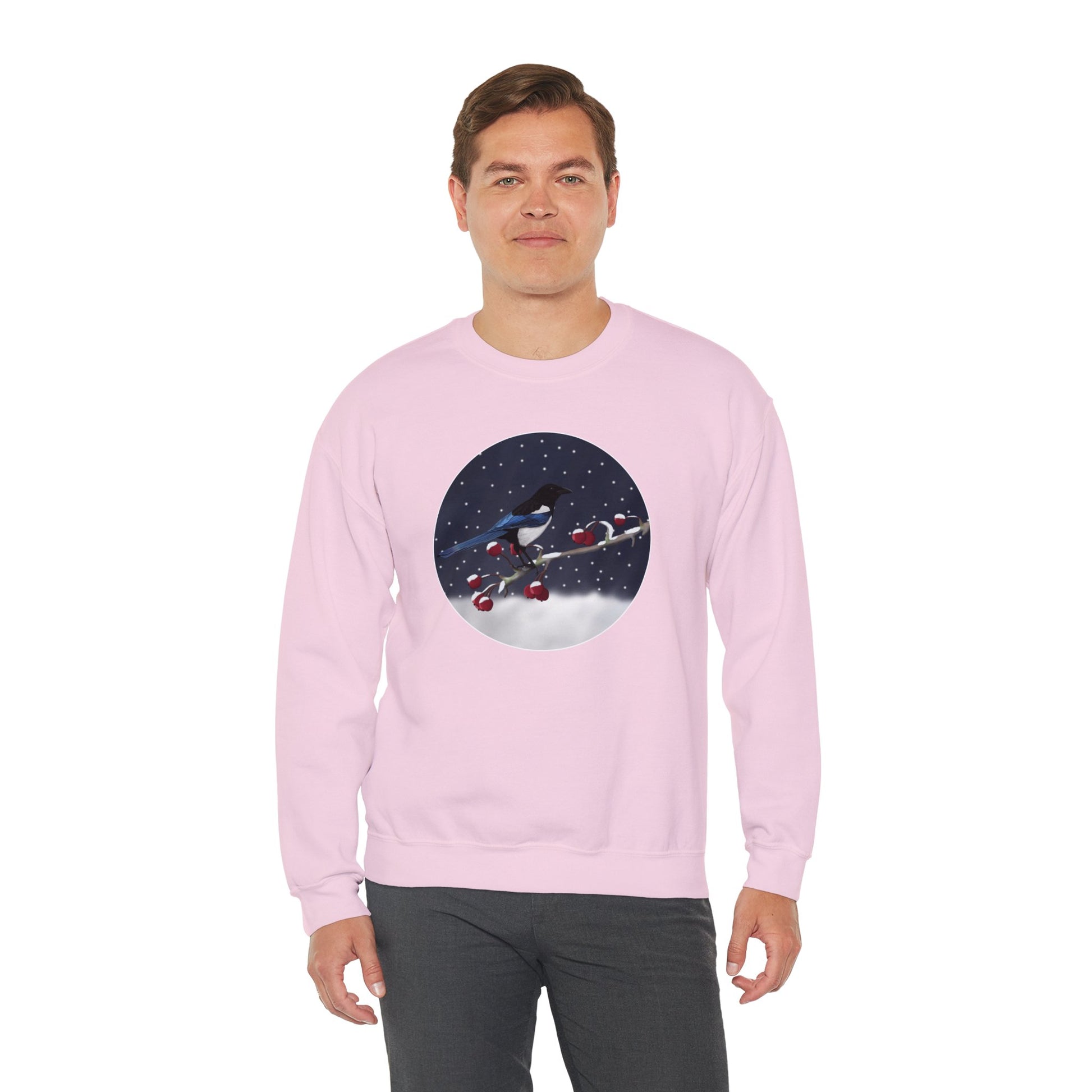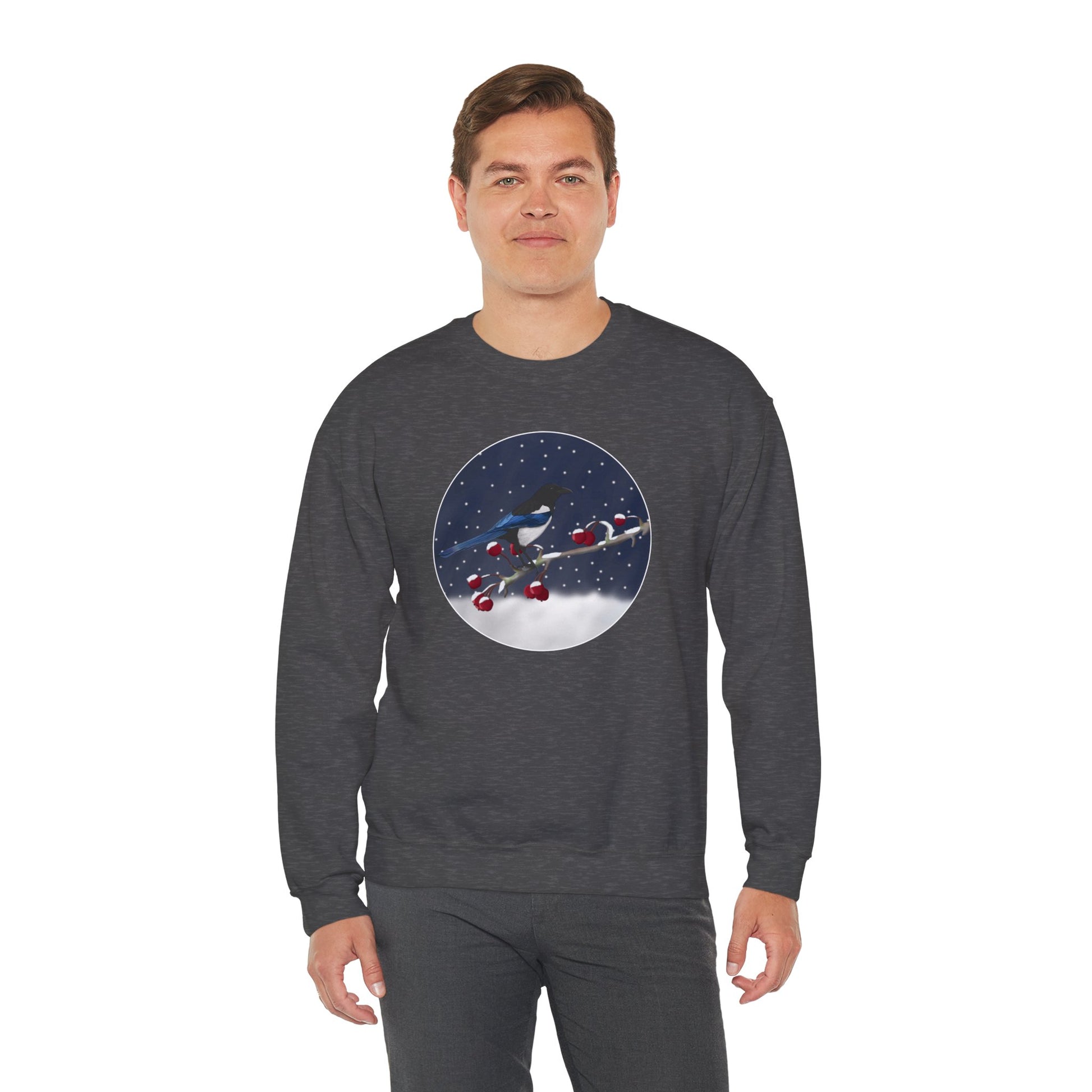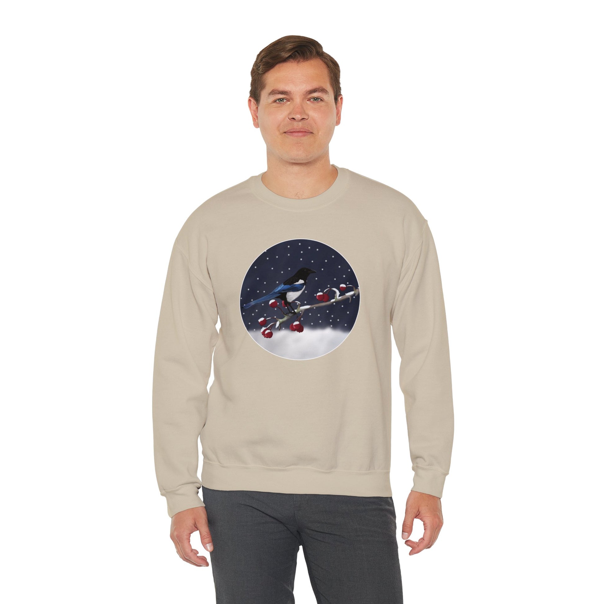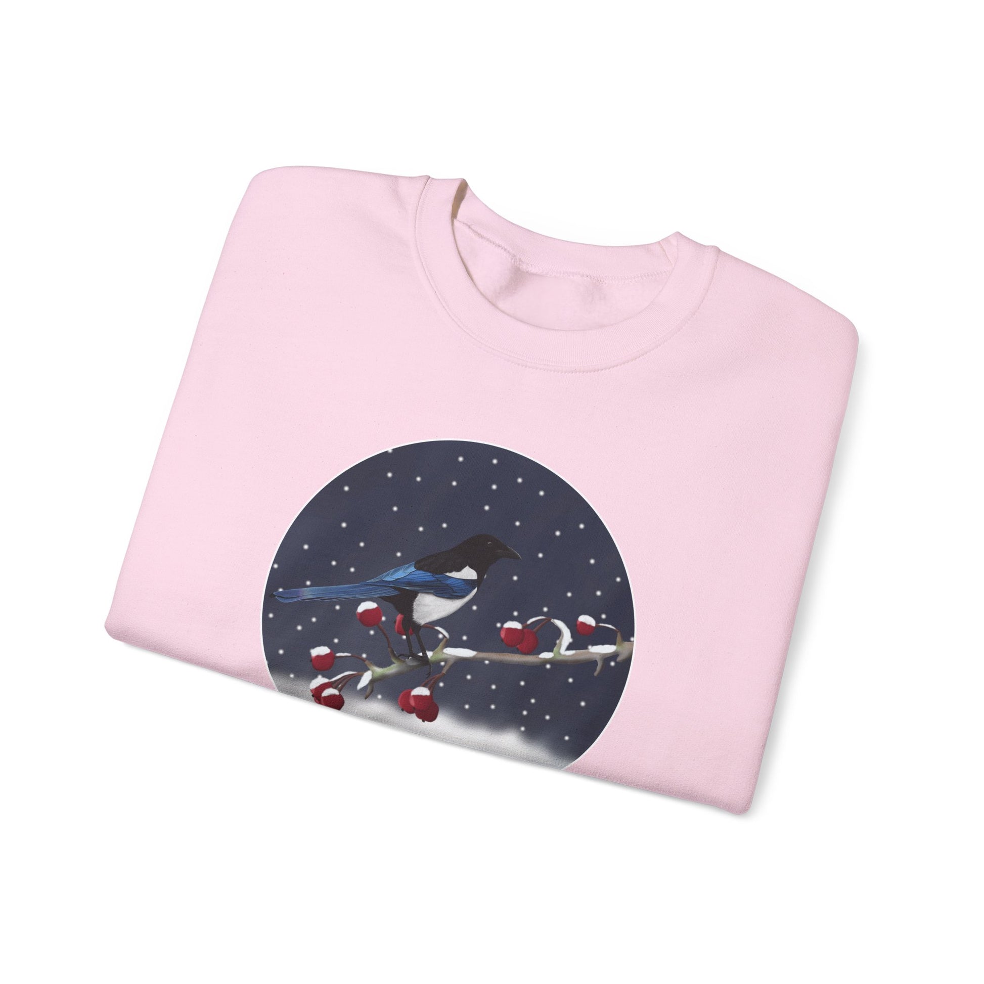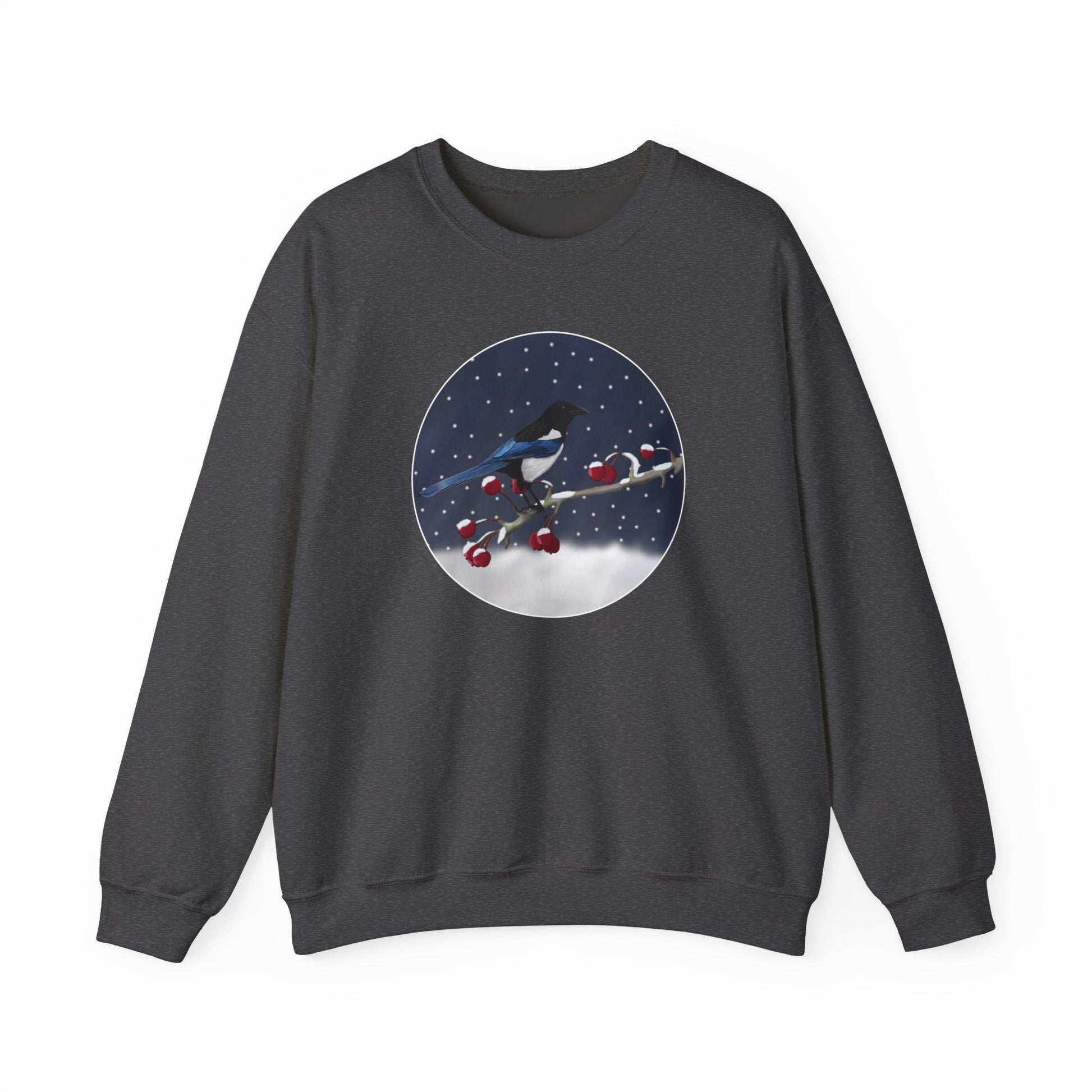Magpie on a Winter Branch Christmas Bird Sweatshirt