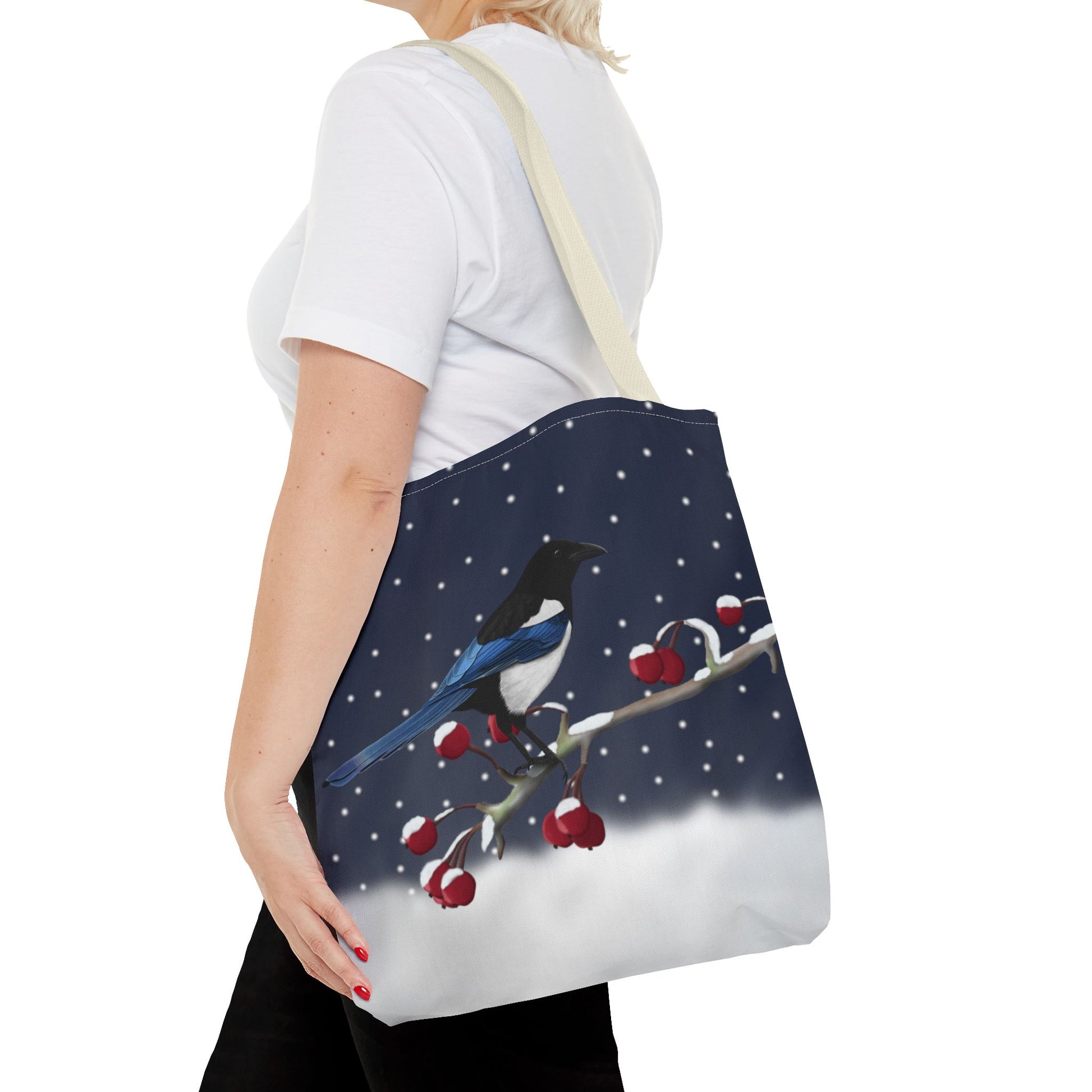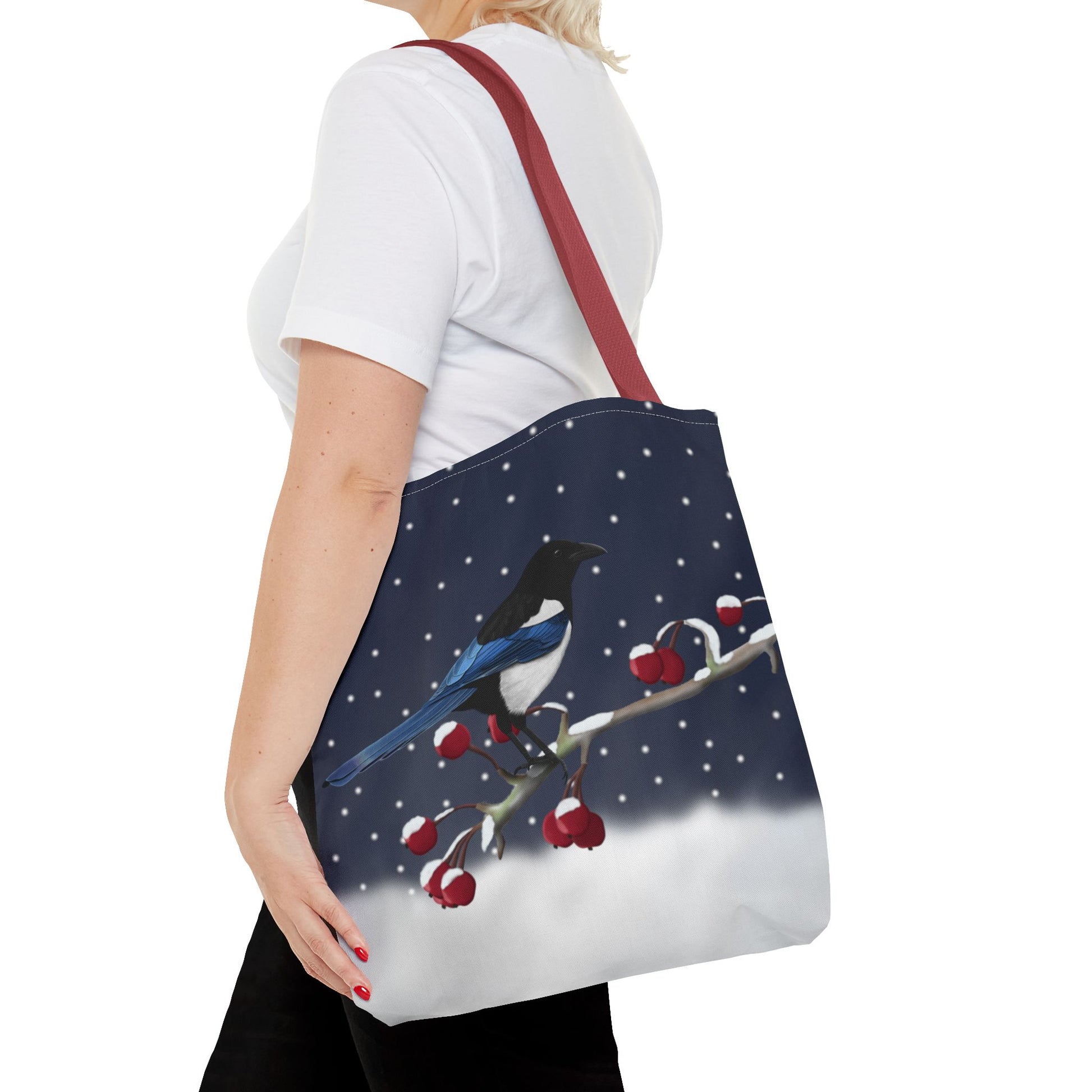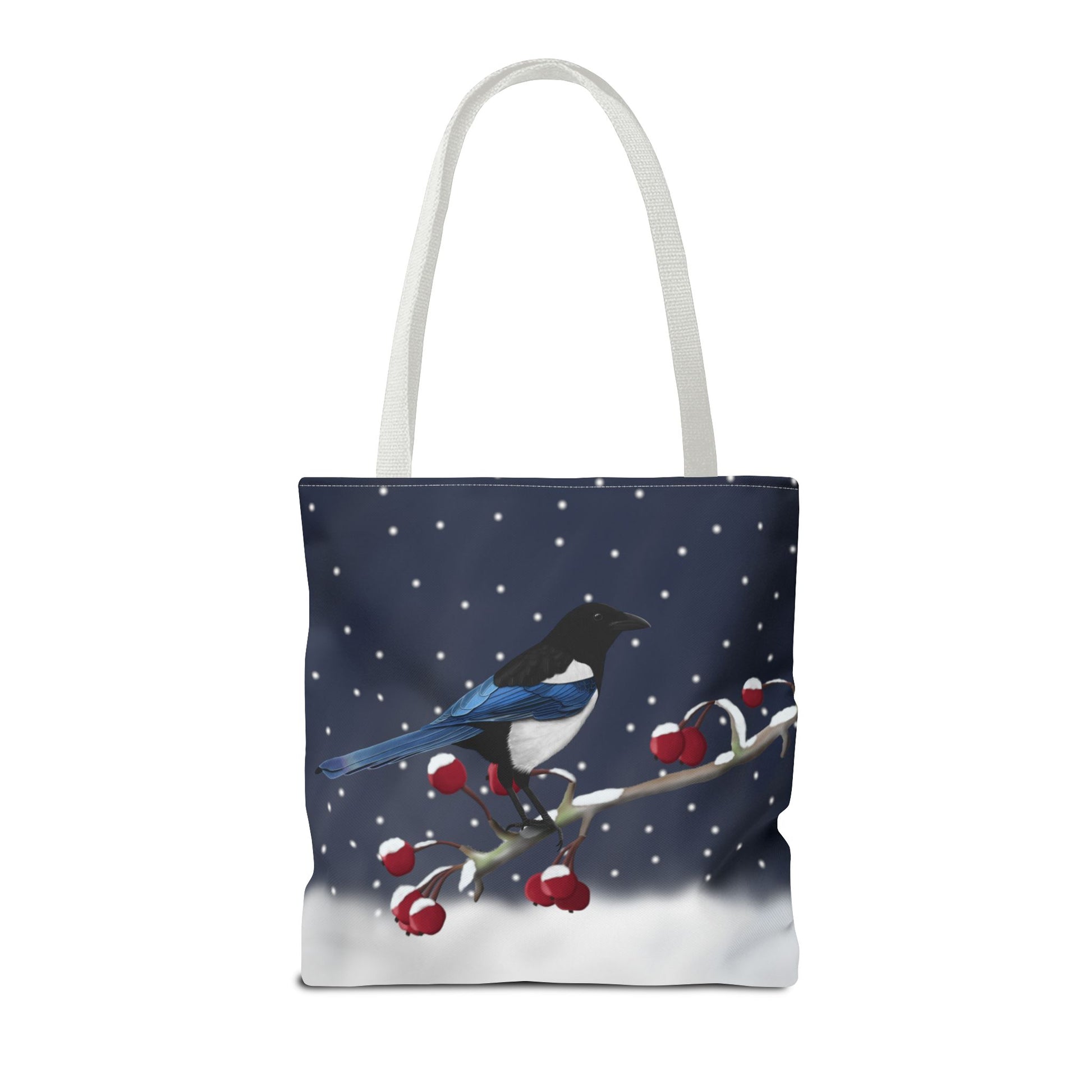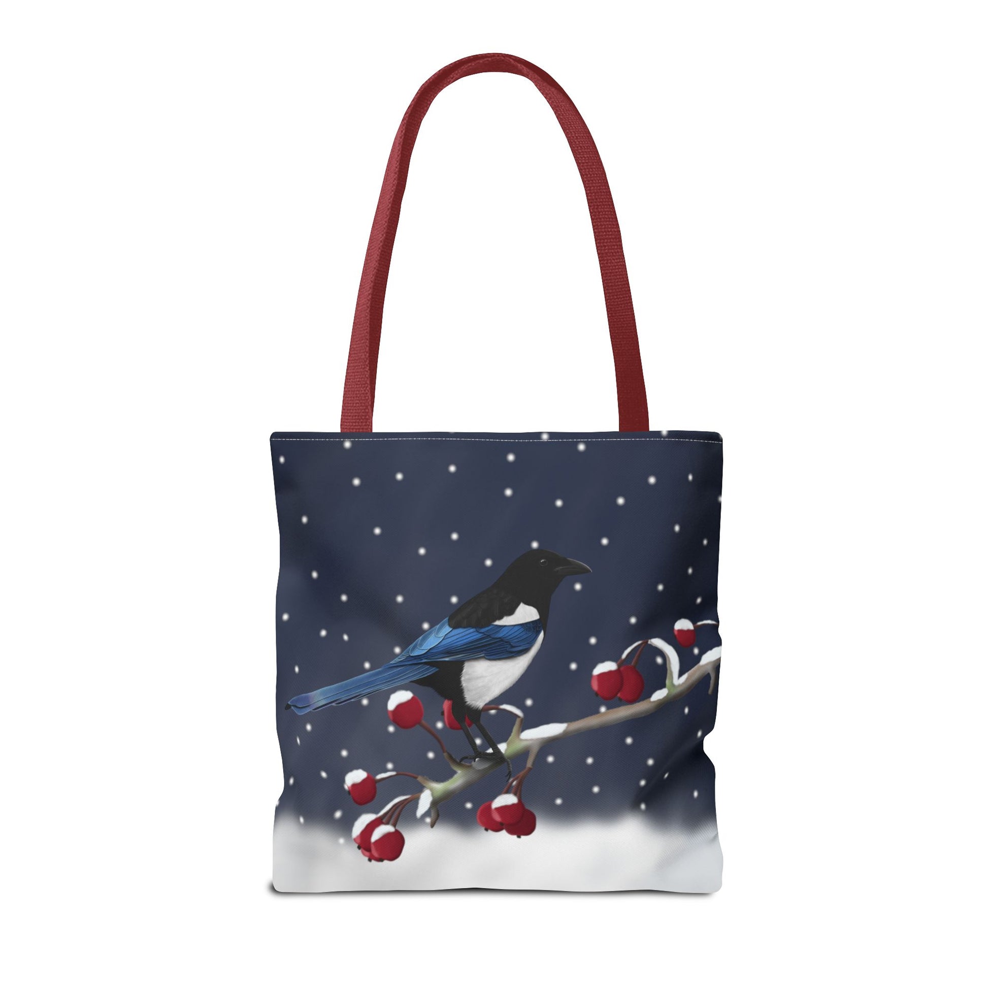 Experience the joy of birdwatching with our Magpie on a Winter Branch Christmas Bird Tote Bag! Measuring 16"x16", this stylish bag features a vibrant Christmas design and is perfect for carrying all your birdwatching essentials. Whether you're a seasoned birder or just starting out, this bag is a must-have for all bird enthusiasts.