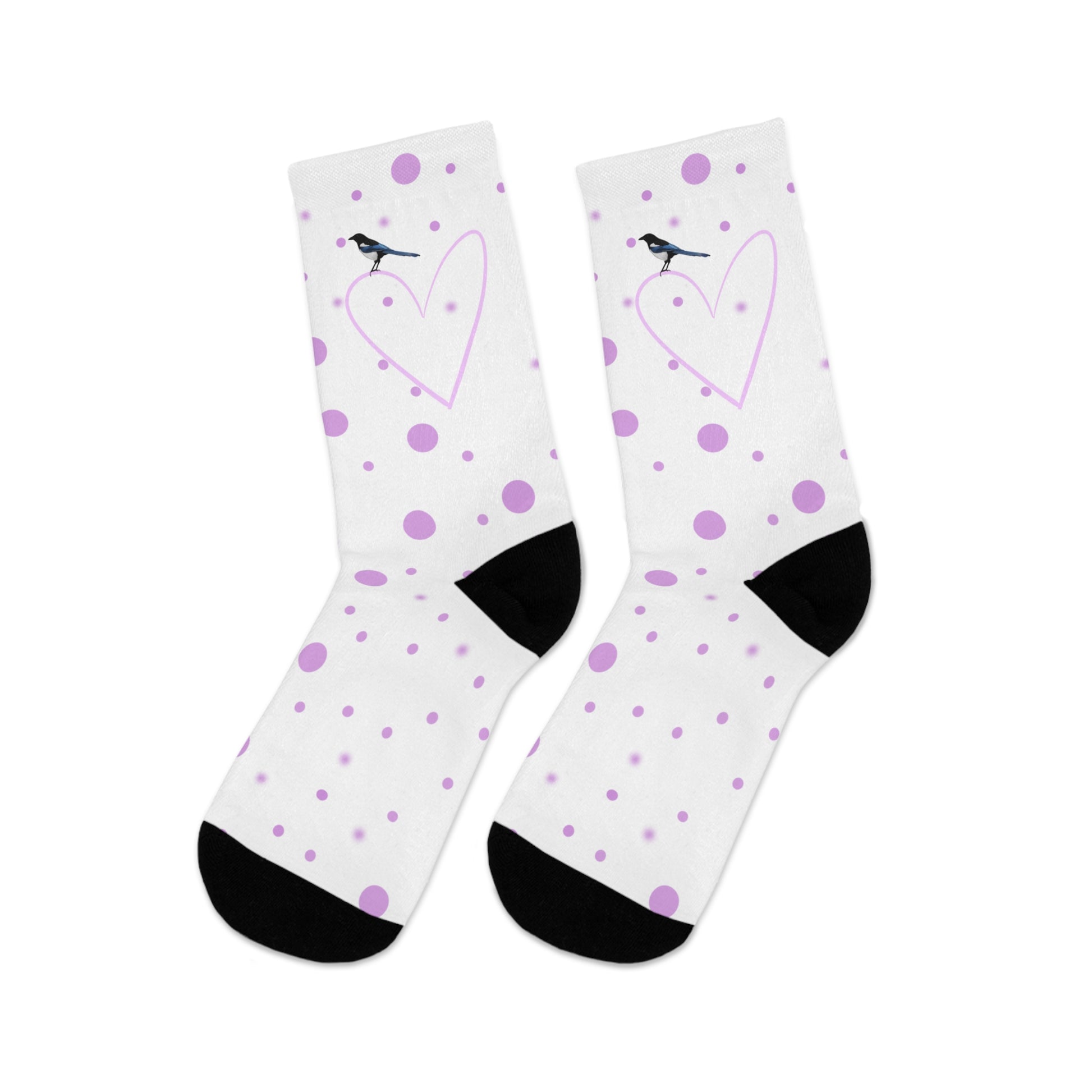 Magpie Valentine's Day Pink Heart and Dots Bird Socks White